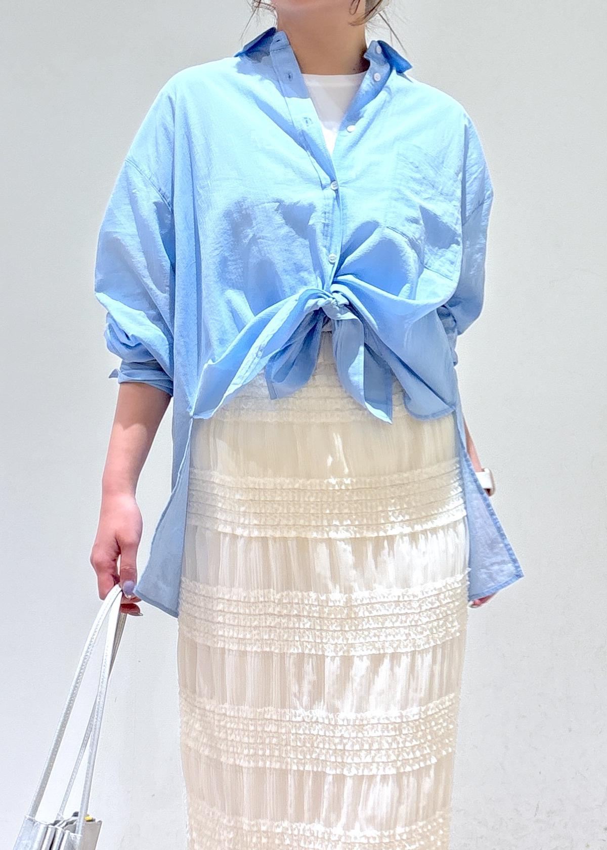 明るめブルーのシャツは爽やかな印象になり、春夏に大活躍間違い無しですね!