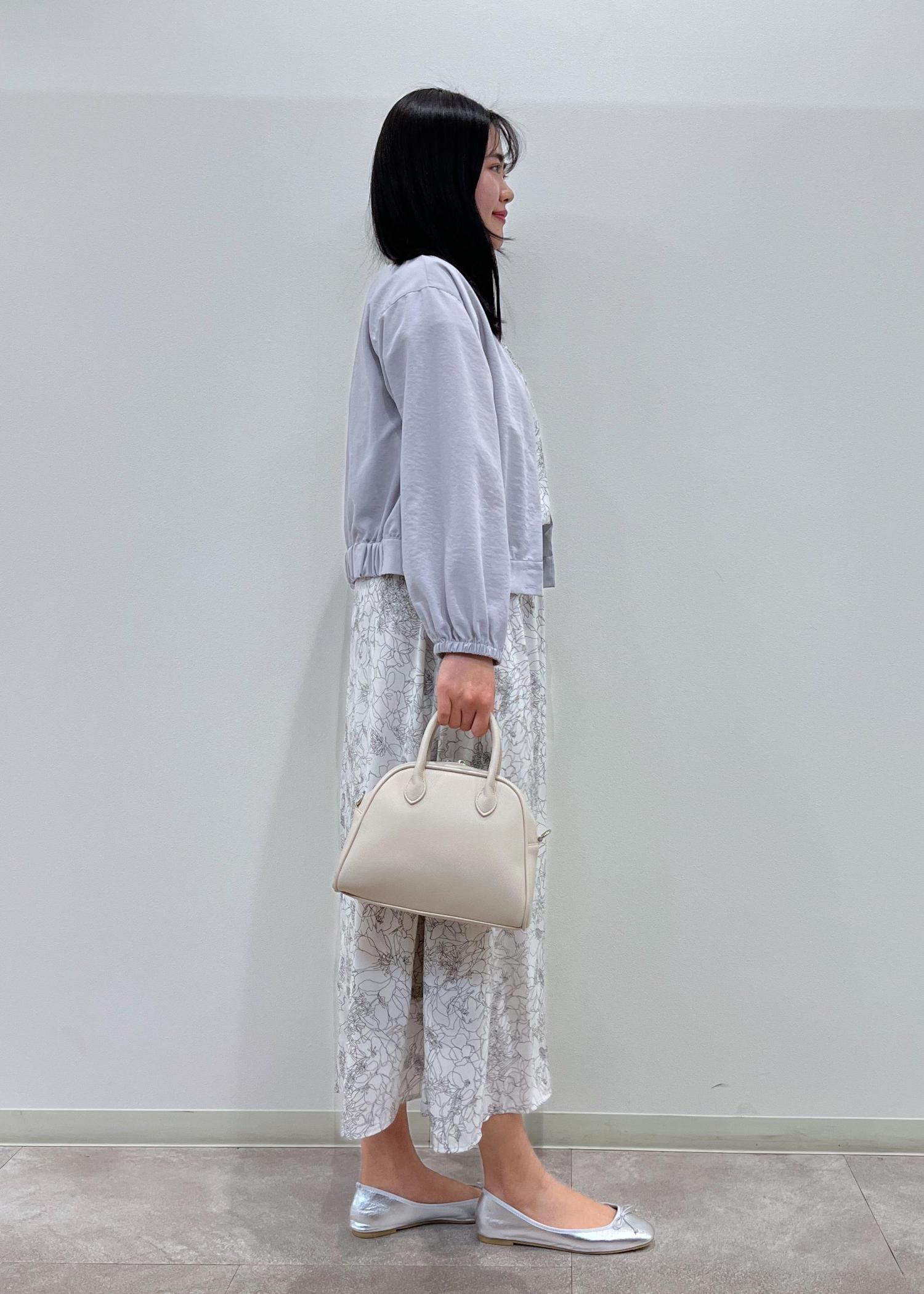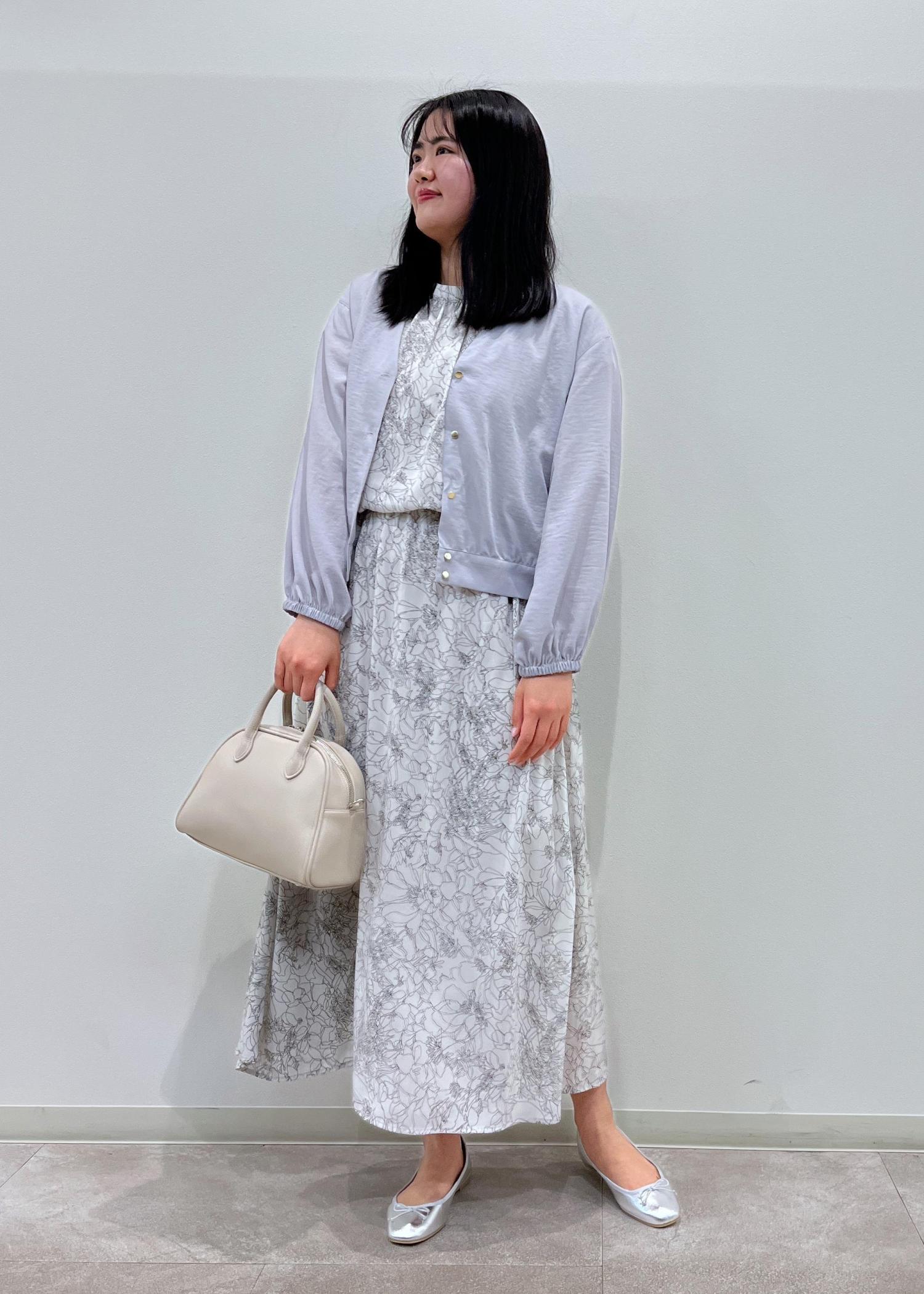 上品な花柄ワンピースにブラウスカーディガンを合わせてきれいめなコーディネートにしました。
