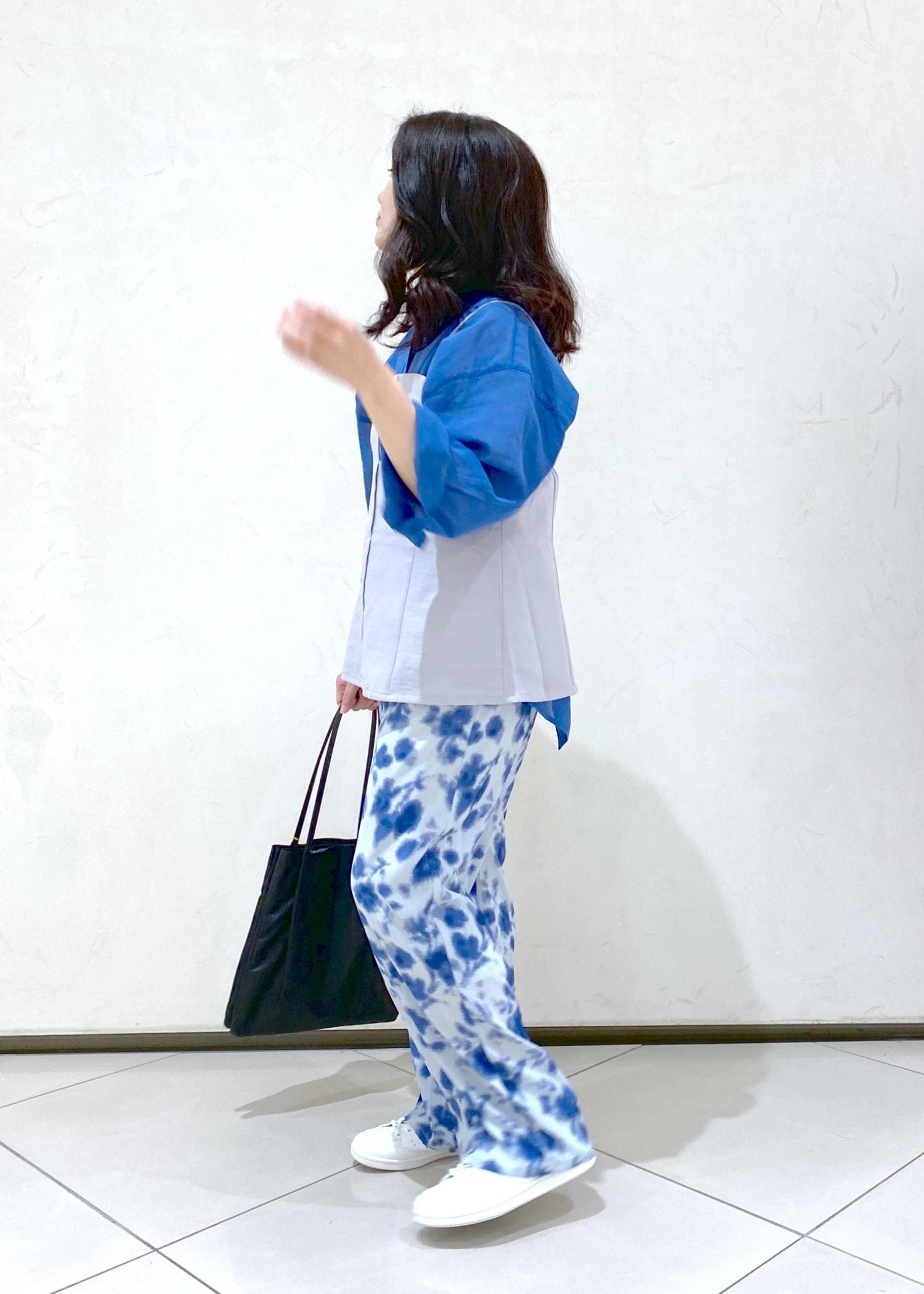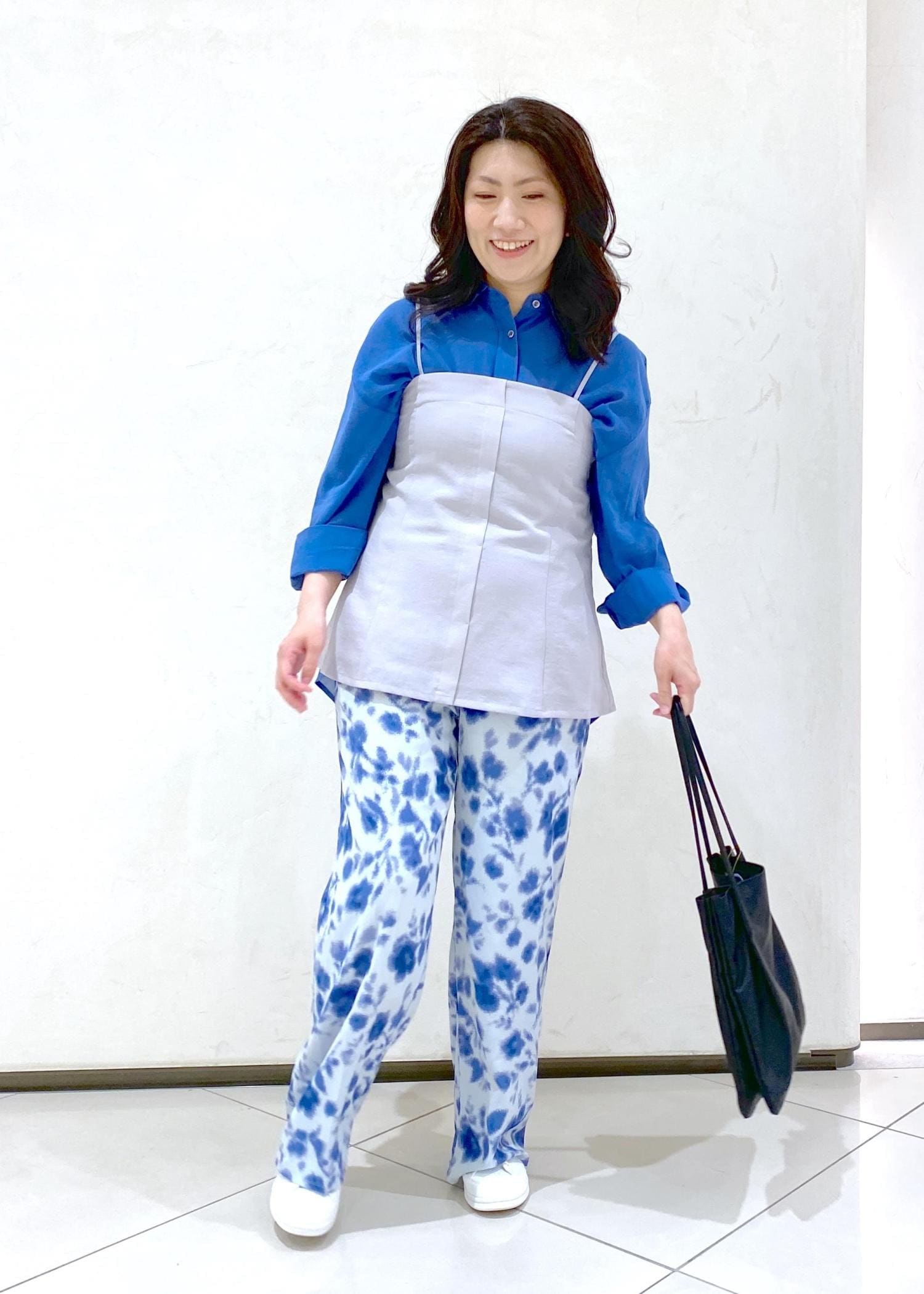 大きめの柄でシンプルなトップスもオシャレにしてくれます。ウエストゴムで足の形も拾いにくいシルエットです -