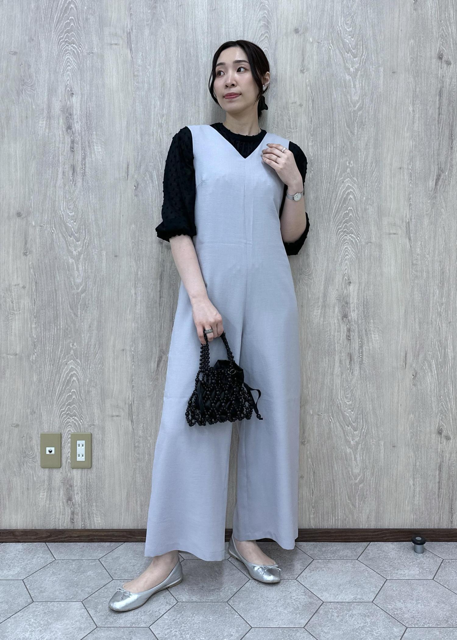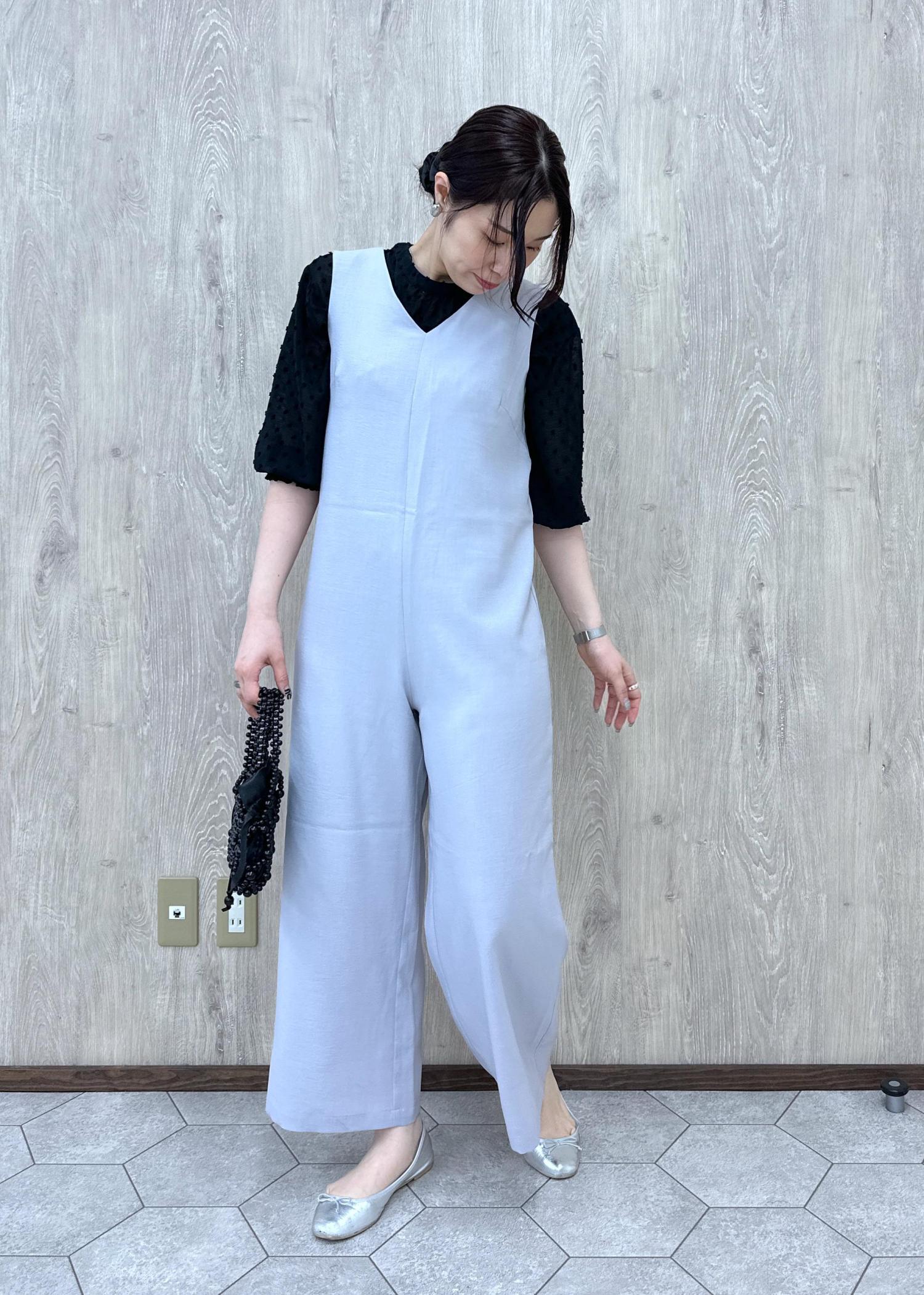 接触冷感・給水速乾・シワになりにくいエフォートレスシリーズのオールインワンを使ったコーデ。