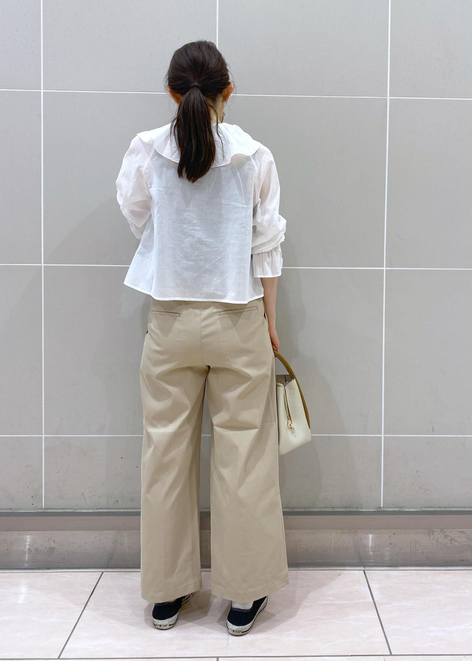 丈がすっきりしているので、パンツにインしなくてもバランスよく着こなせました。 -
