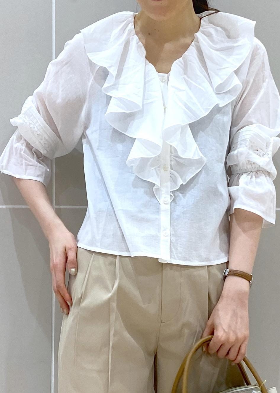 綿ボイルフリルブラウス