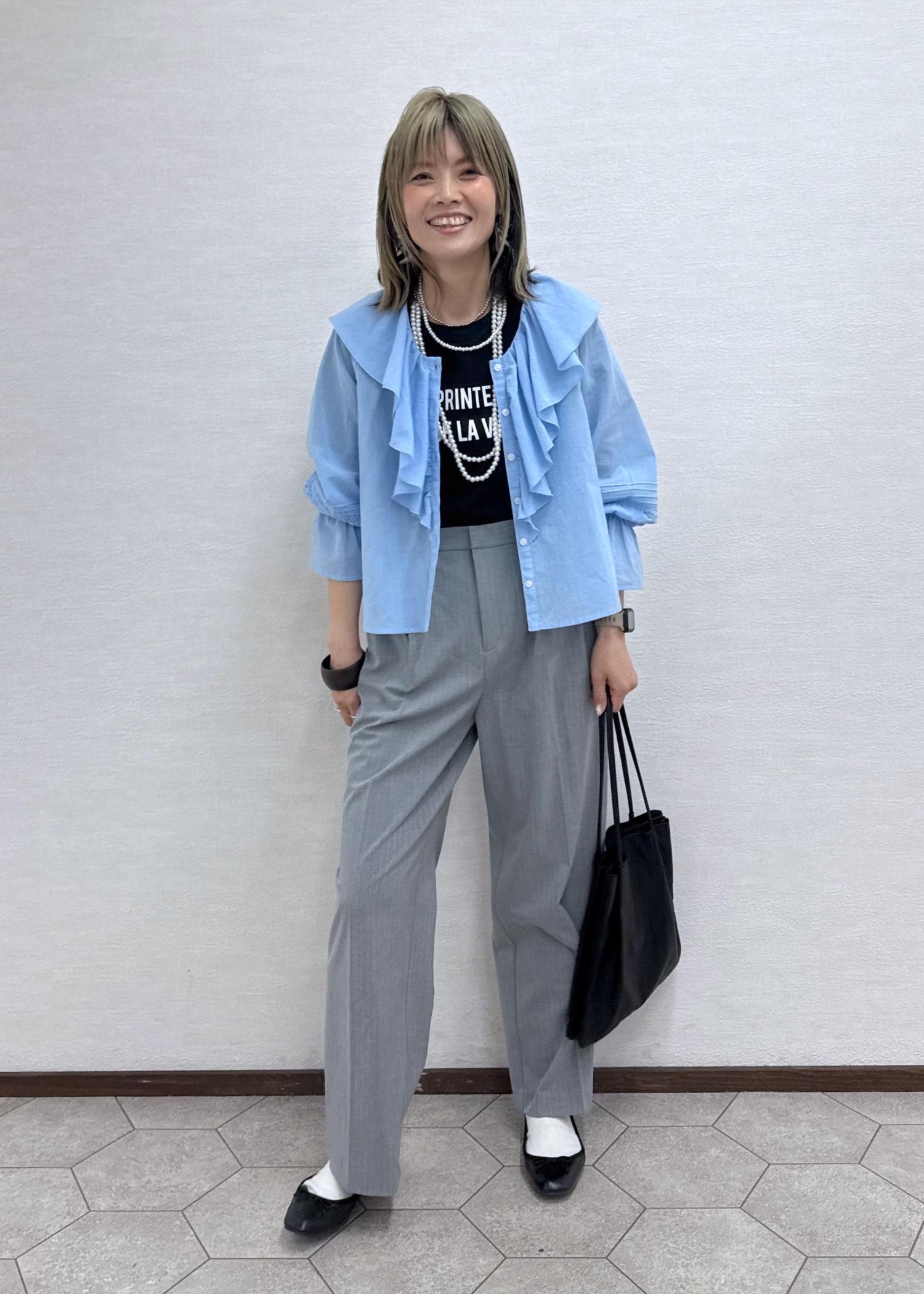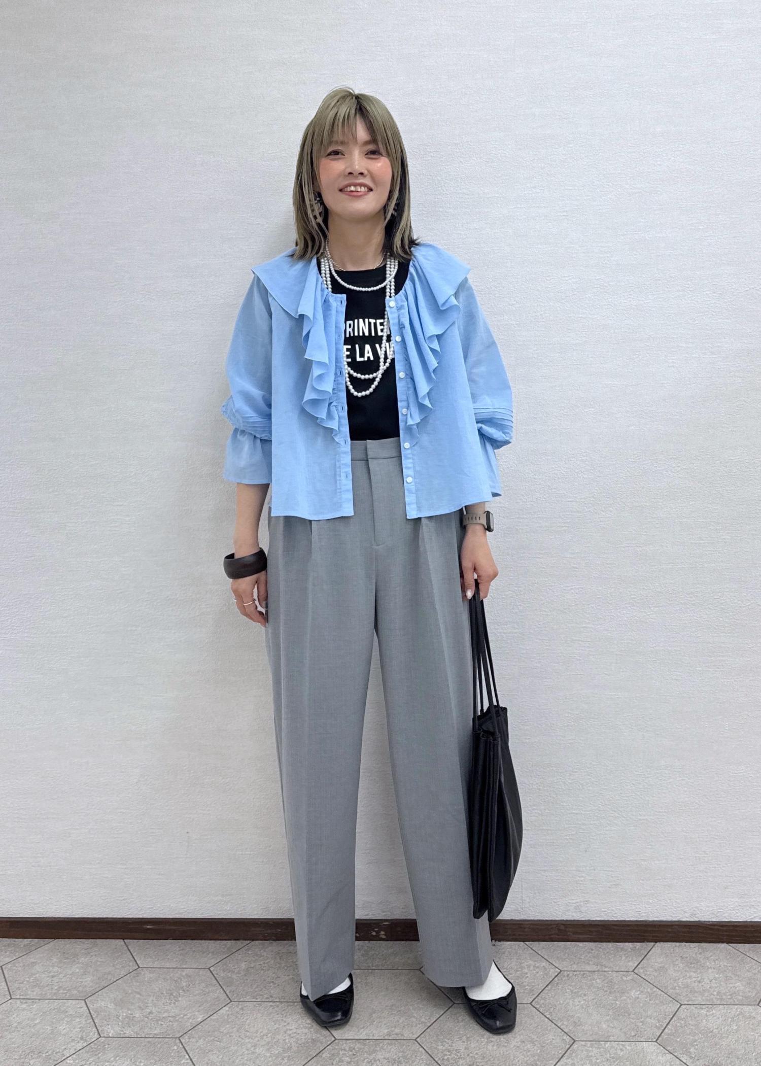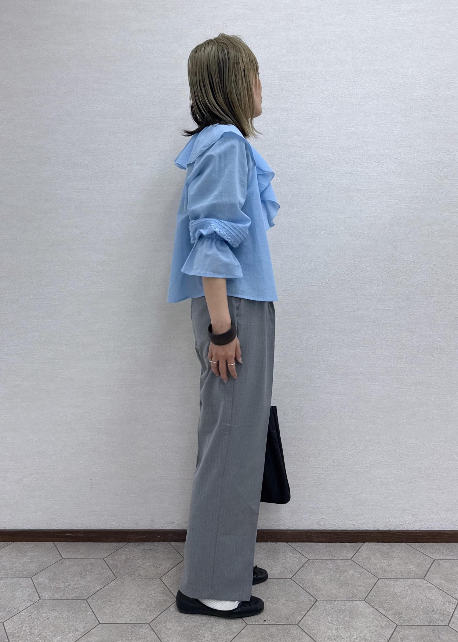 アウトレットROPÉ PICNIC【接触冷感・通気性】お着軽シャツシリーズ/綿ボイルフリルブラウスサックス / 38¥4,391レビューボリュームのあるお袖と胸元のフリルが可愛いブラウス。身幅はゆったりとしていてボタンを開けて羽織りでも◎1枚でコーデが華やかになる決まる1着です。