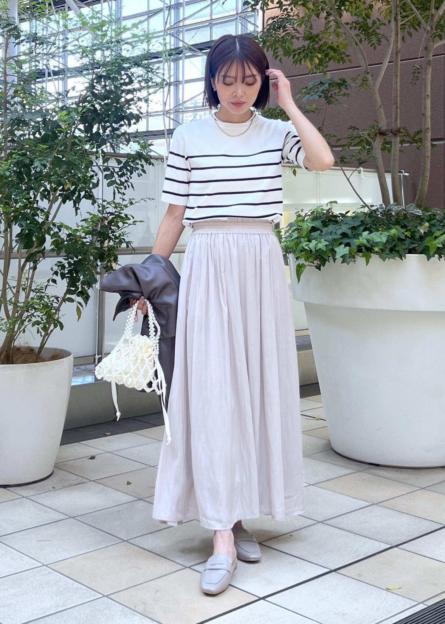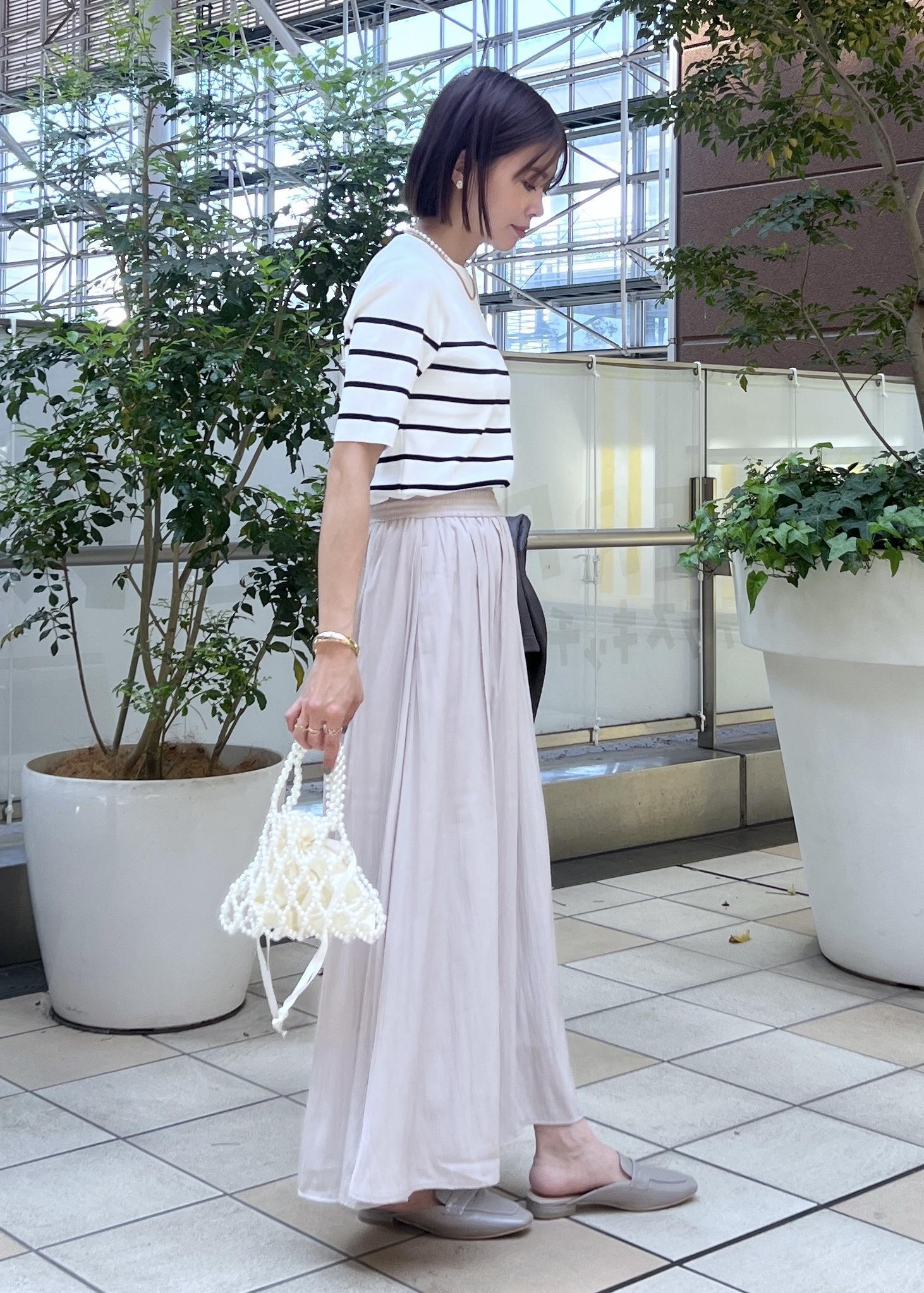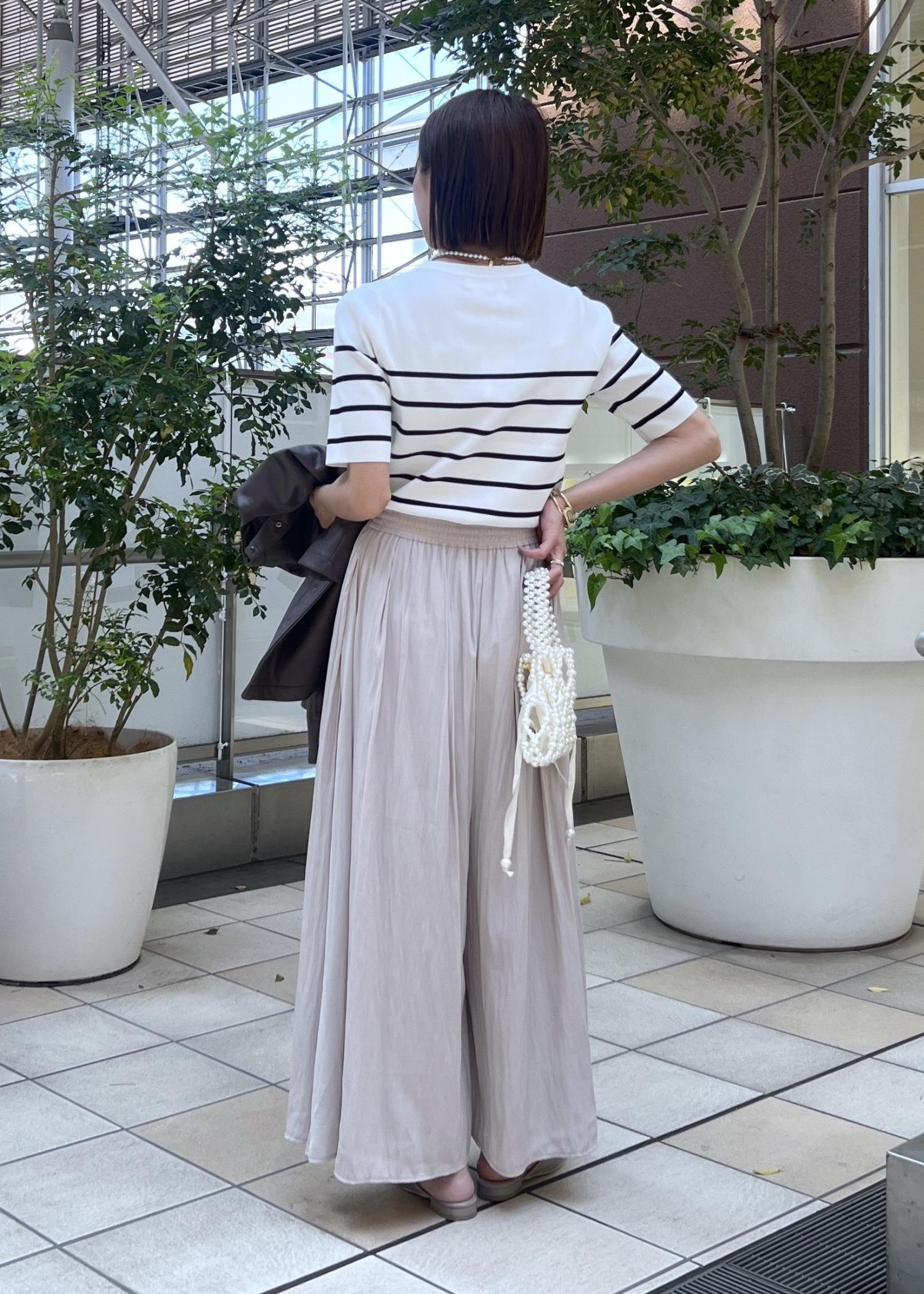 接触冷感のトップスとUVケアのスカーチョで、大人カジュアルなコーデにしました。