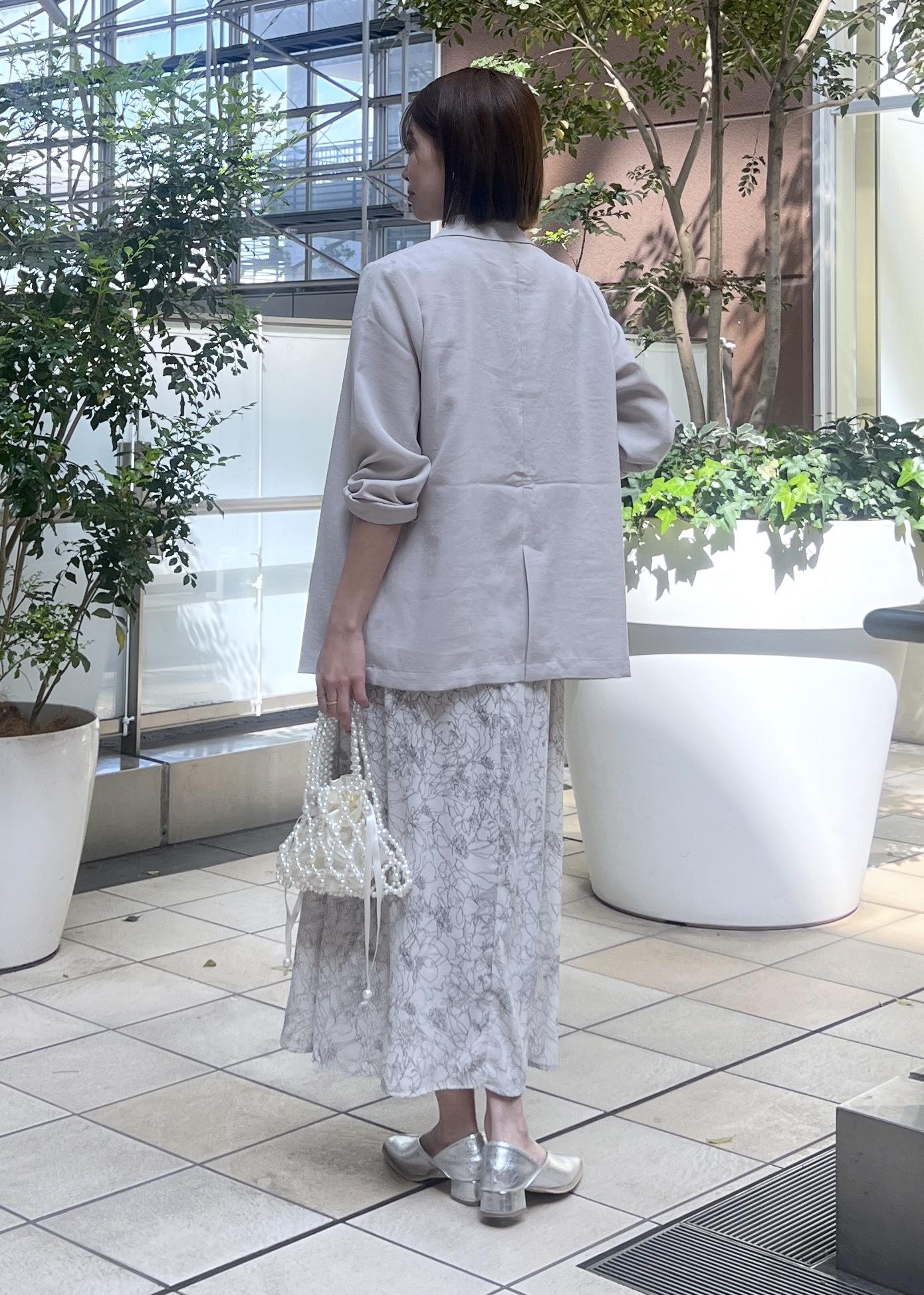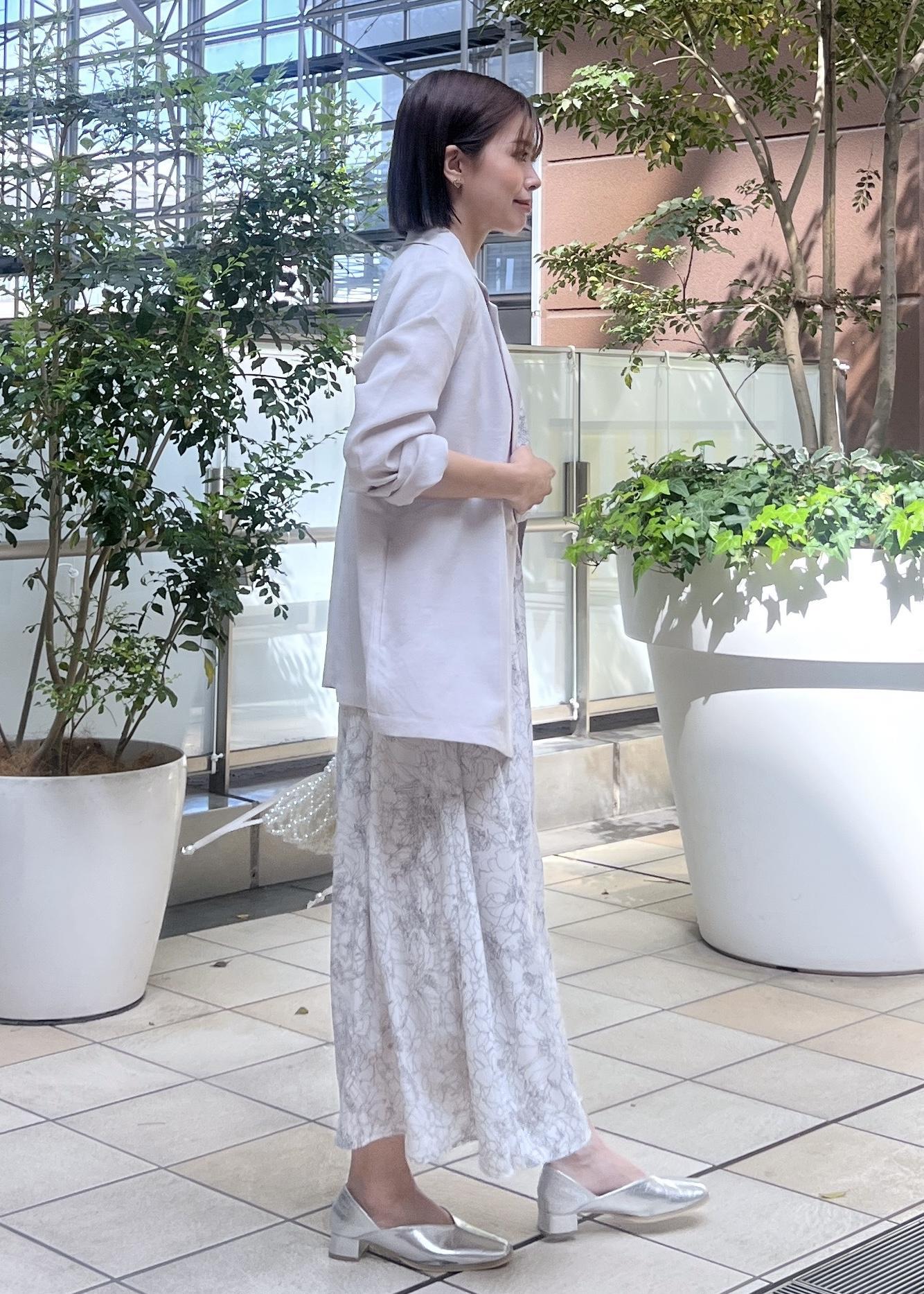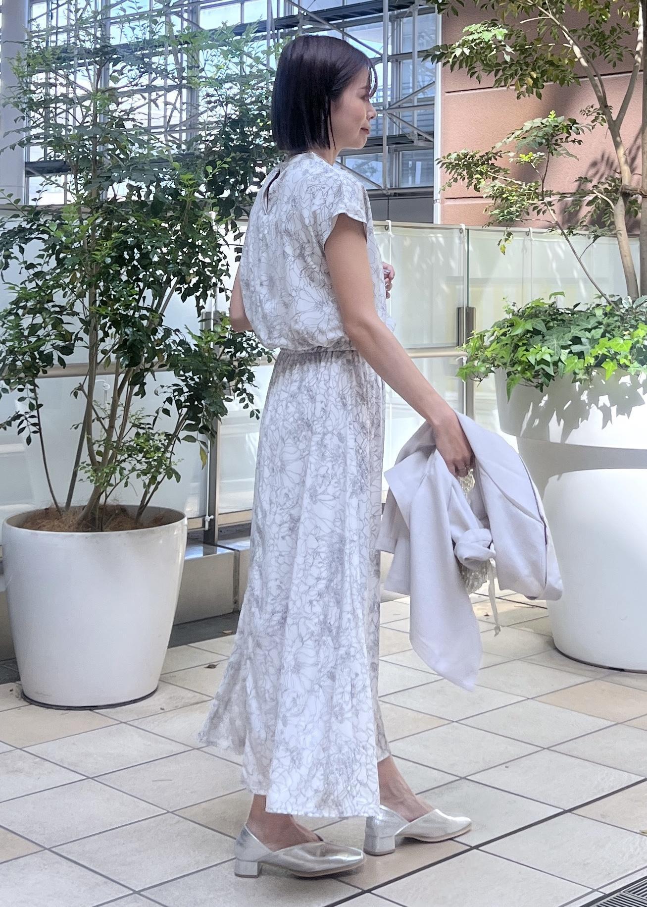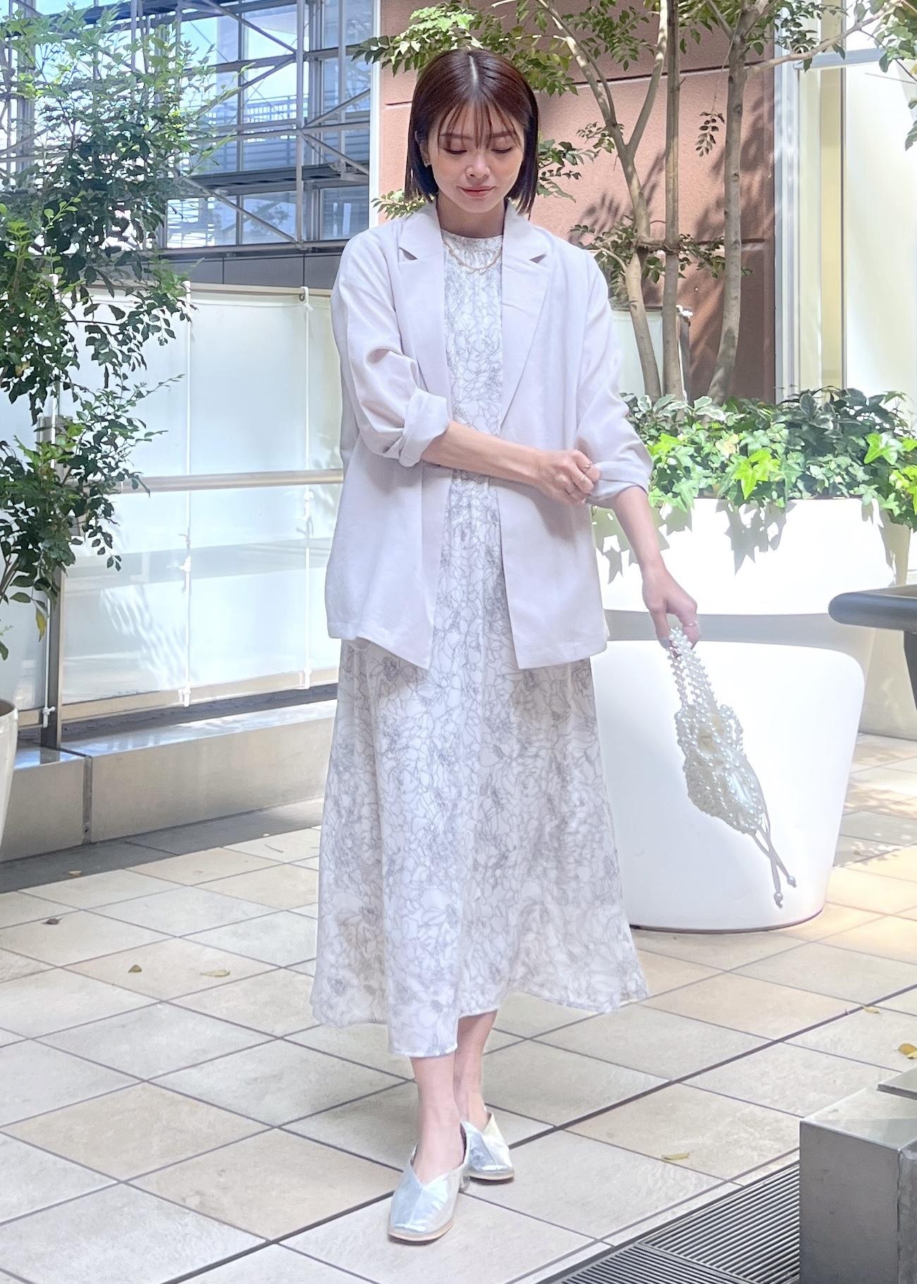 花柄ワンピース×ジャケットのきれいめスタイル