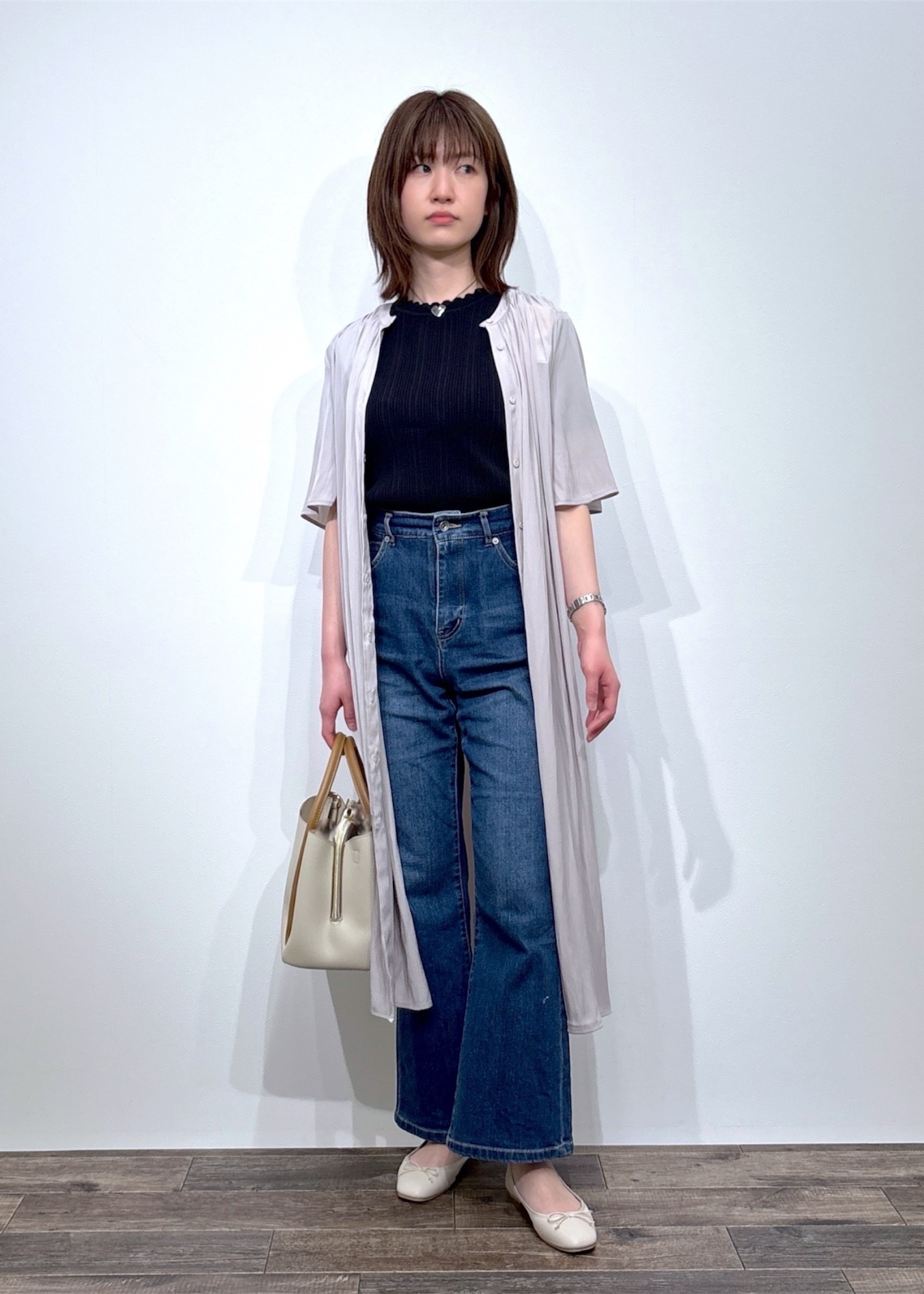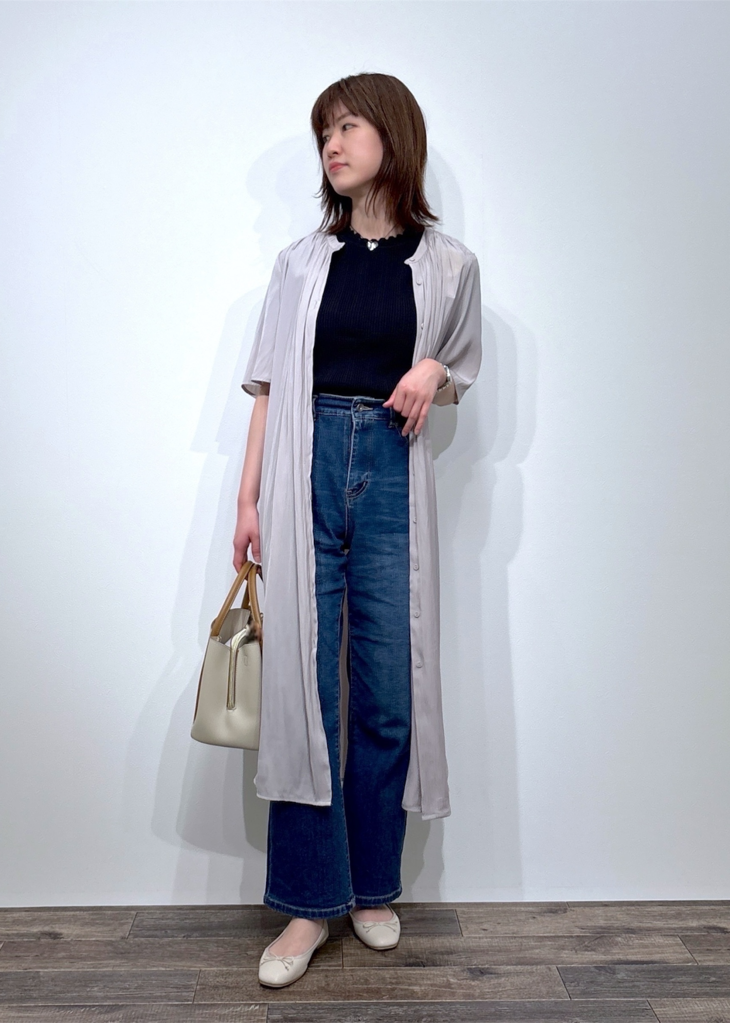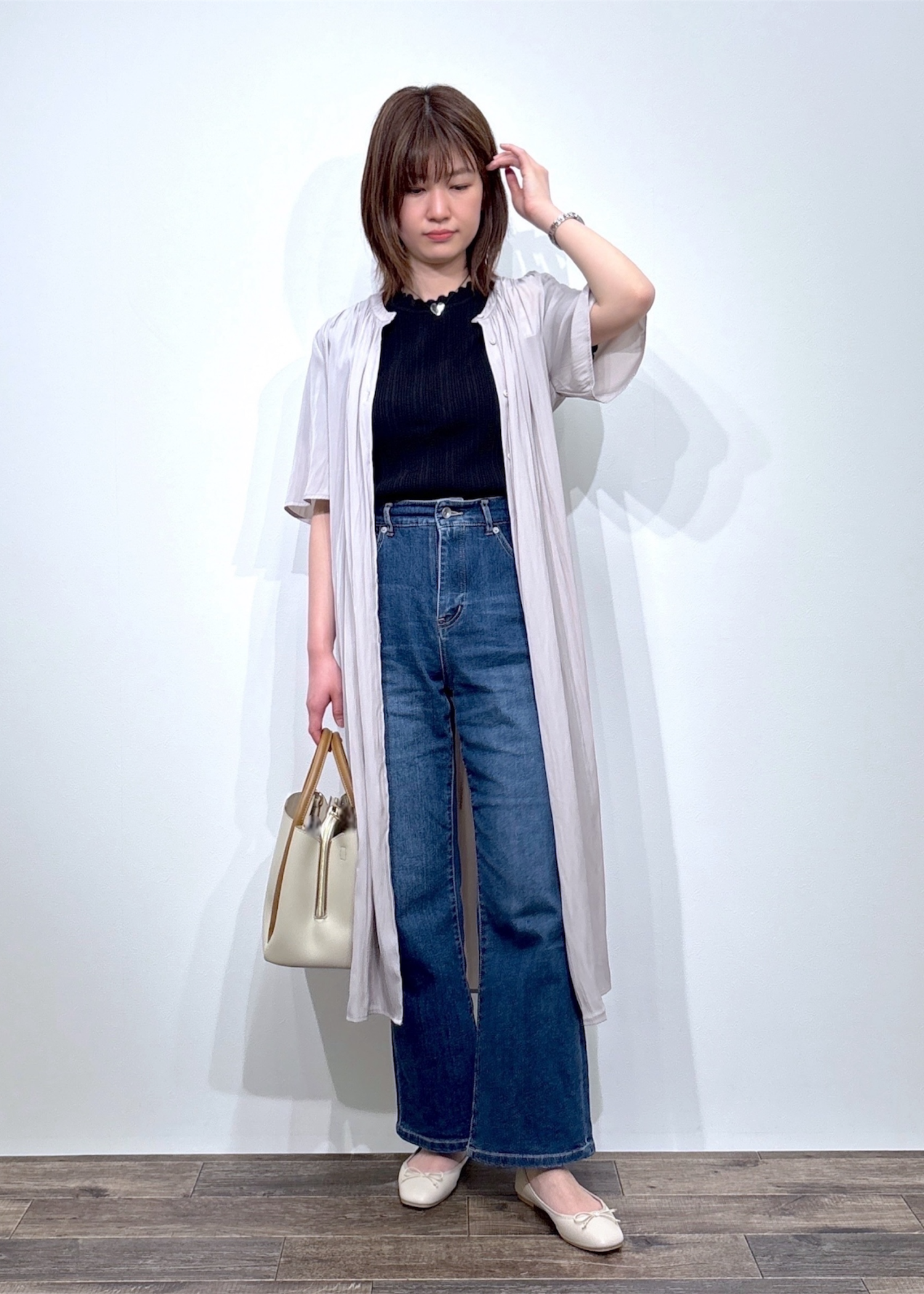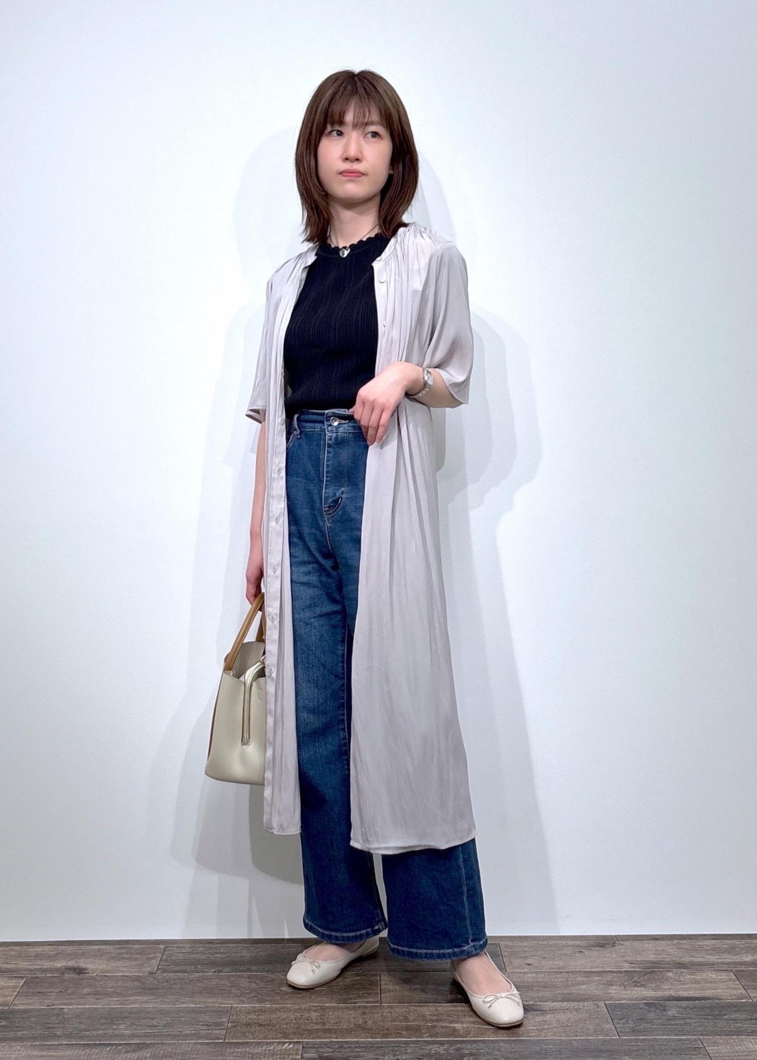 ワンピースを羽織りにしてカジュアルなムードにしました◎
