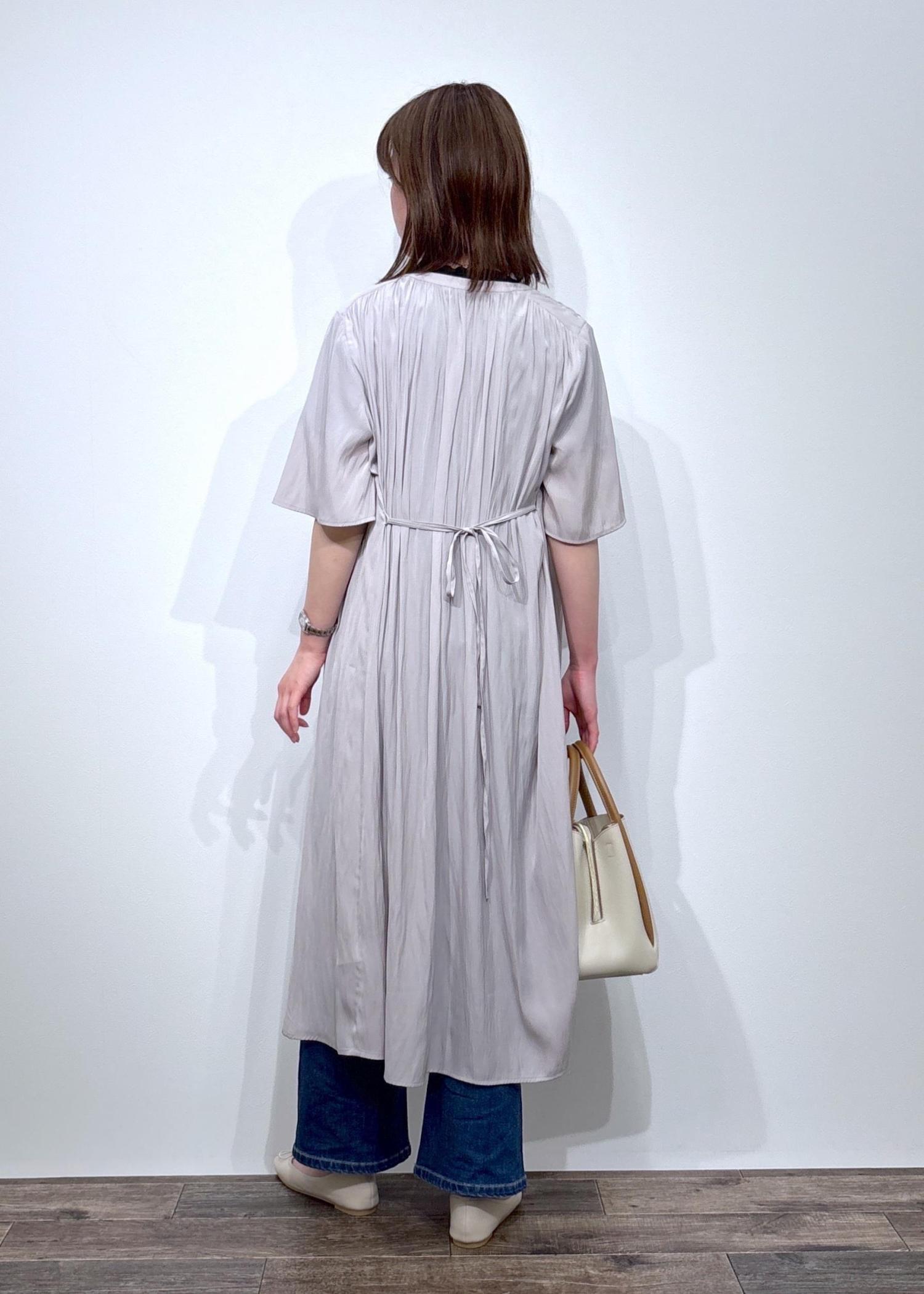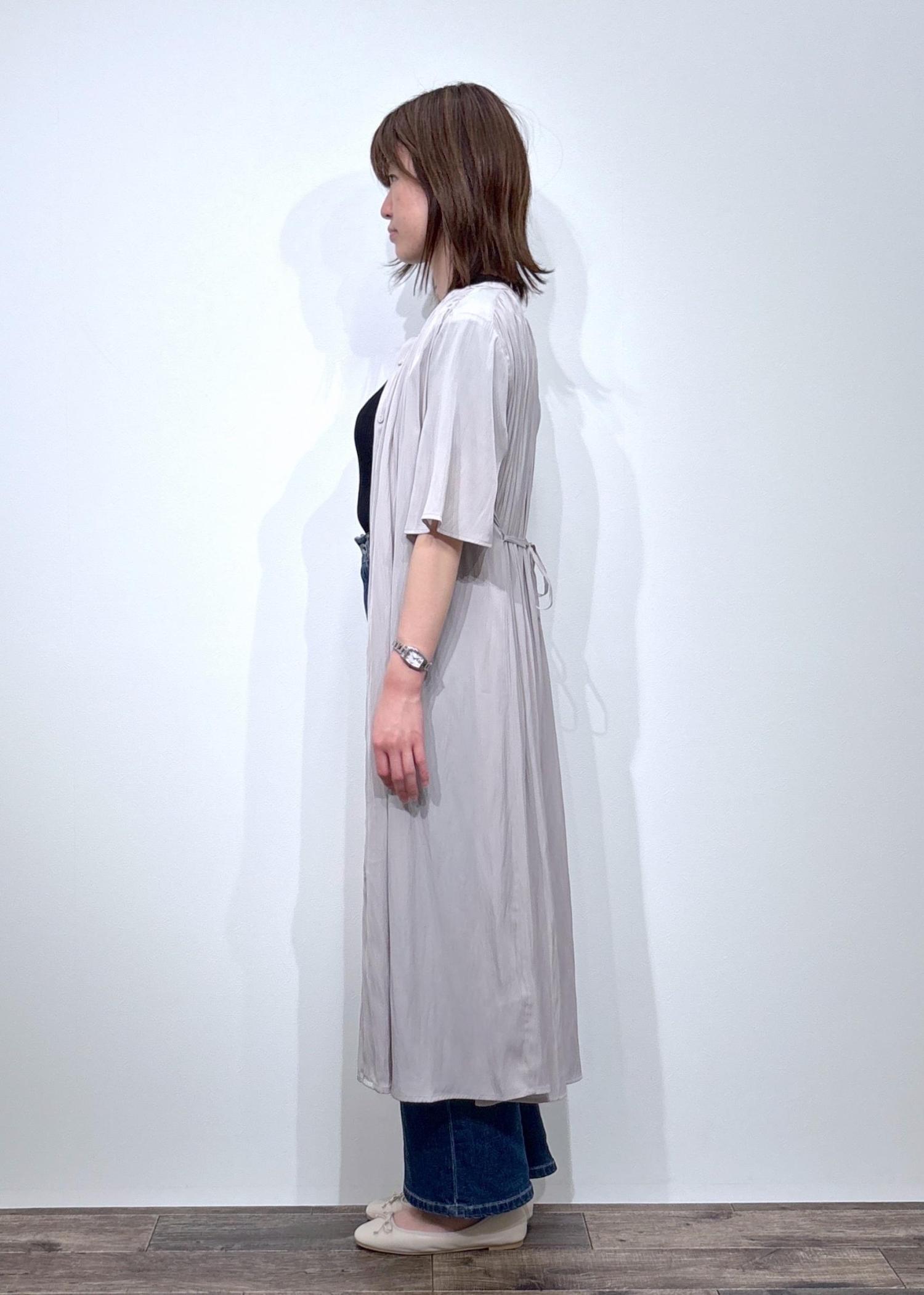 サラッと軽やかで落ち感があります。二の腕を自然にカバーしてくれ、38サイズで丈はふくらはぎあたりでした。