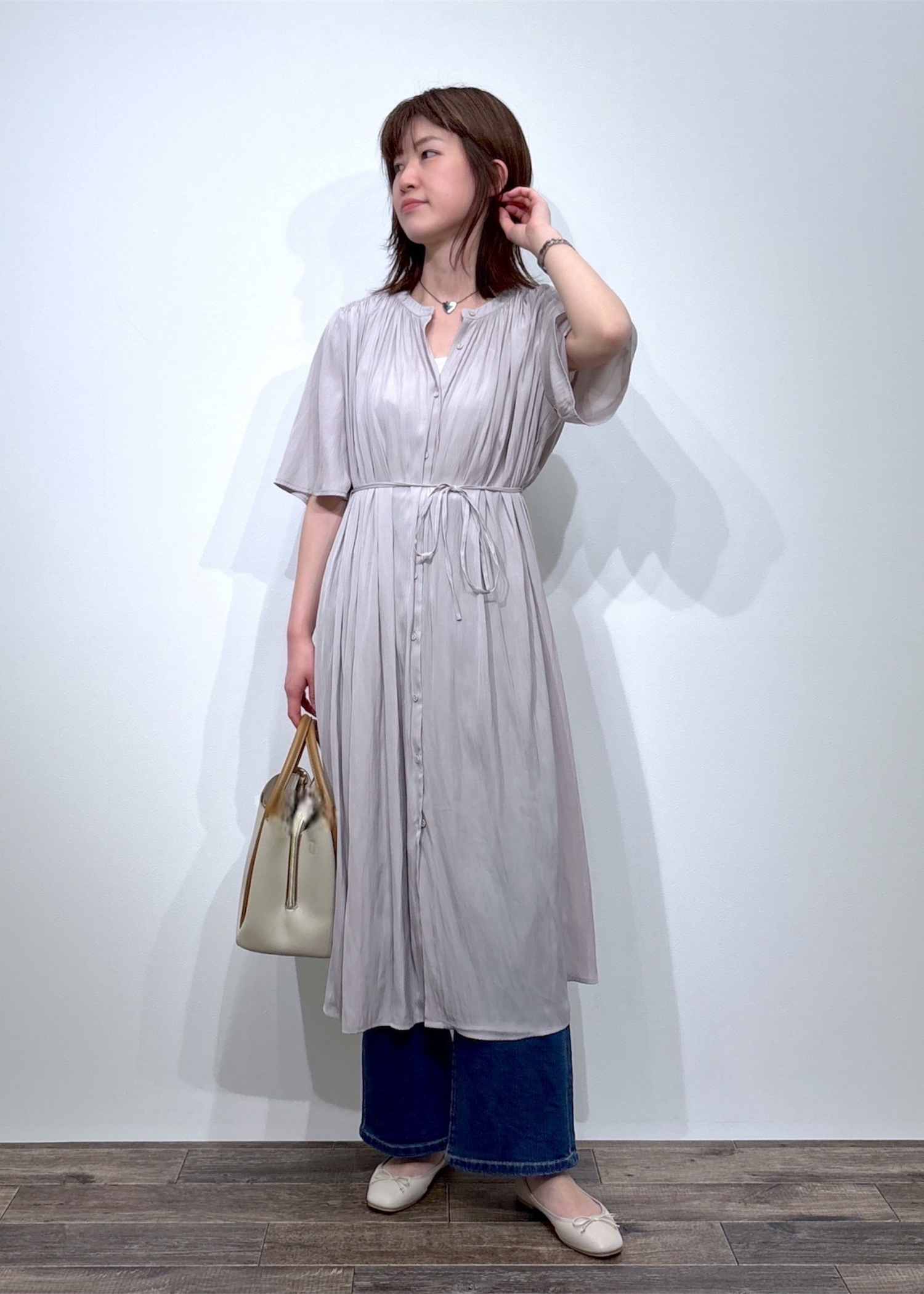 アウトレットROPÉ PICNIC着丈選べる/接触冷感・UVカット/割繊ハーフスリーブワンピースグレー / 38¥3,597レビューサラッと軽やかで落ち感があります。二の腕を自然にカバーしてくれ、38サイズで丈はふくらはぎあたりでした。