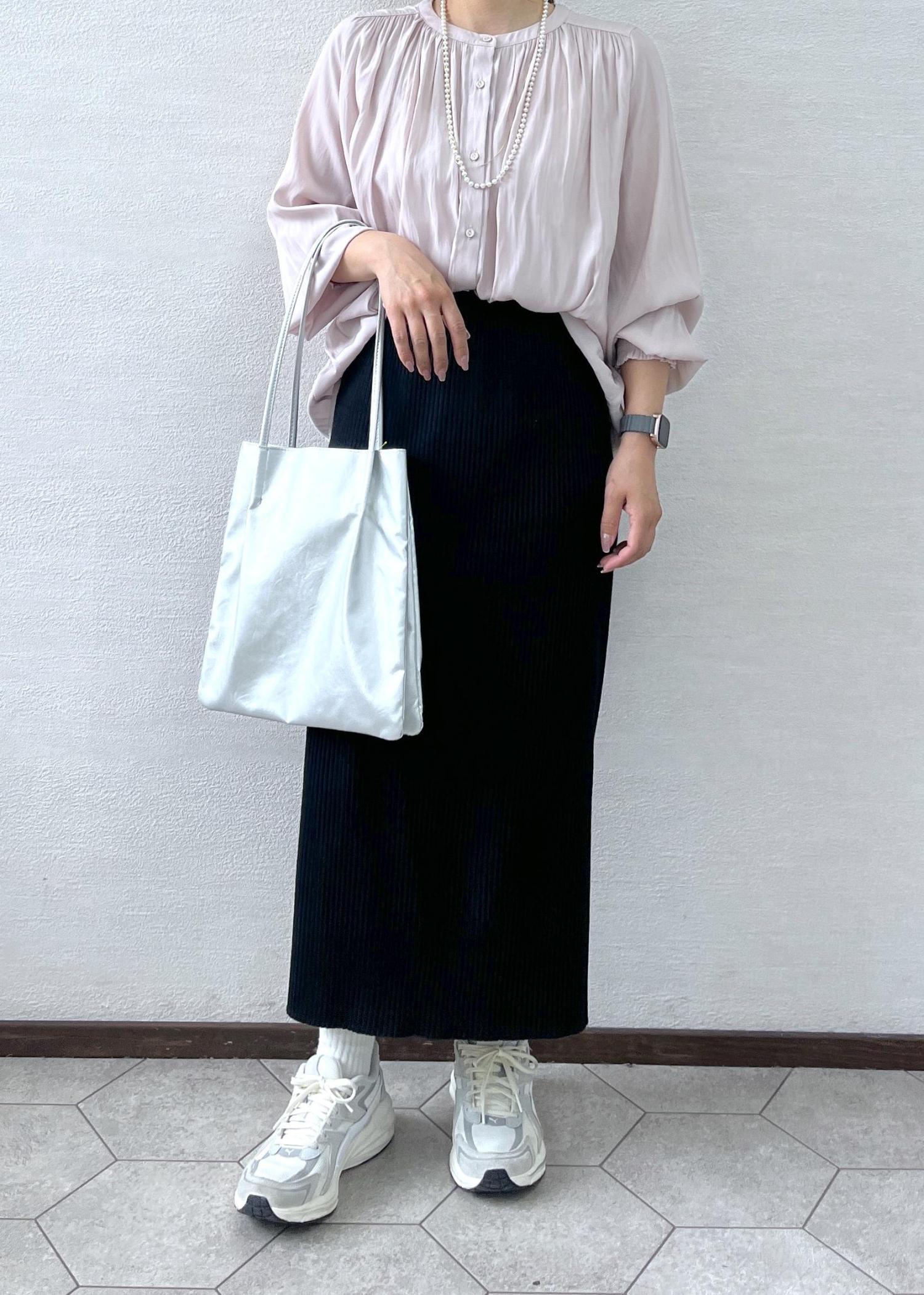 細リブでタイトなスカート!スリット入りで動きやすい!
