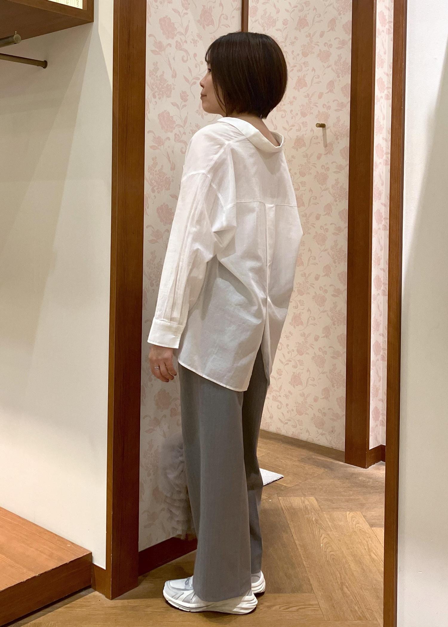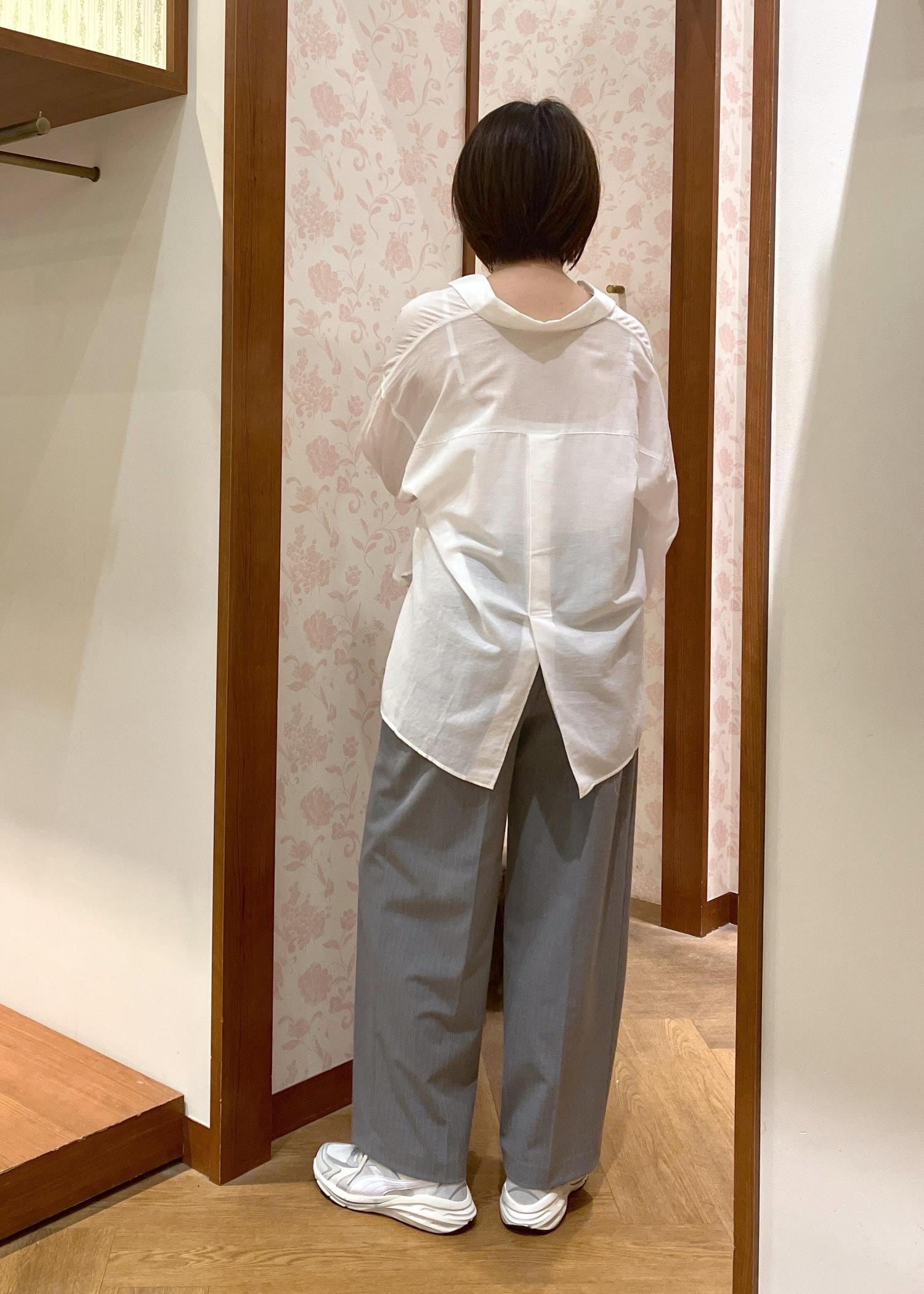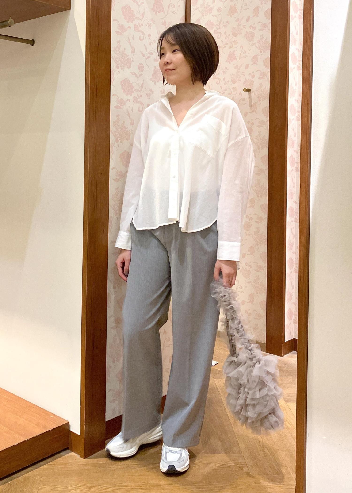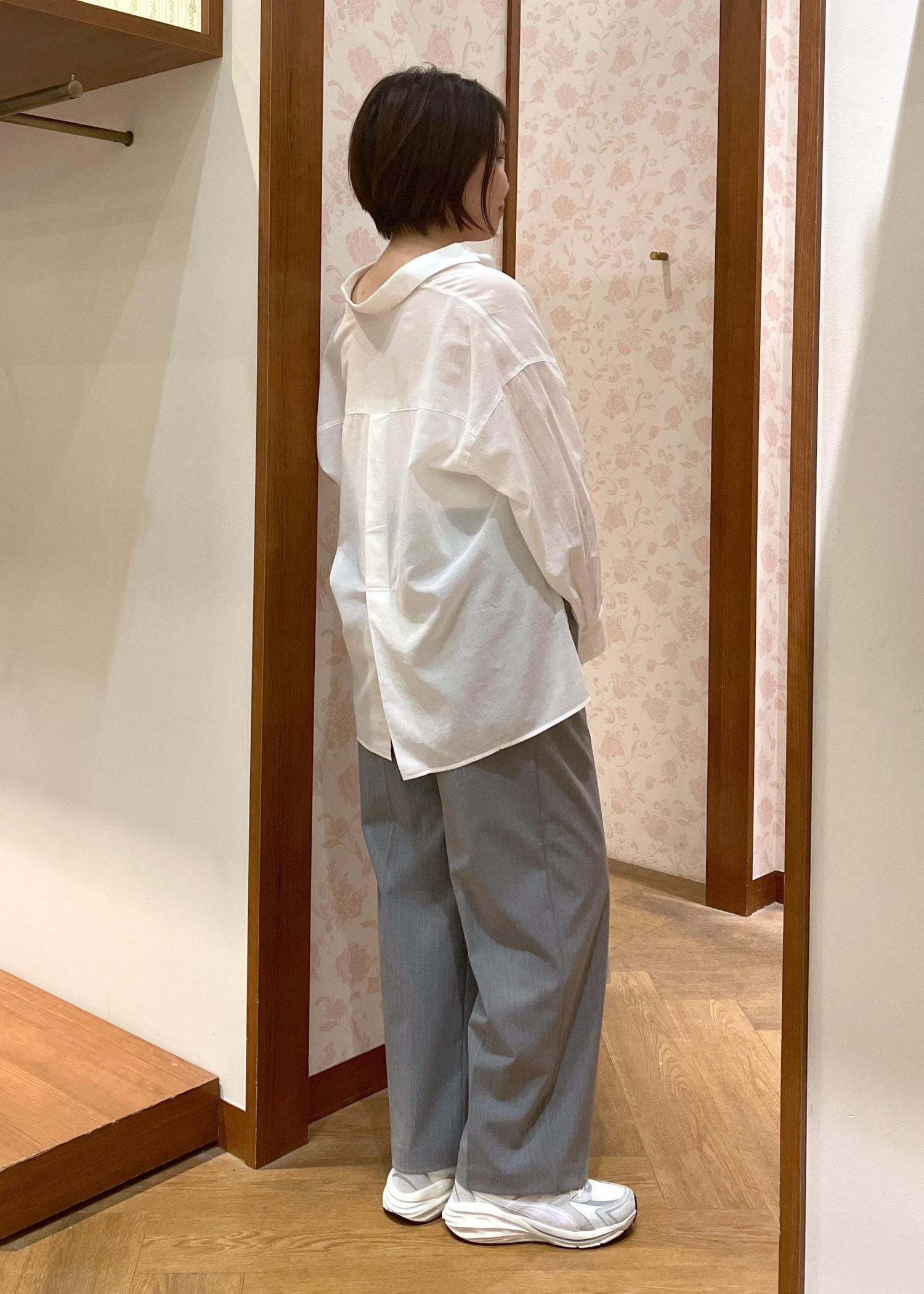 シャツ×パンツのコーデをホワイト×グレーでクリーンな印象に♡