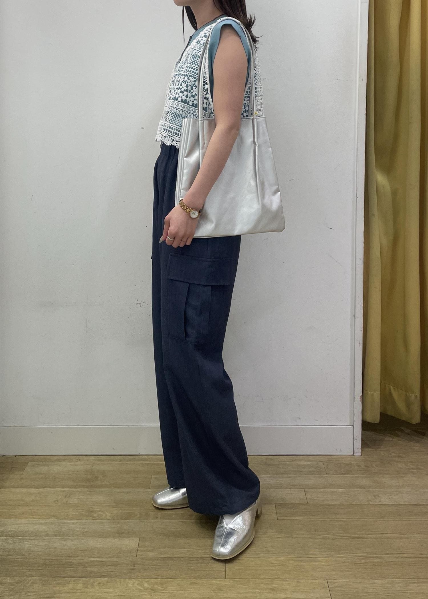 トレンドのカーゴパンツは、ラインが広がり過ぎず綺麗なシルエットです。