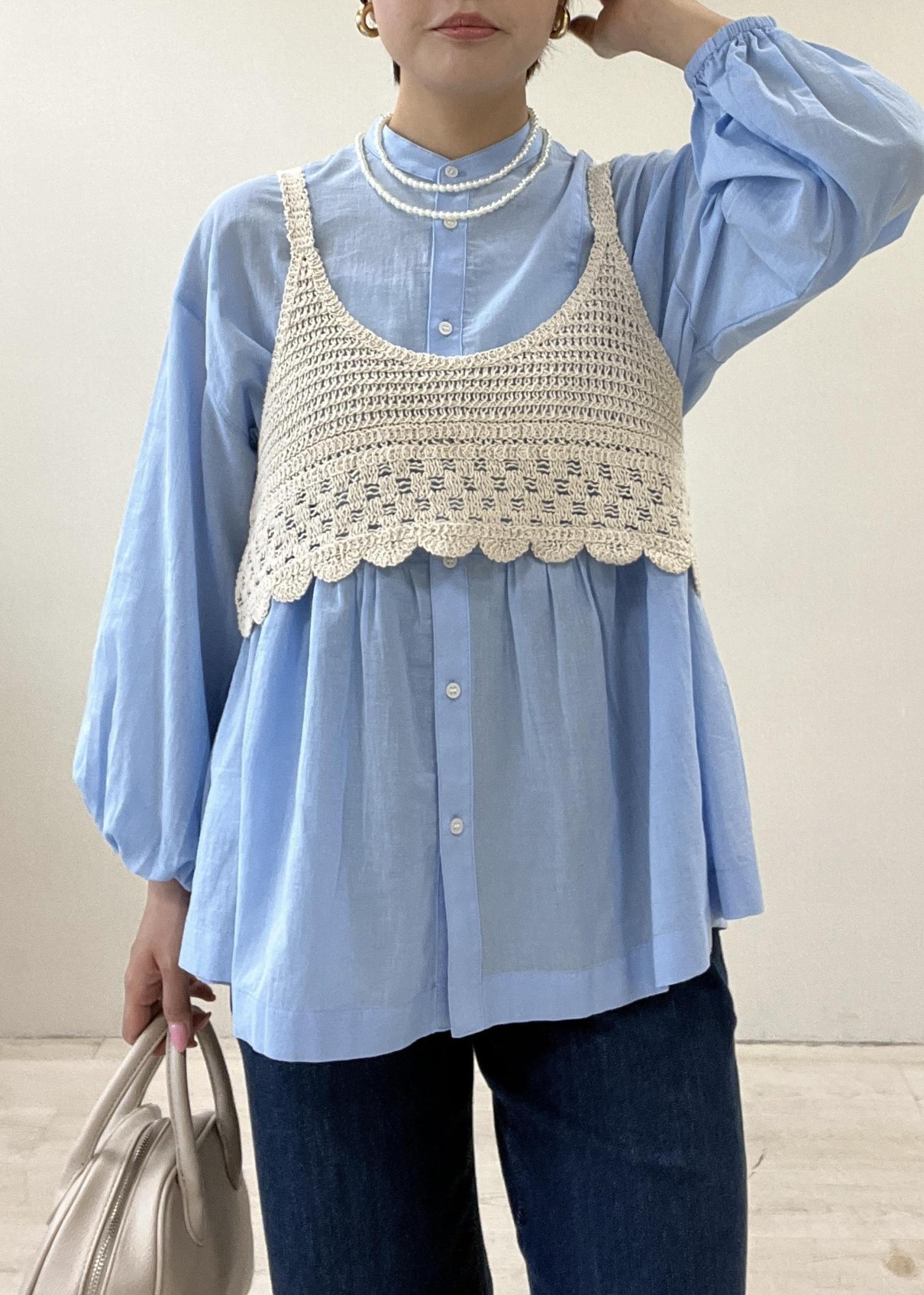 シャツやTシャツに+1するだけで、一気に華やかな雰囲気に◎