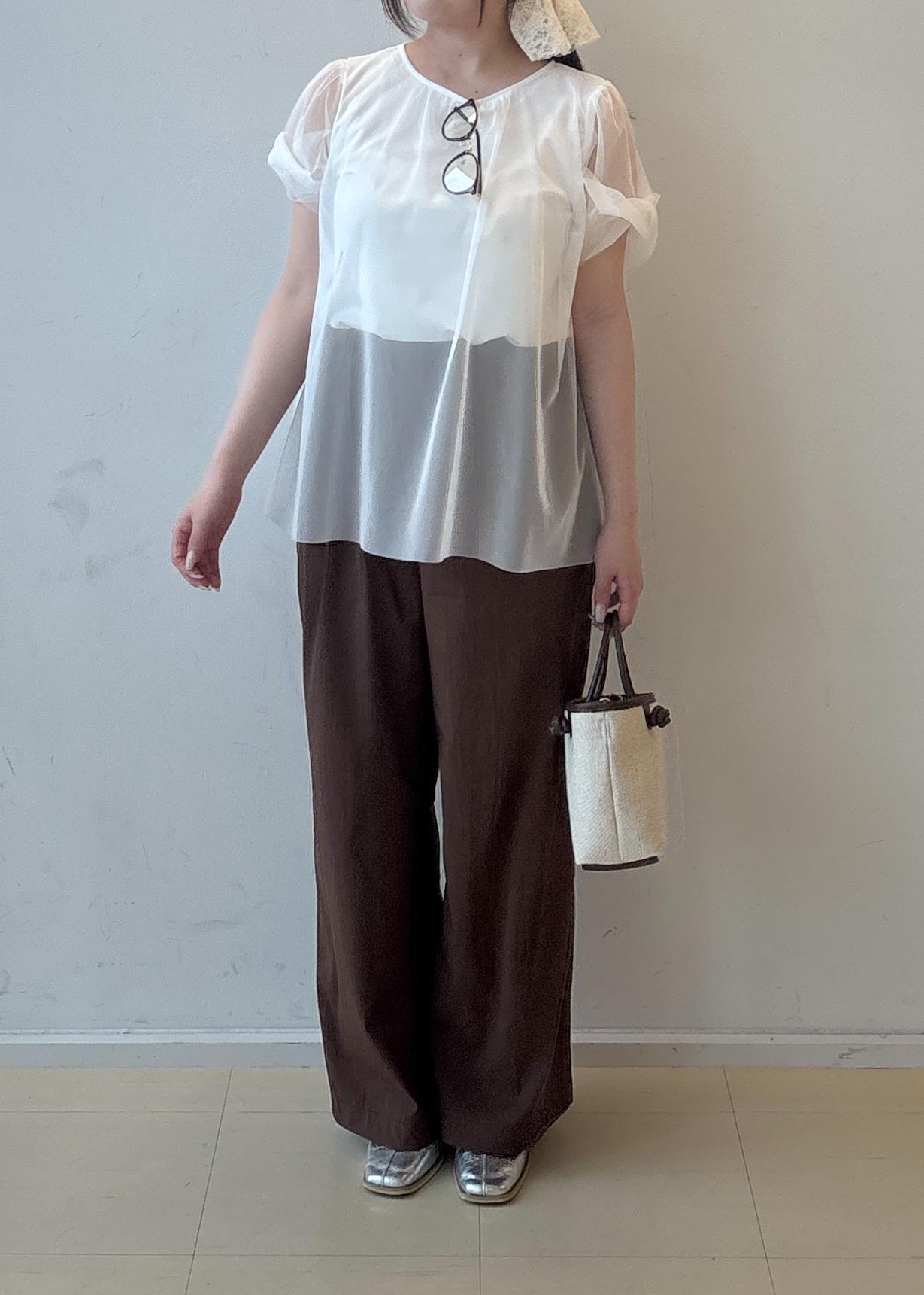 ワイドなシルエットでスタイルをよく見せてくれます。
