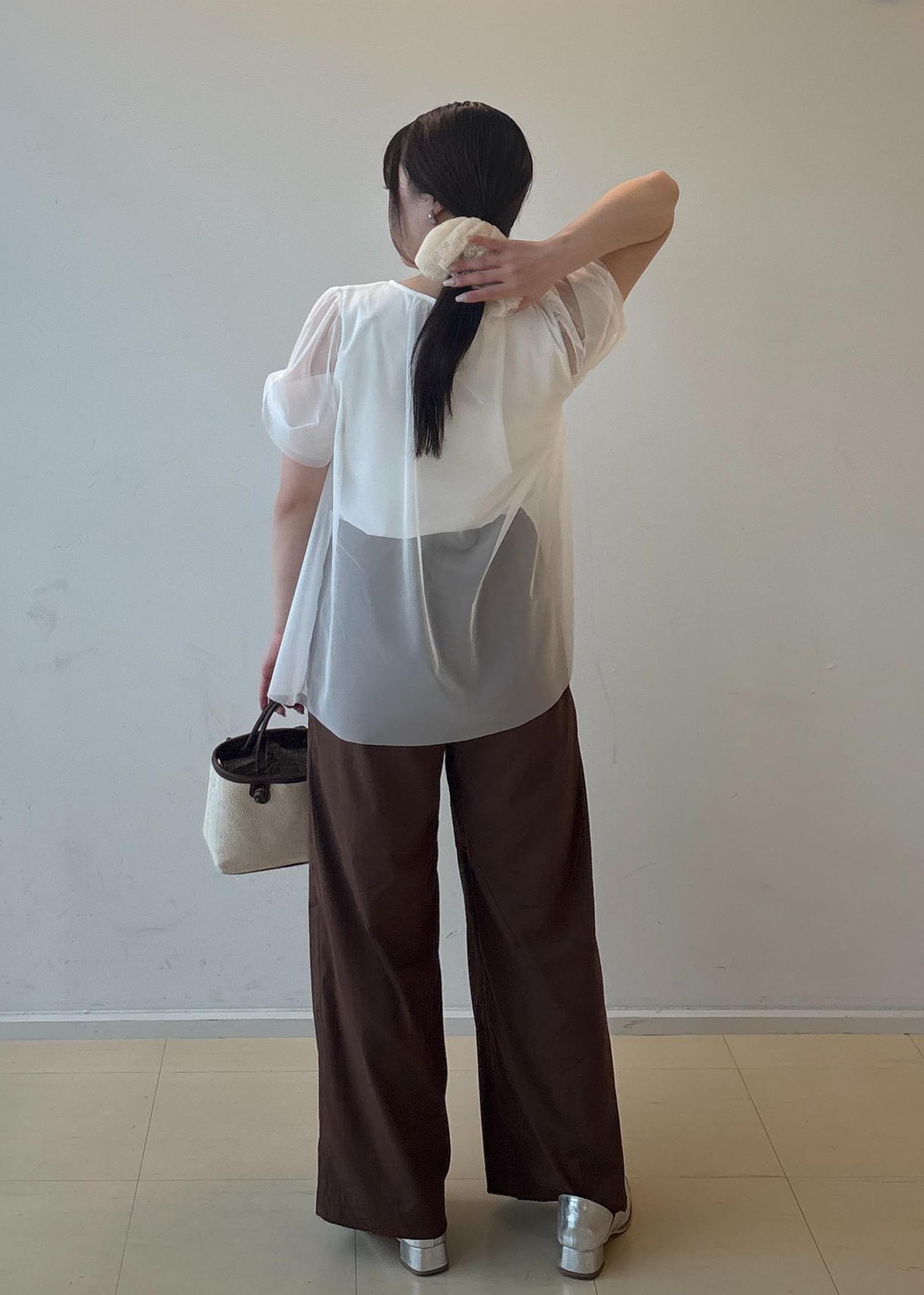 落ち着きのあるブラウスカラーで大人な雰囲気を与えてくれます。 -