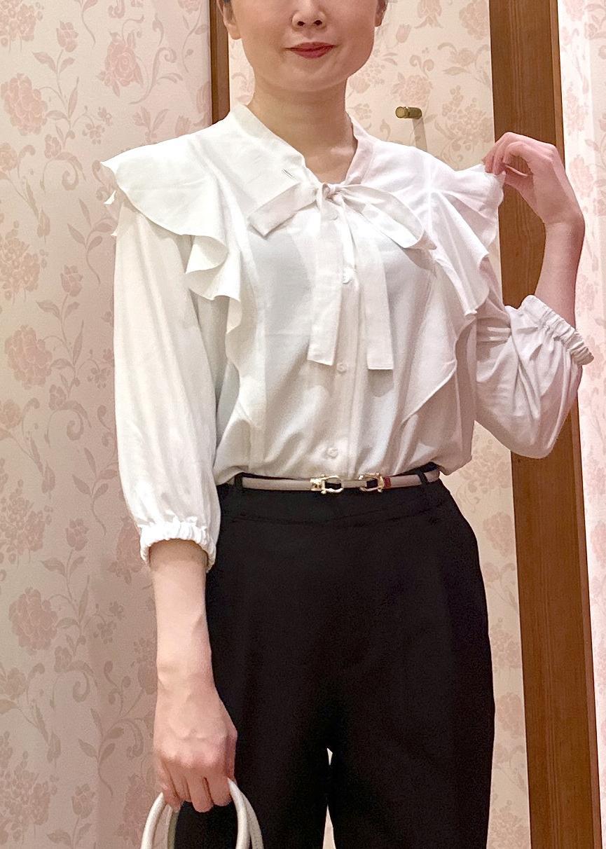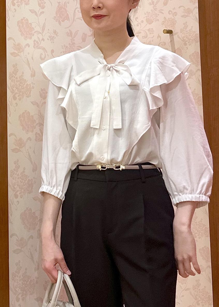 ROPÉ PICNICラッフルリボンデザインシャツオフホワイト / 38¥4,994レビュージャケットを着ると肩のフリルが、邪魔になるかな?と思いましたが私はゴワつきは気になりませんでした。インをしなくてもスッキリ着れます◎