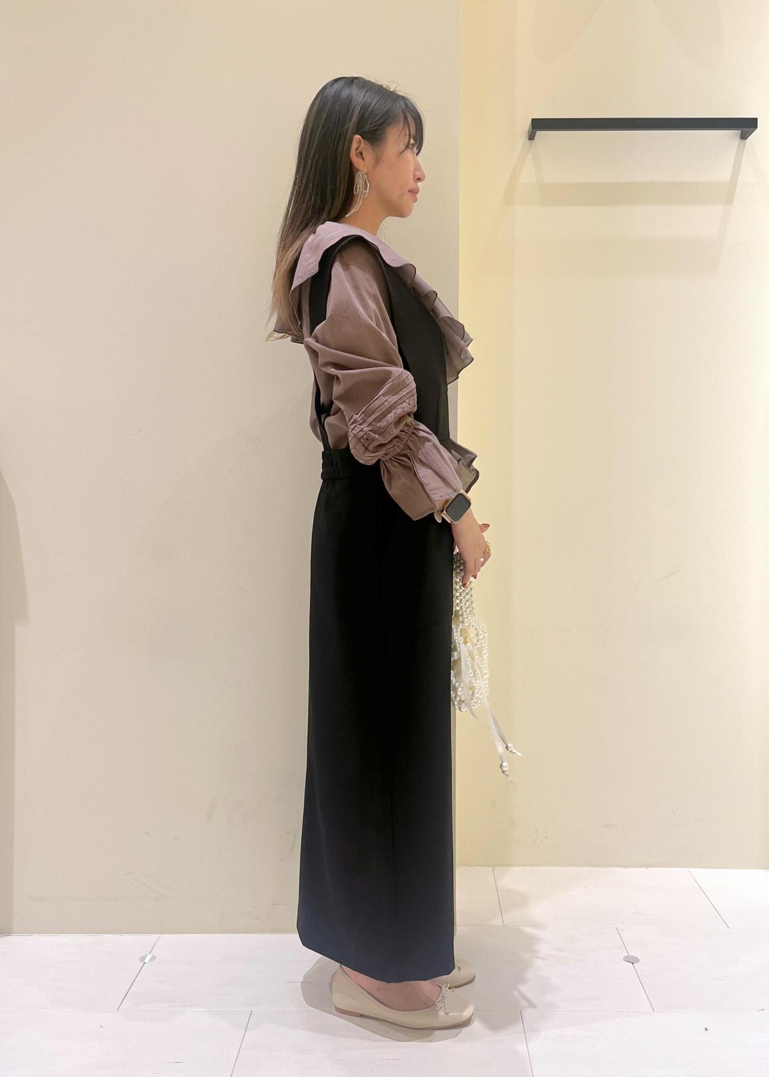 フリルブラウスを活かしたジャンスカコーデ◎