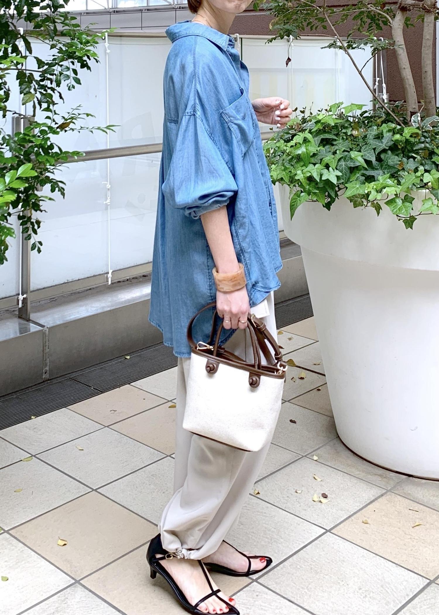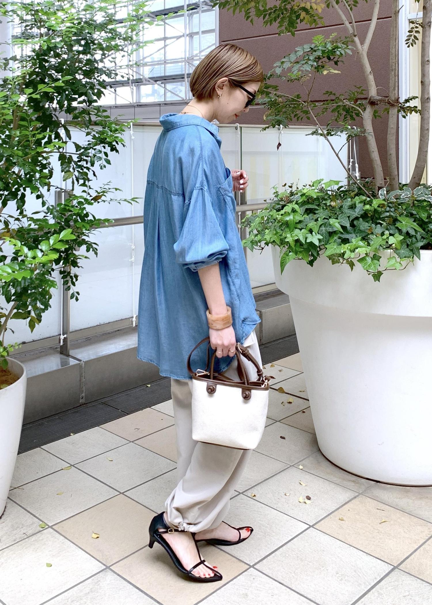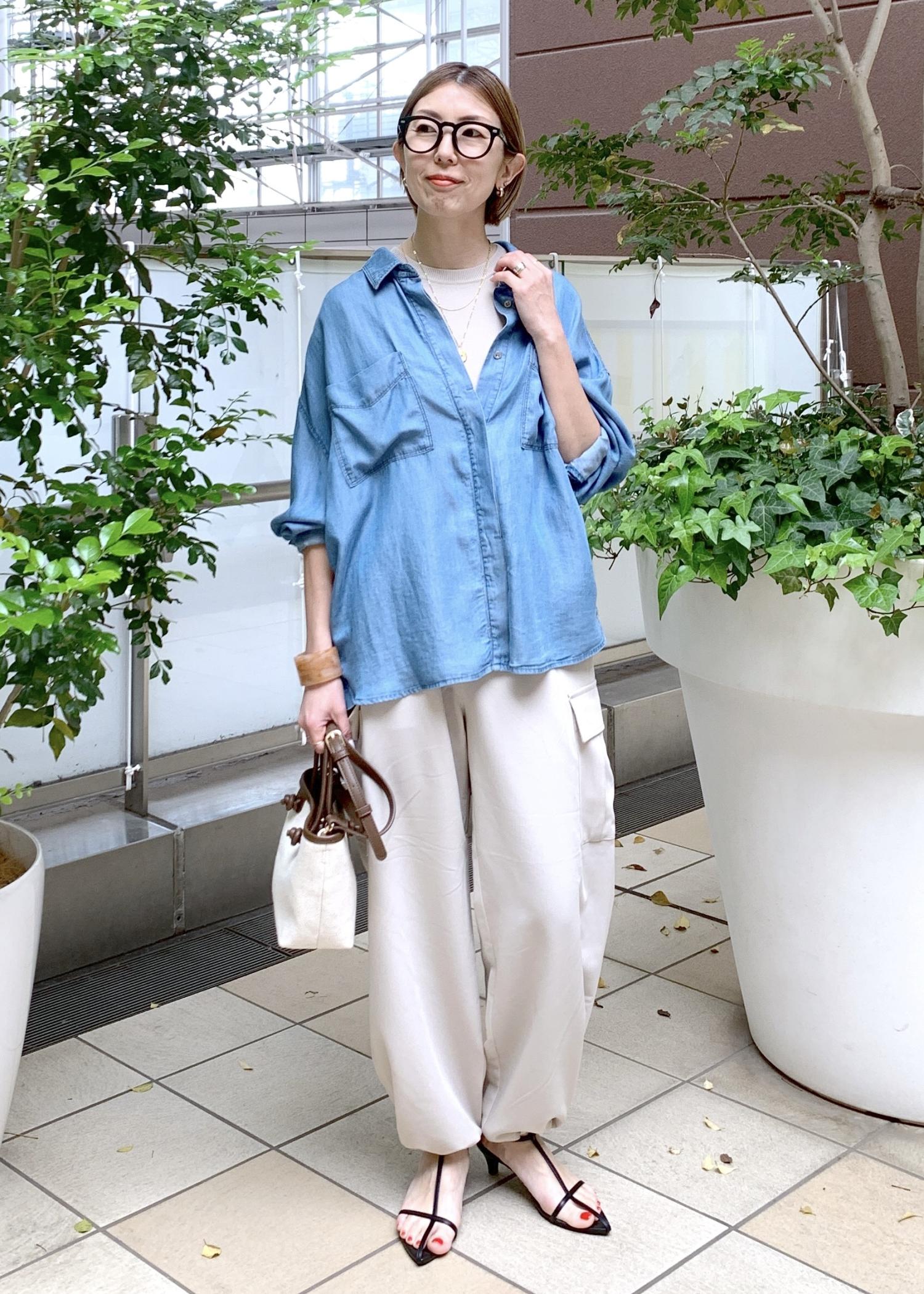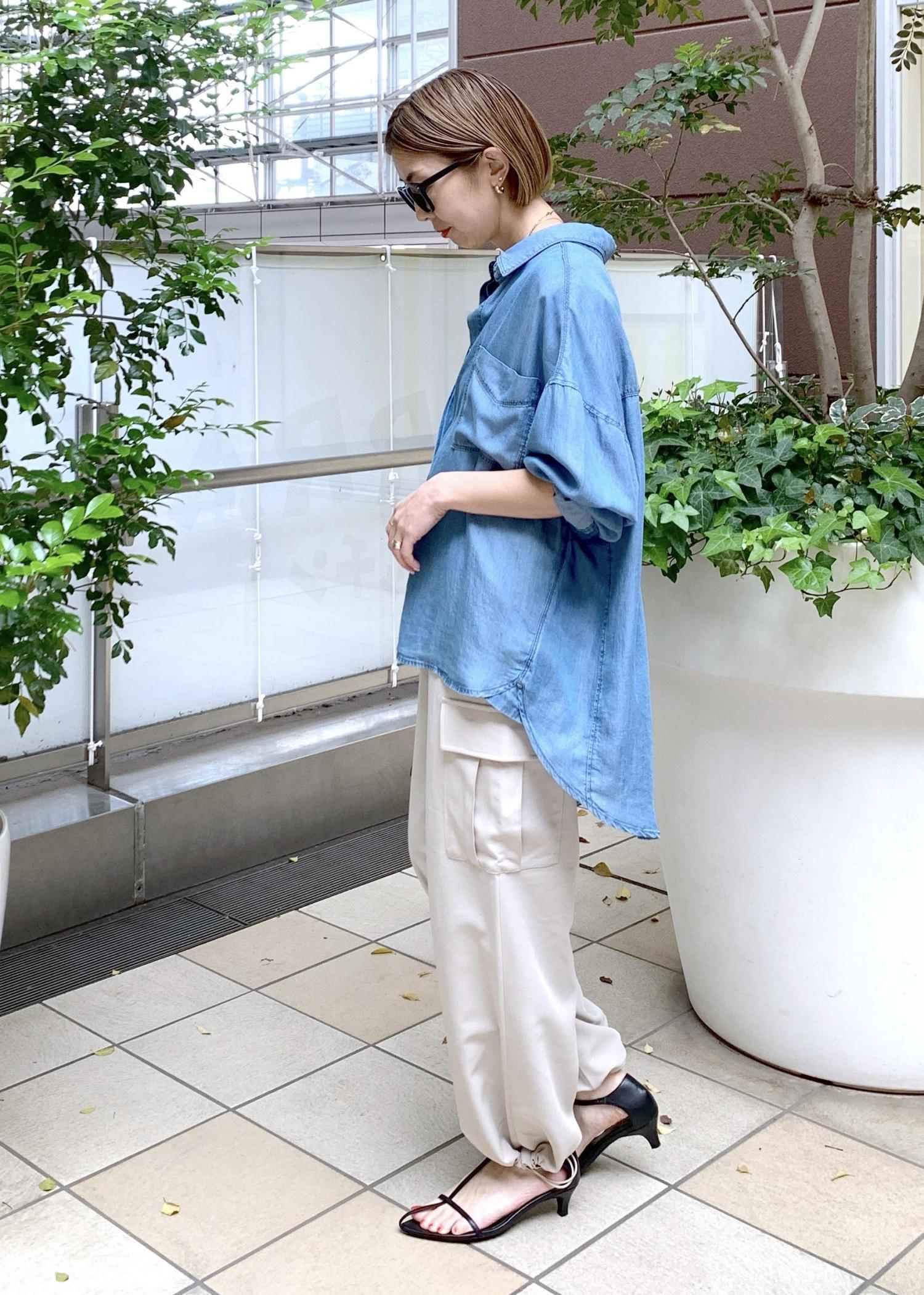 カジュアルになり過ぎない様に足元はヒールのサンダルで抜け感をプラス。