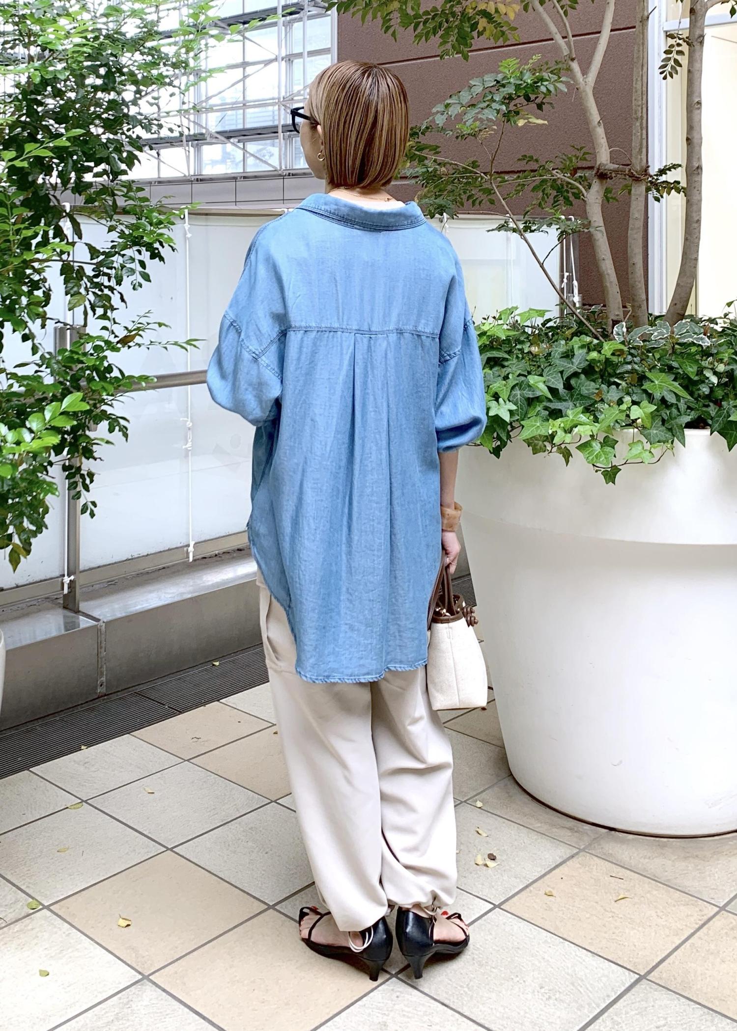 柔らかく滑らかなセルロース素材のデニム調シャツ。