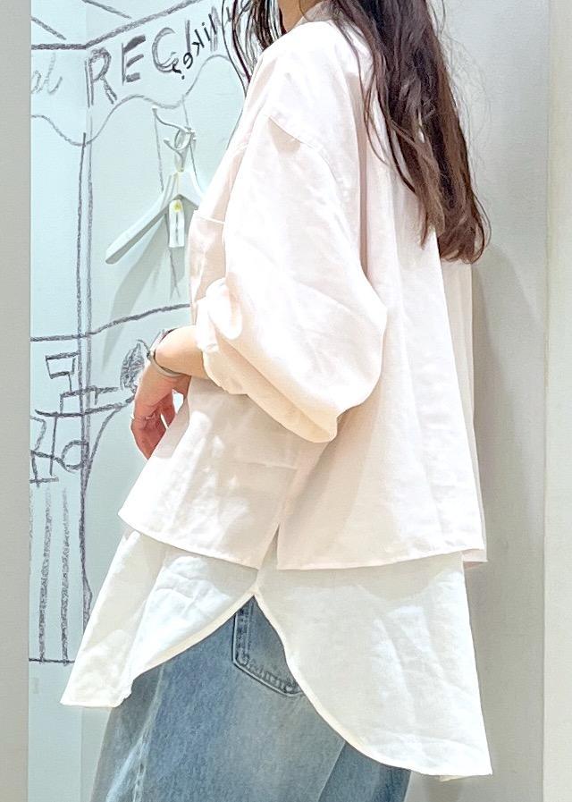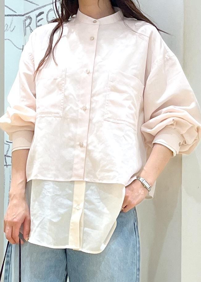 着丈が選べるバンドカラー無地シアーシャツ