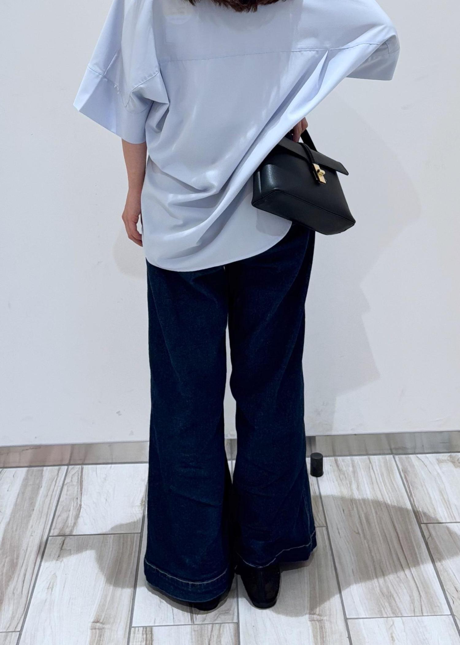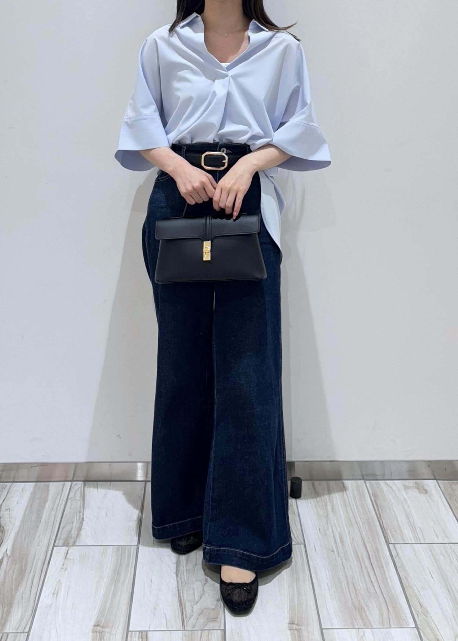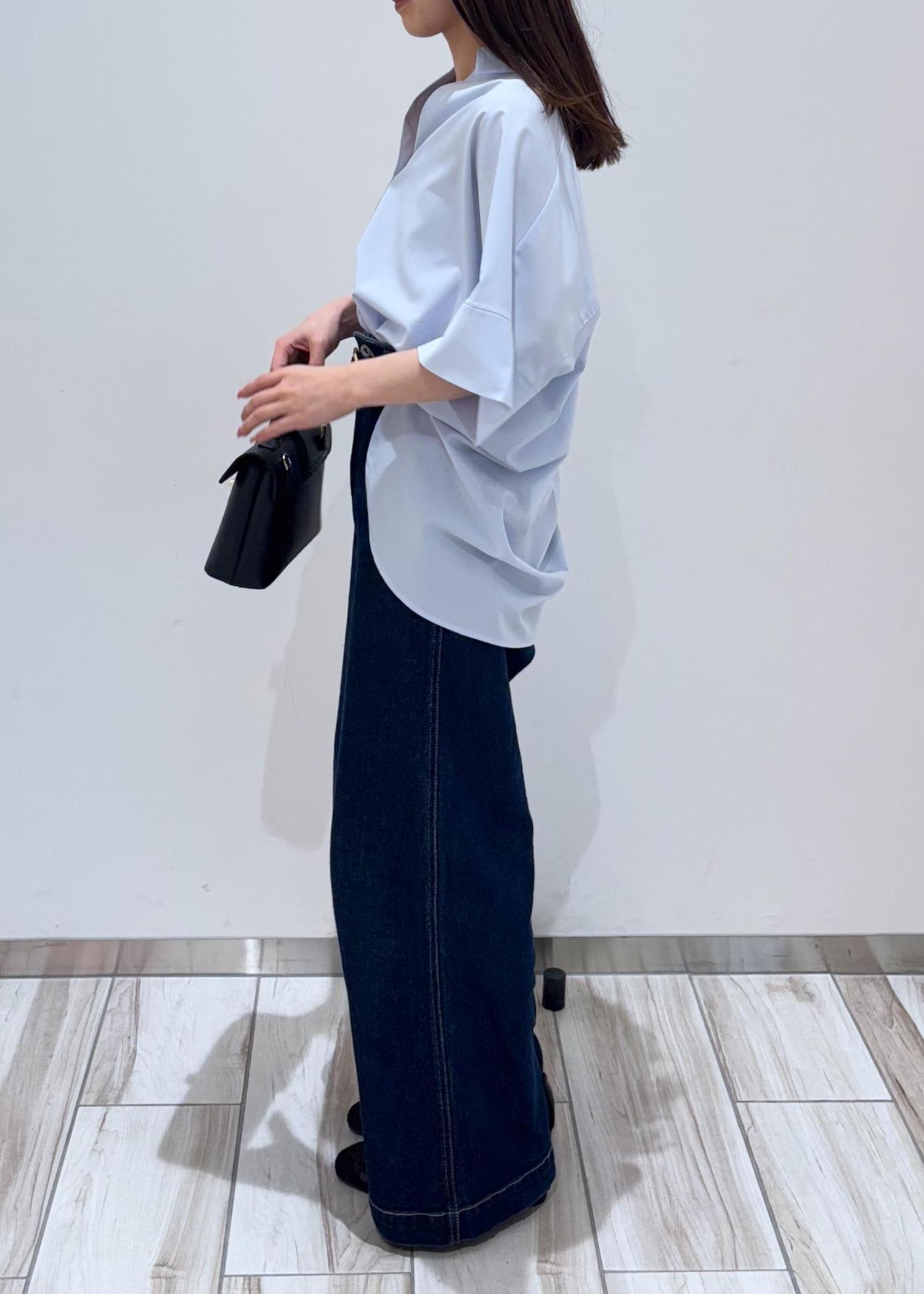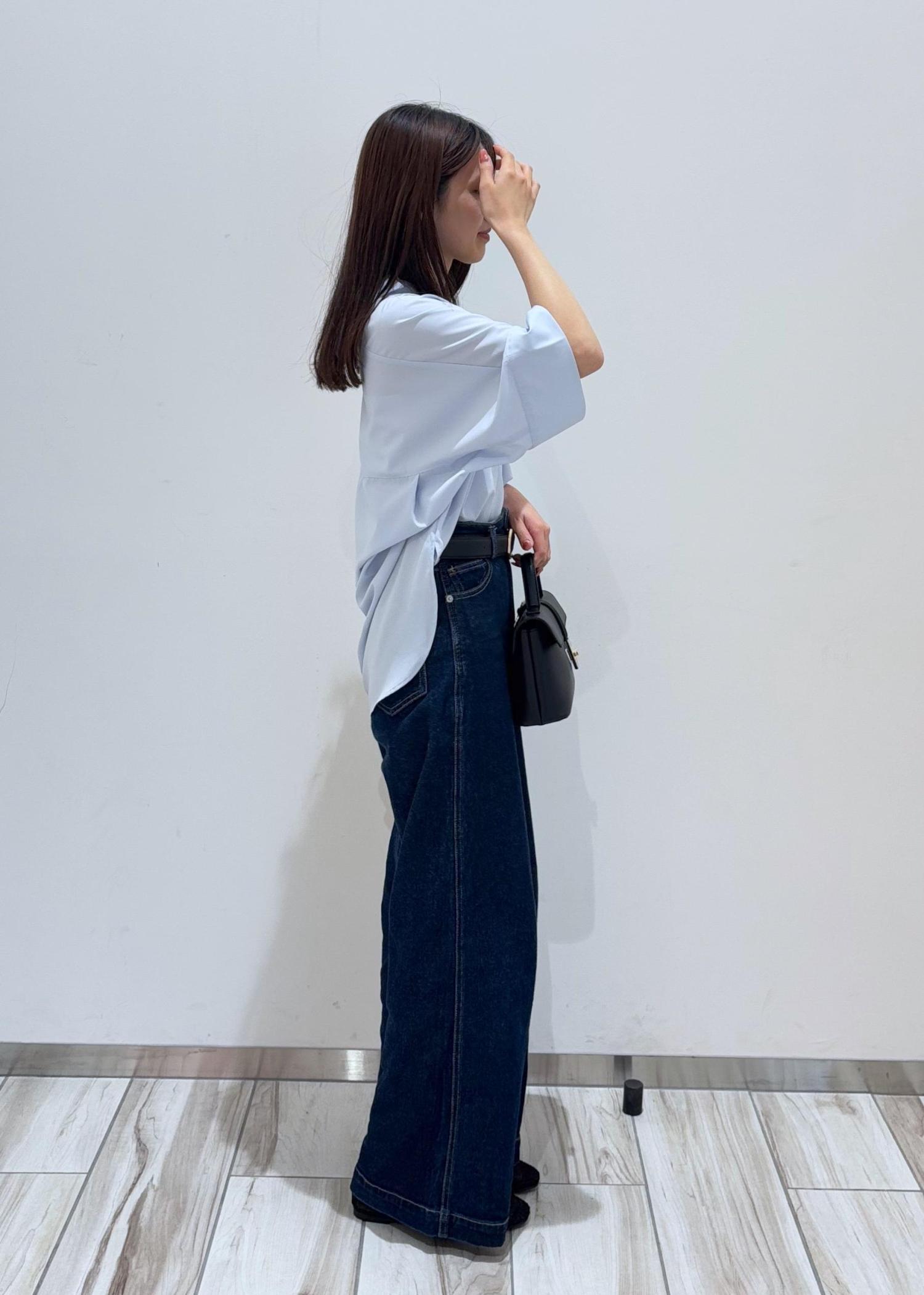 低身長の私はシャツに少し抵抗があるのですが、前をボトムへインし、ベルトを付ける事で綺麗に着ることができました。