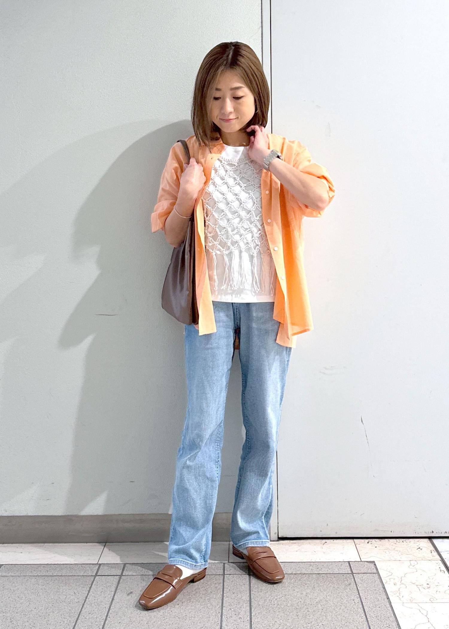 着丈もスッキリとしているので、スニーカーやフラットシューズの合わせもオススメです。