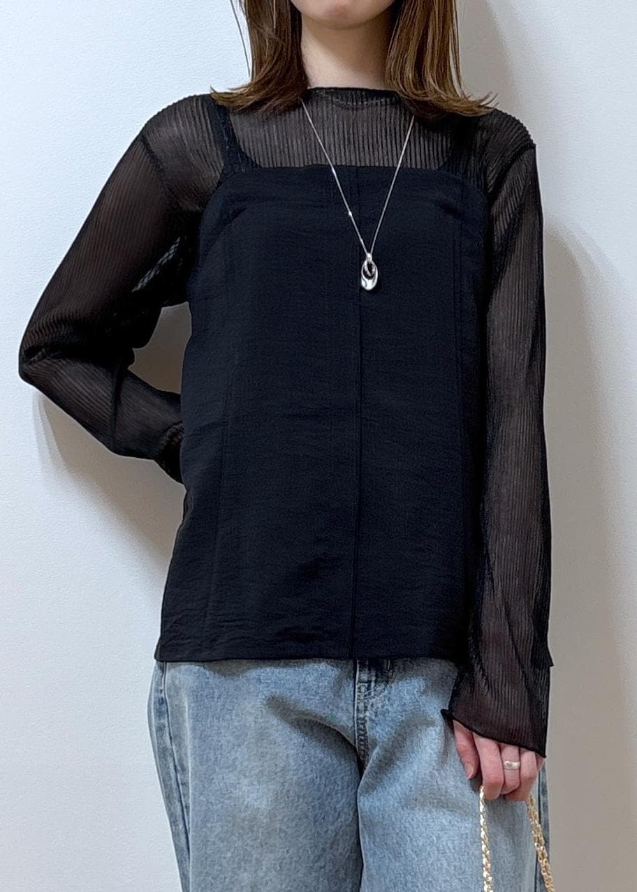 ROPÉ PICNICラメシアープリーツトップスブラック / 38¥3,498レビューキラキラのラメが入っており華やかな印象になります。チクチク感はなく、肌離れもしやすい素材感です。プリーツデザインなので、スッキリとして着痩せ効果も◎
