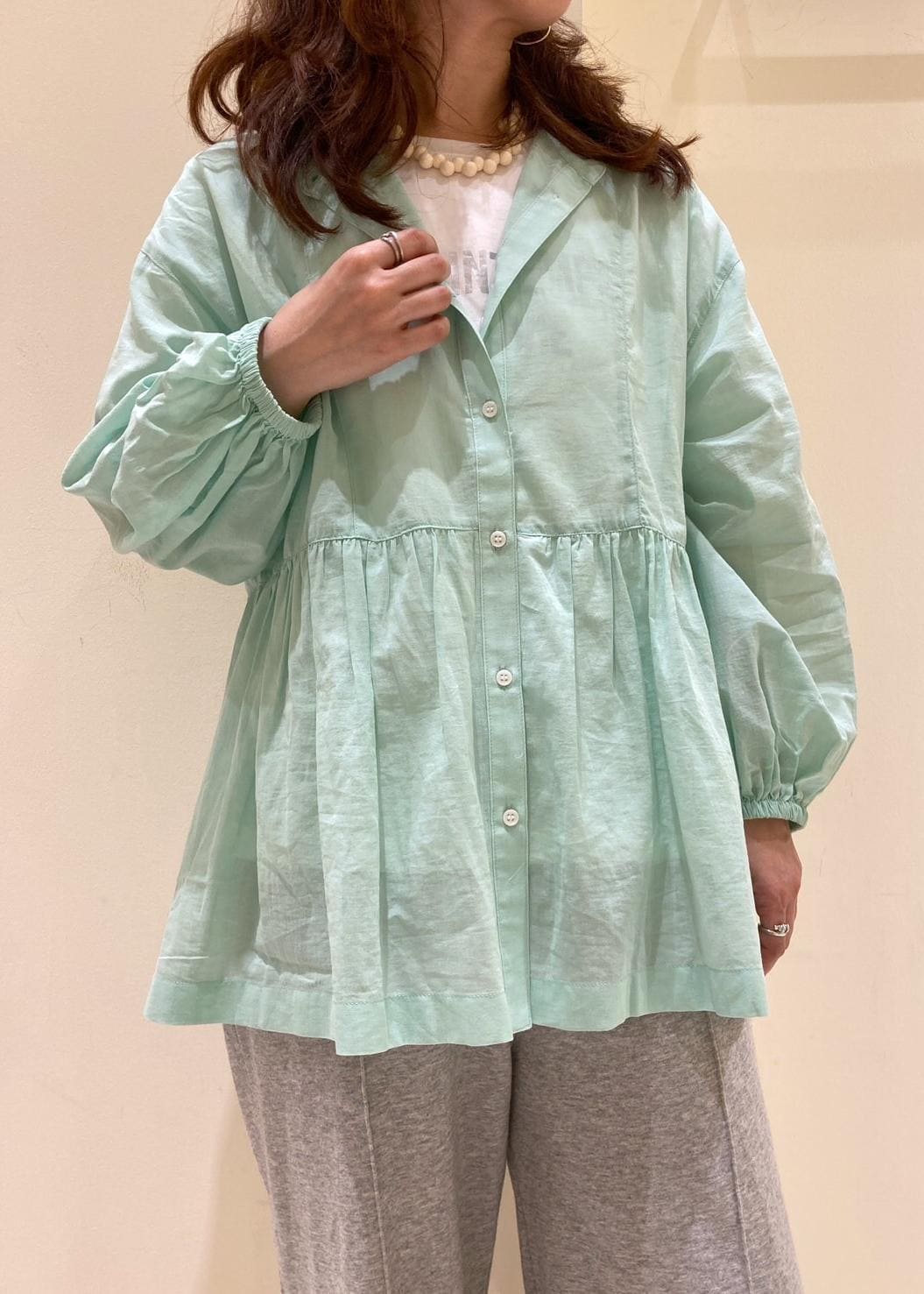 アウトレットROPÉ PICNIC【接触冷感・通気性】お着軽シャツシリーズ/綿ボイルペプラムシャツライトグリーン / 38¥2,396レビューコットン素材で軽くて涼しいブラウスです。