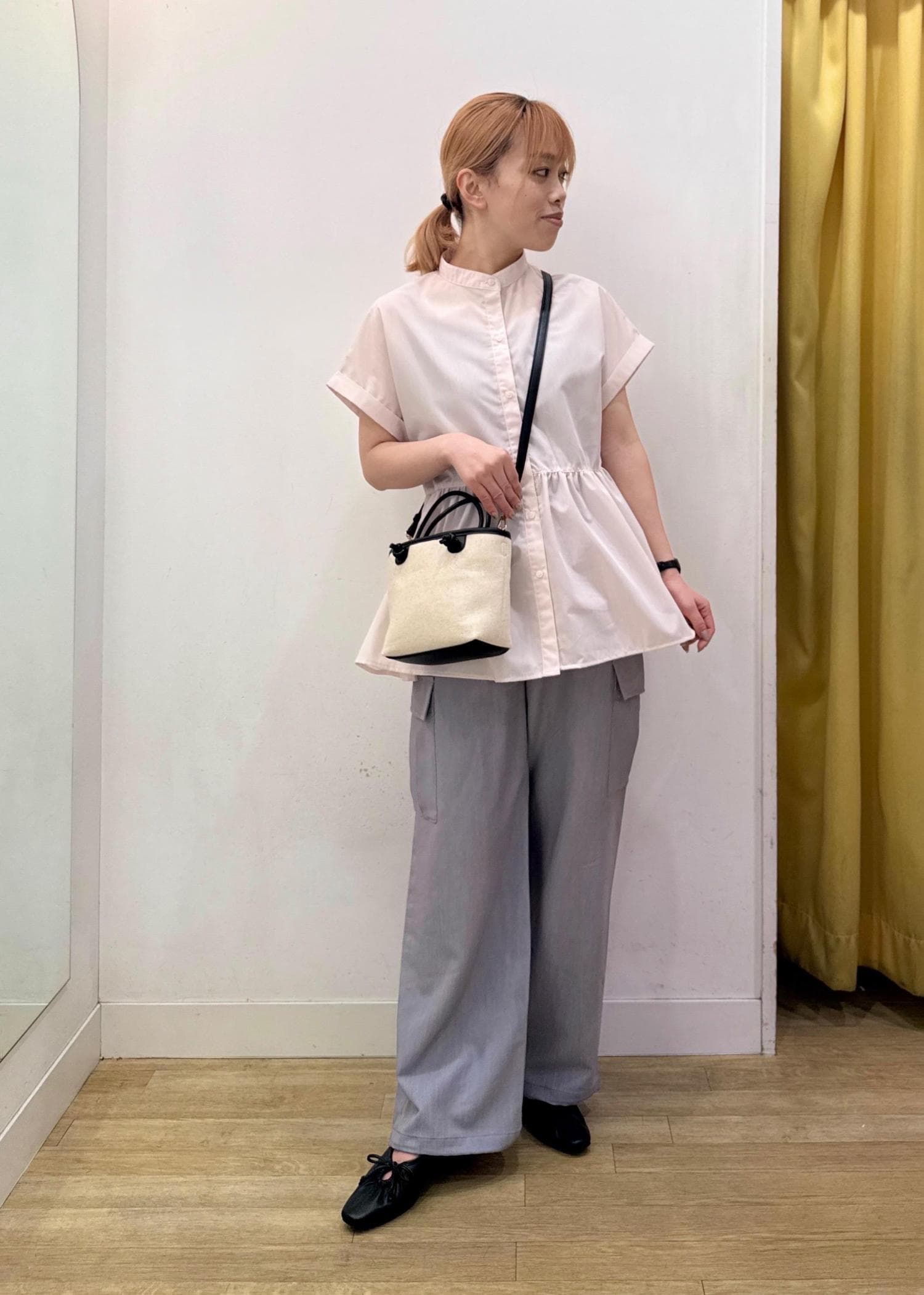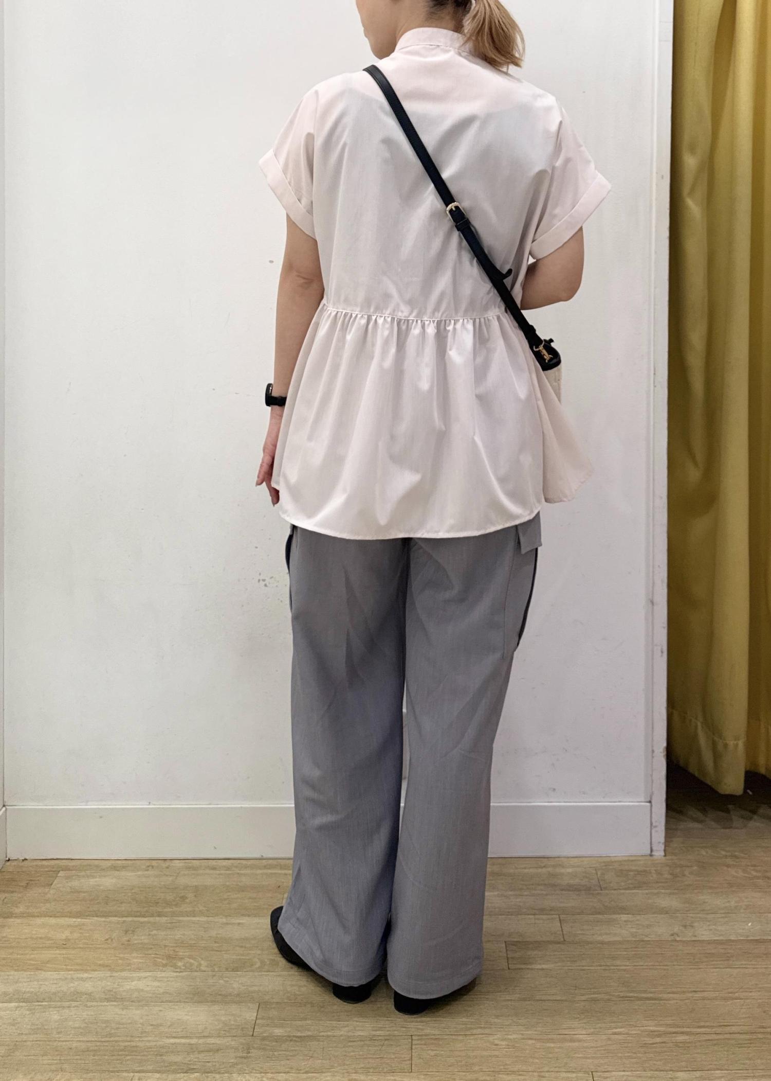 切り替えのあるペプラムシルエットなので、ゆるっとしたシルエットでもメリハリのある印象に。