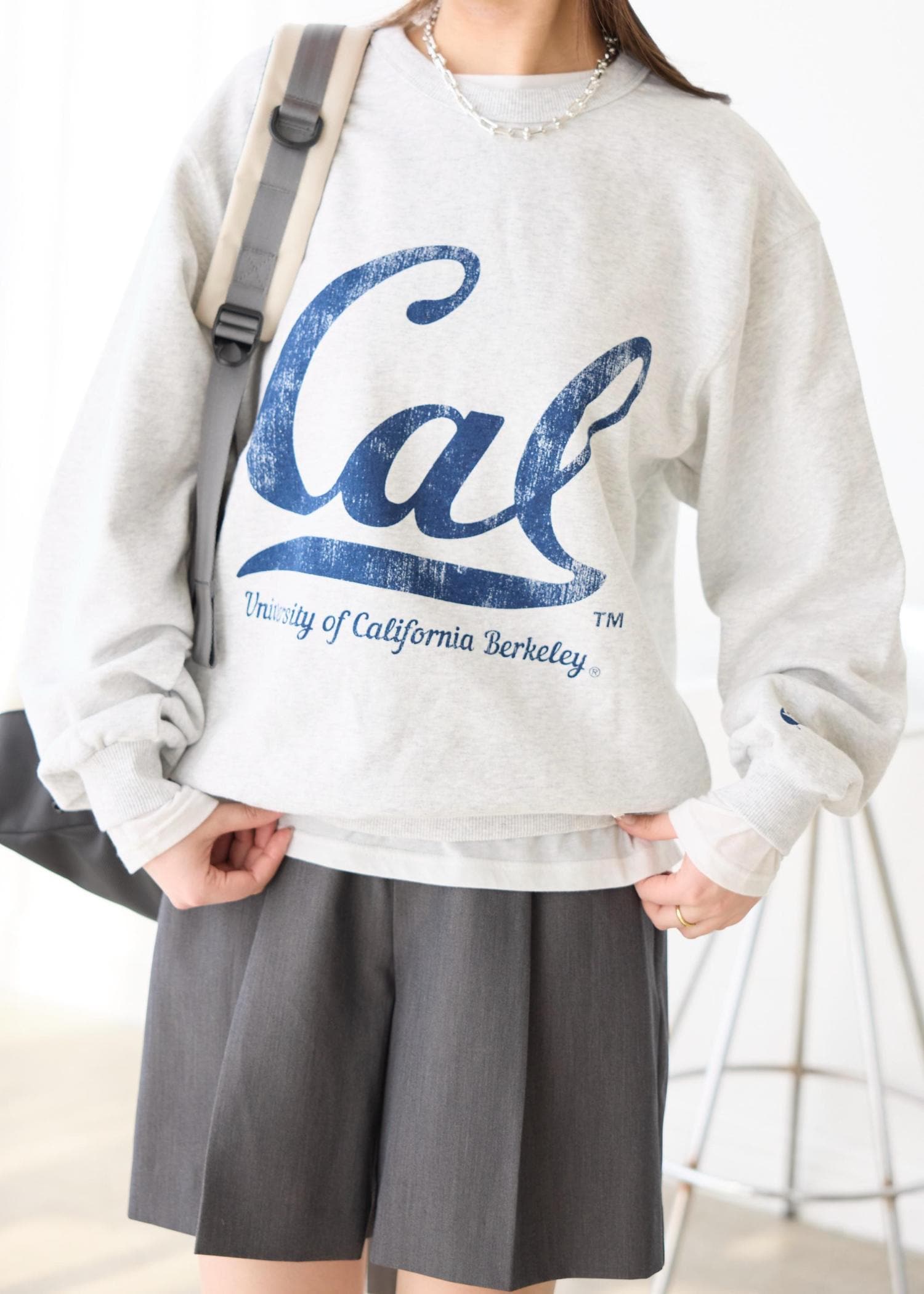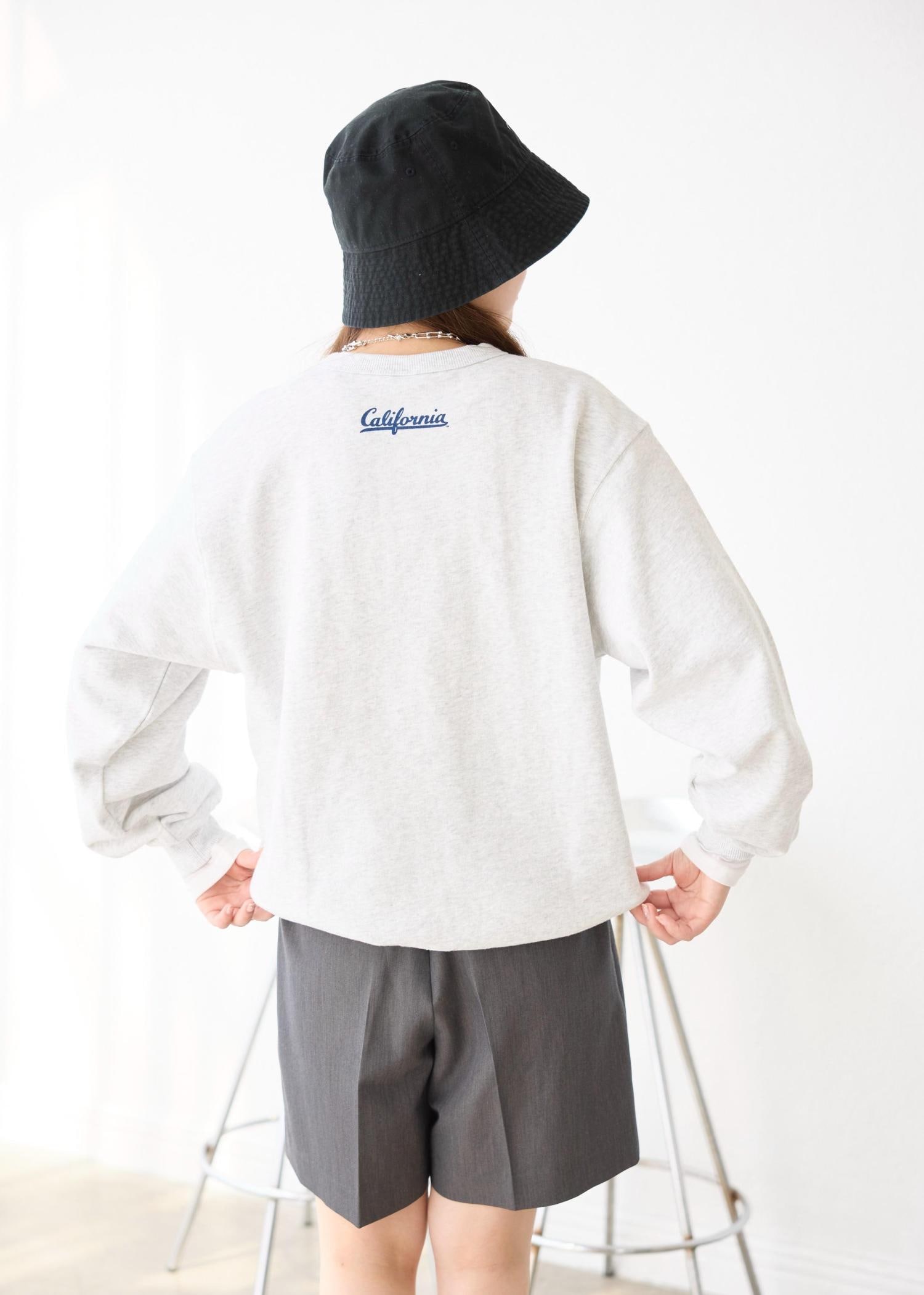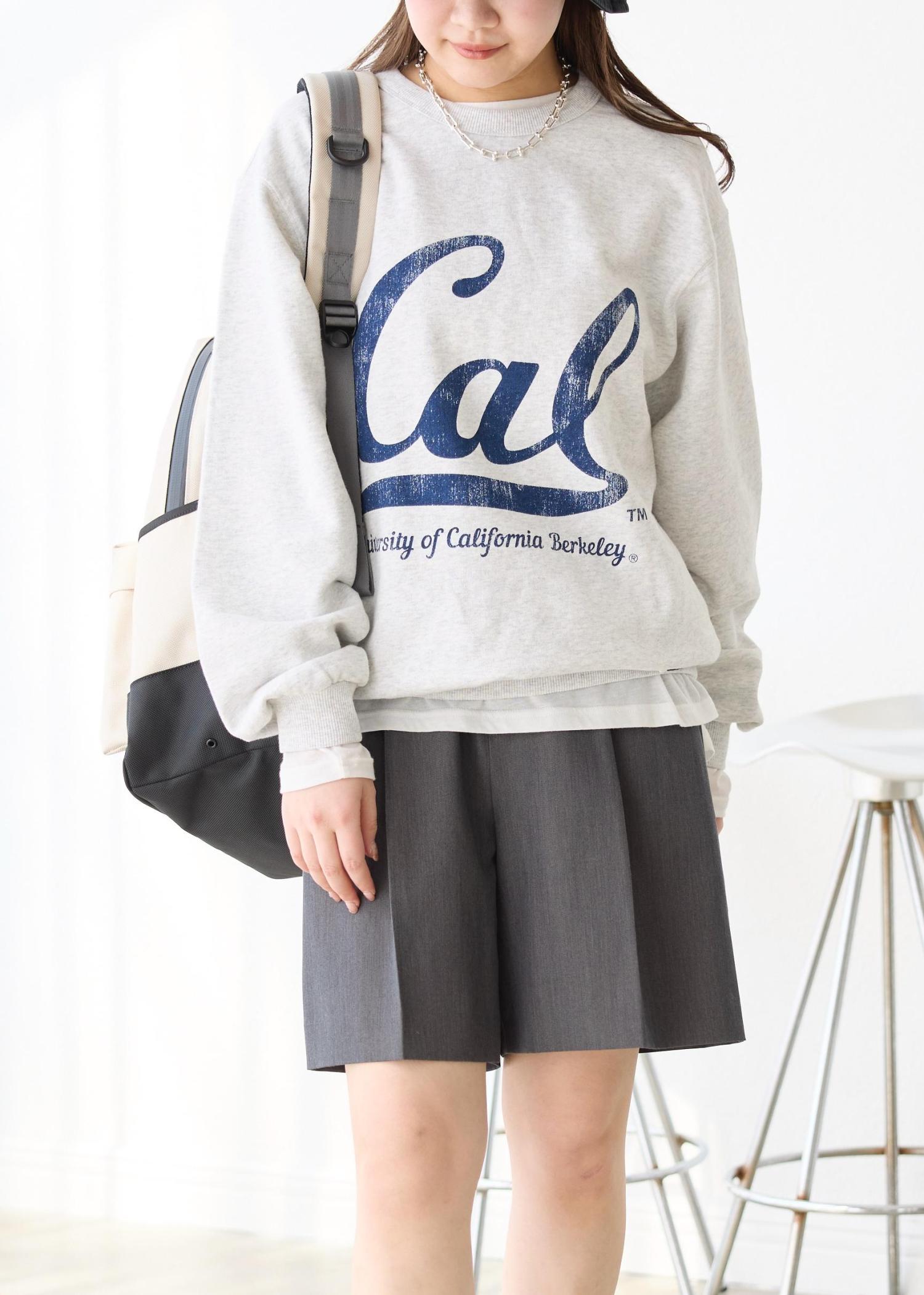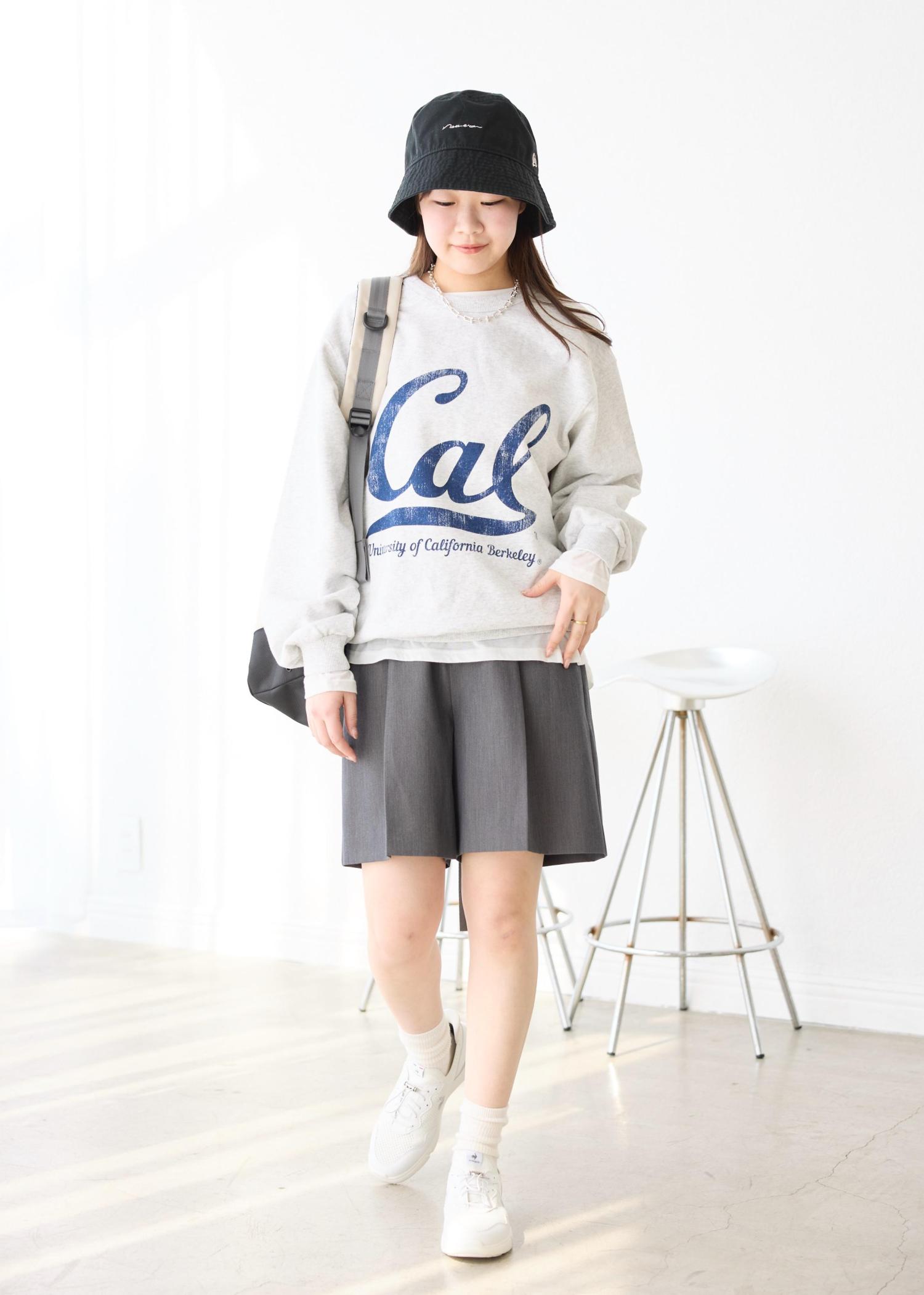 スウェットにはシアーシャツをレイヤードし、今年らしさをプラスしました。