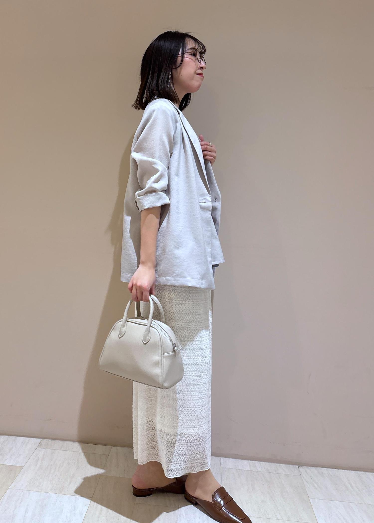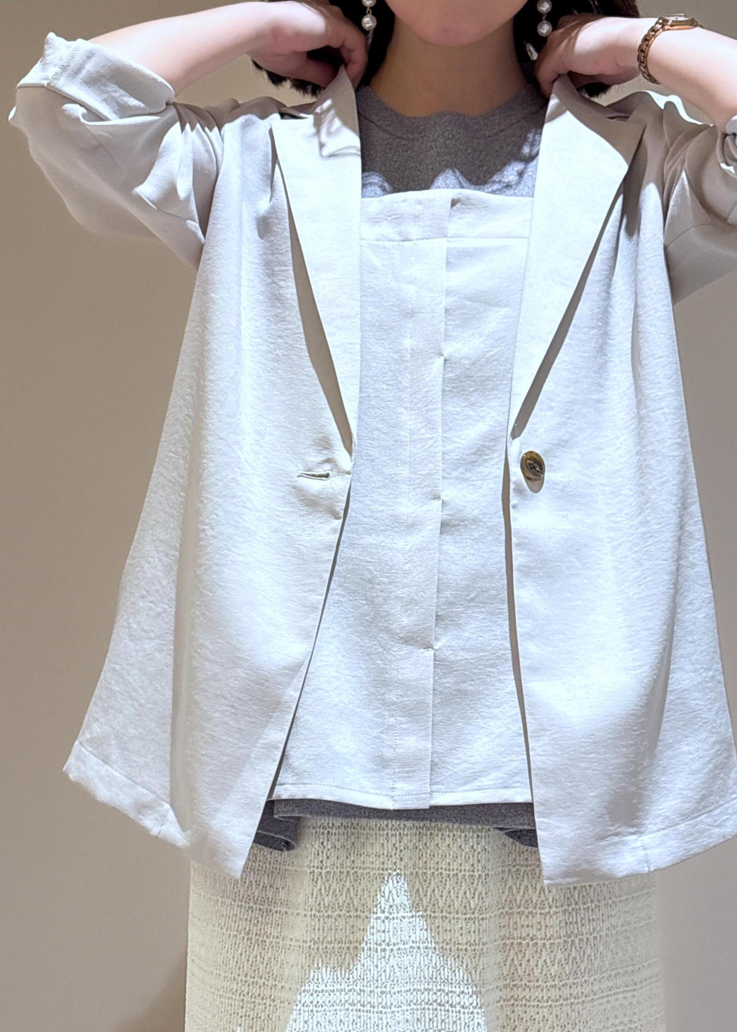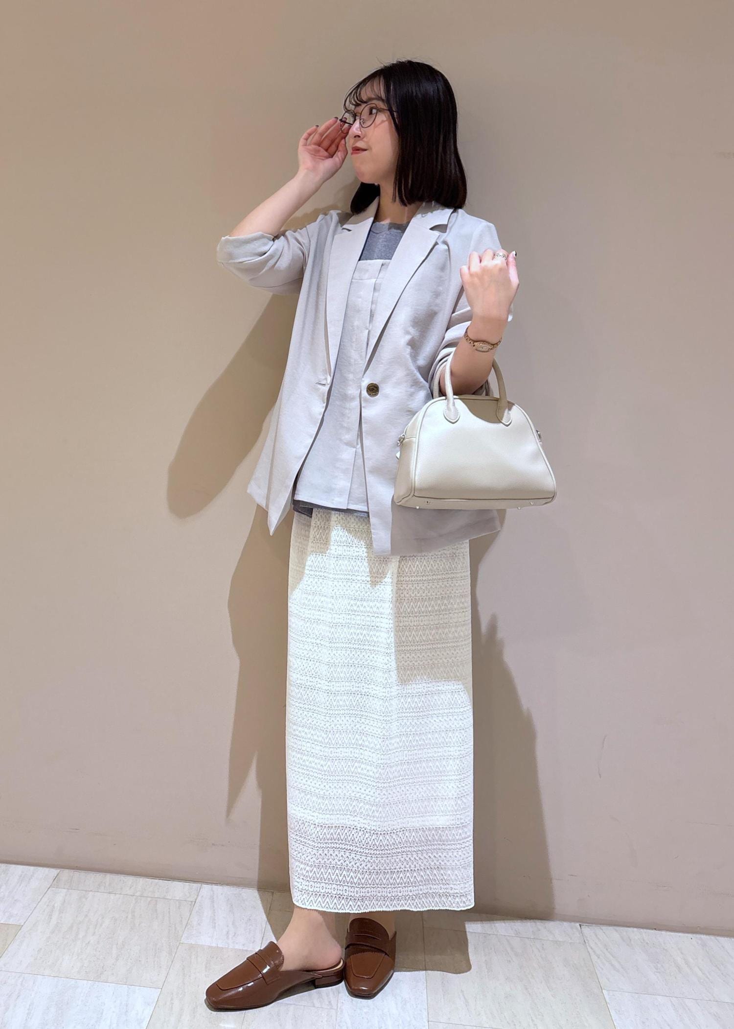 ジャケットにビスチェを合わせたオフィスカジュアルコーデ。