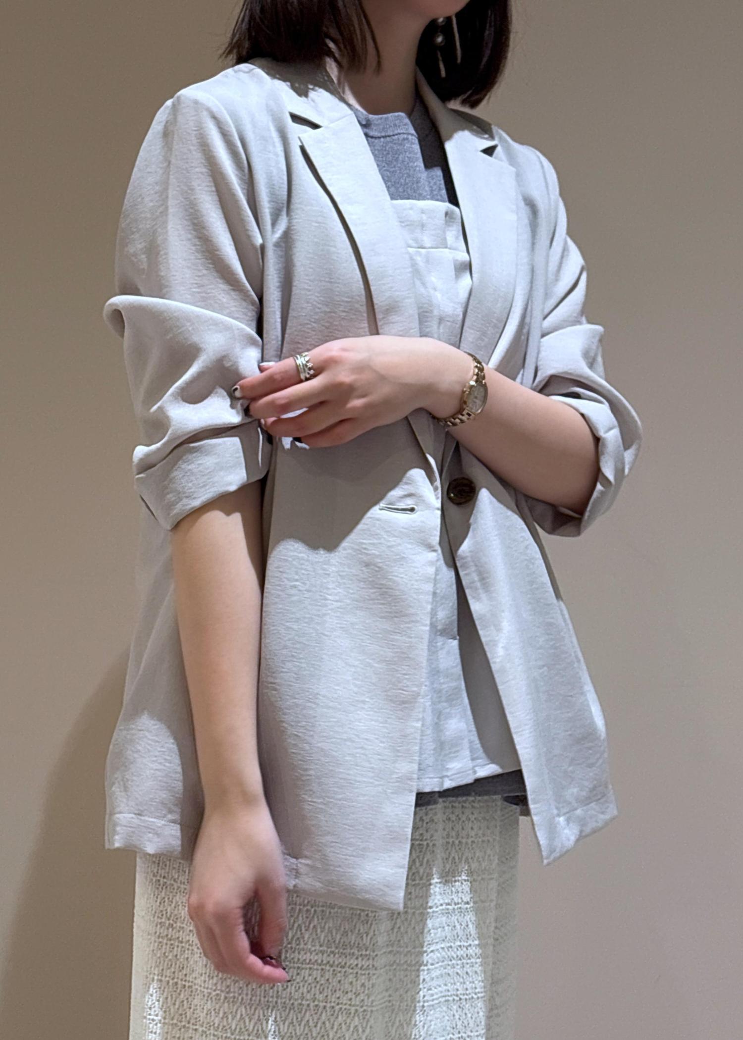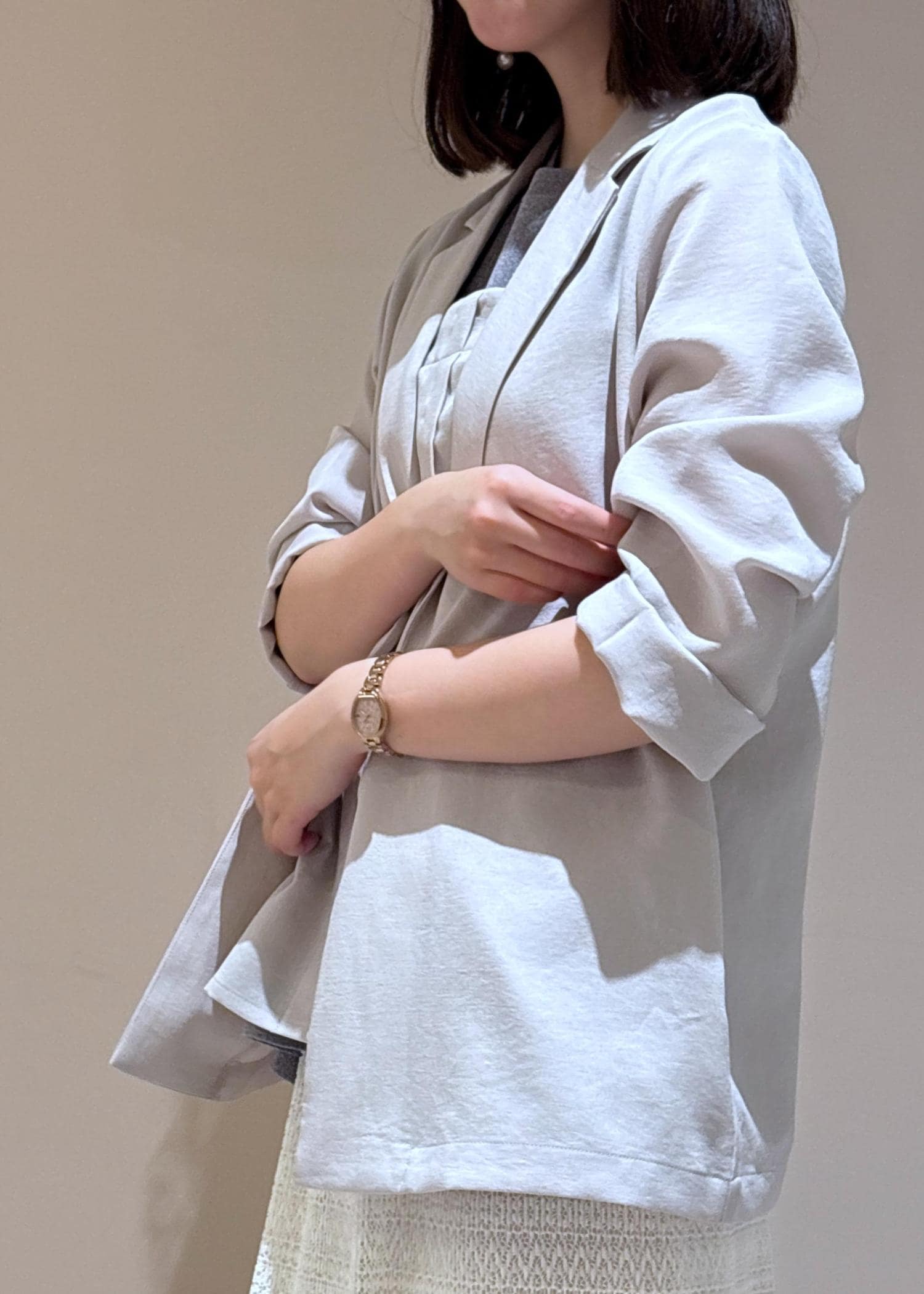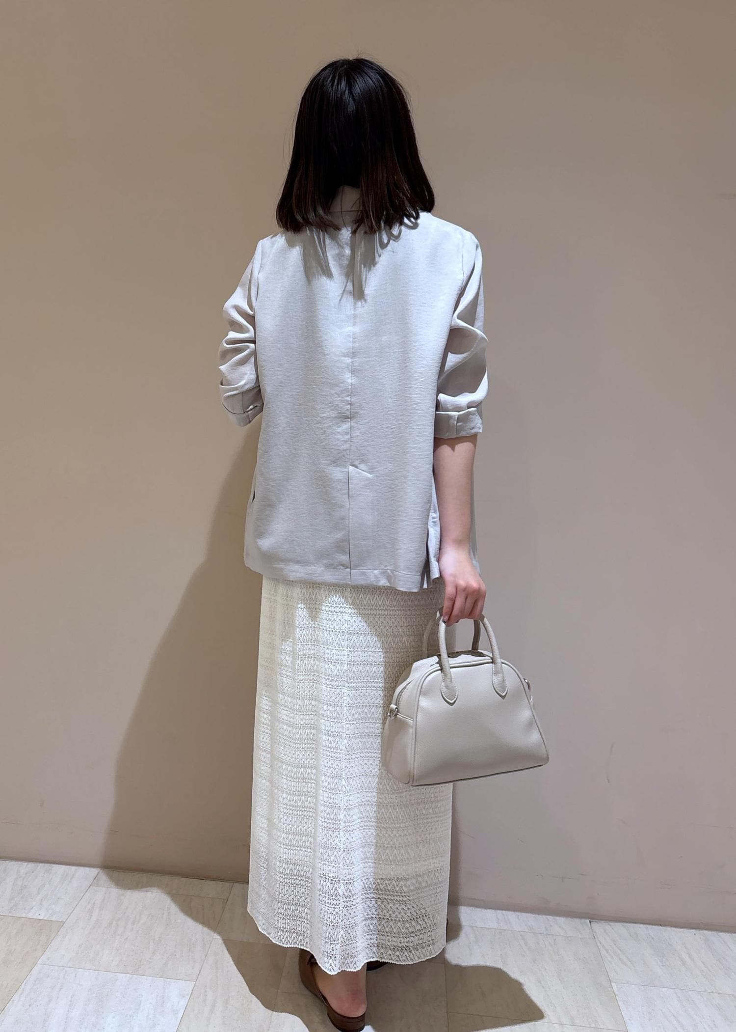 ジャケットにビスチェを合わせたオフィスカジュアルコーデ。