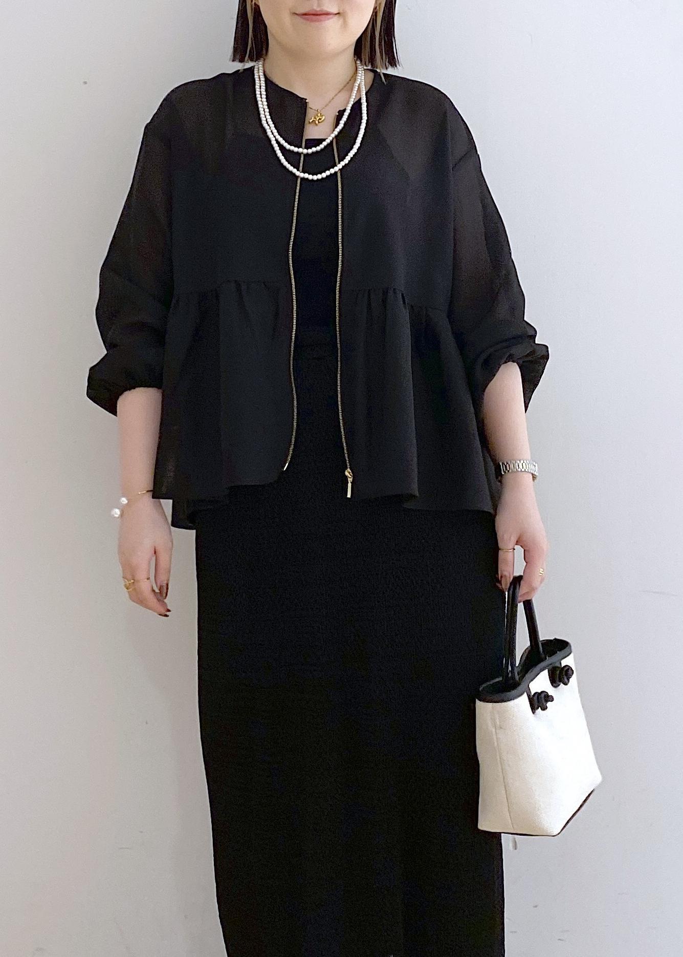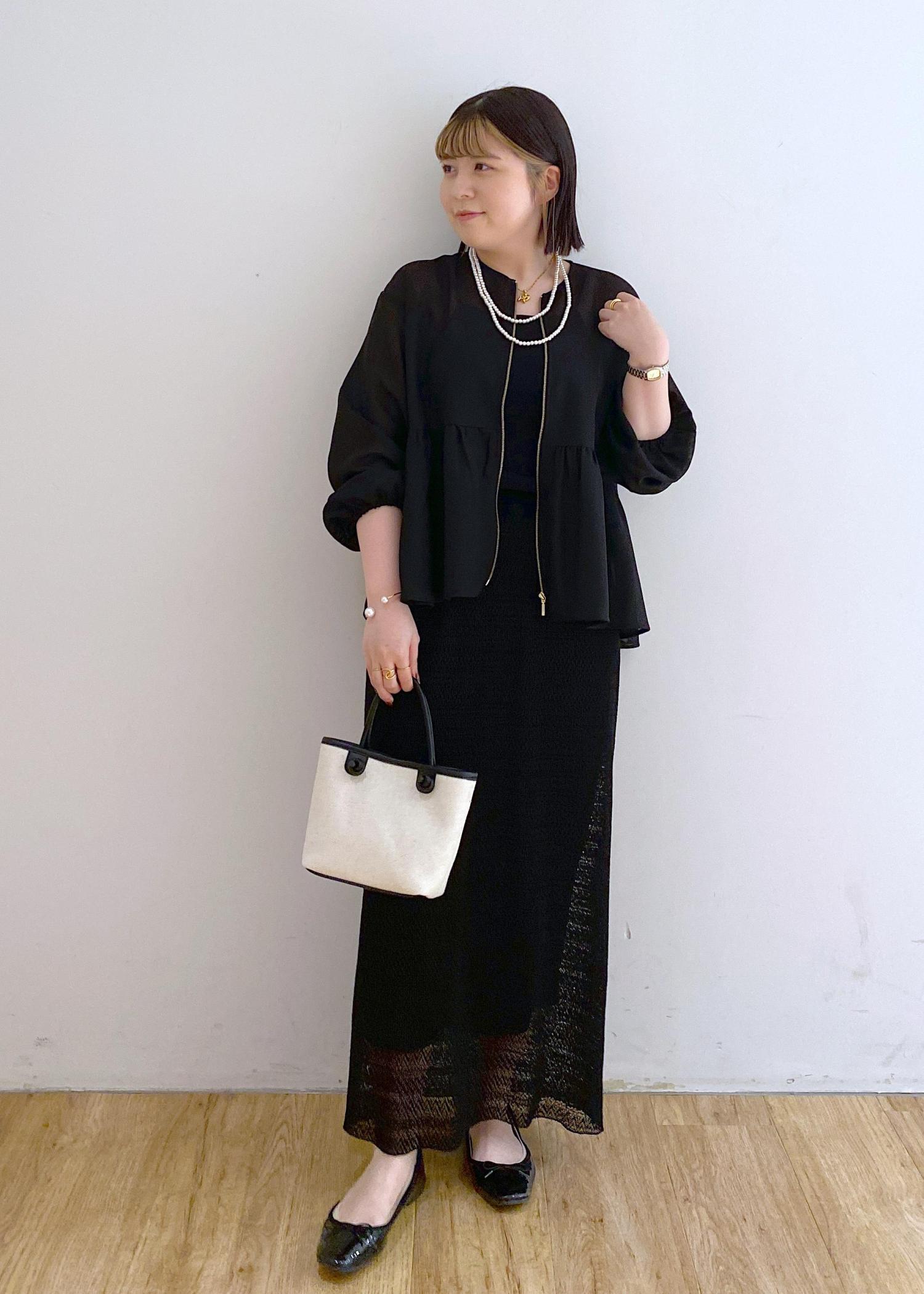 ROPÉ PICNICメッシュペプラムブルゾンブラック / 38¥6,490レビュー156cmでお尻に掛かるくらいの着丈です。