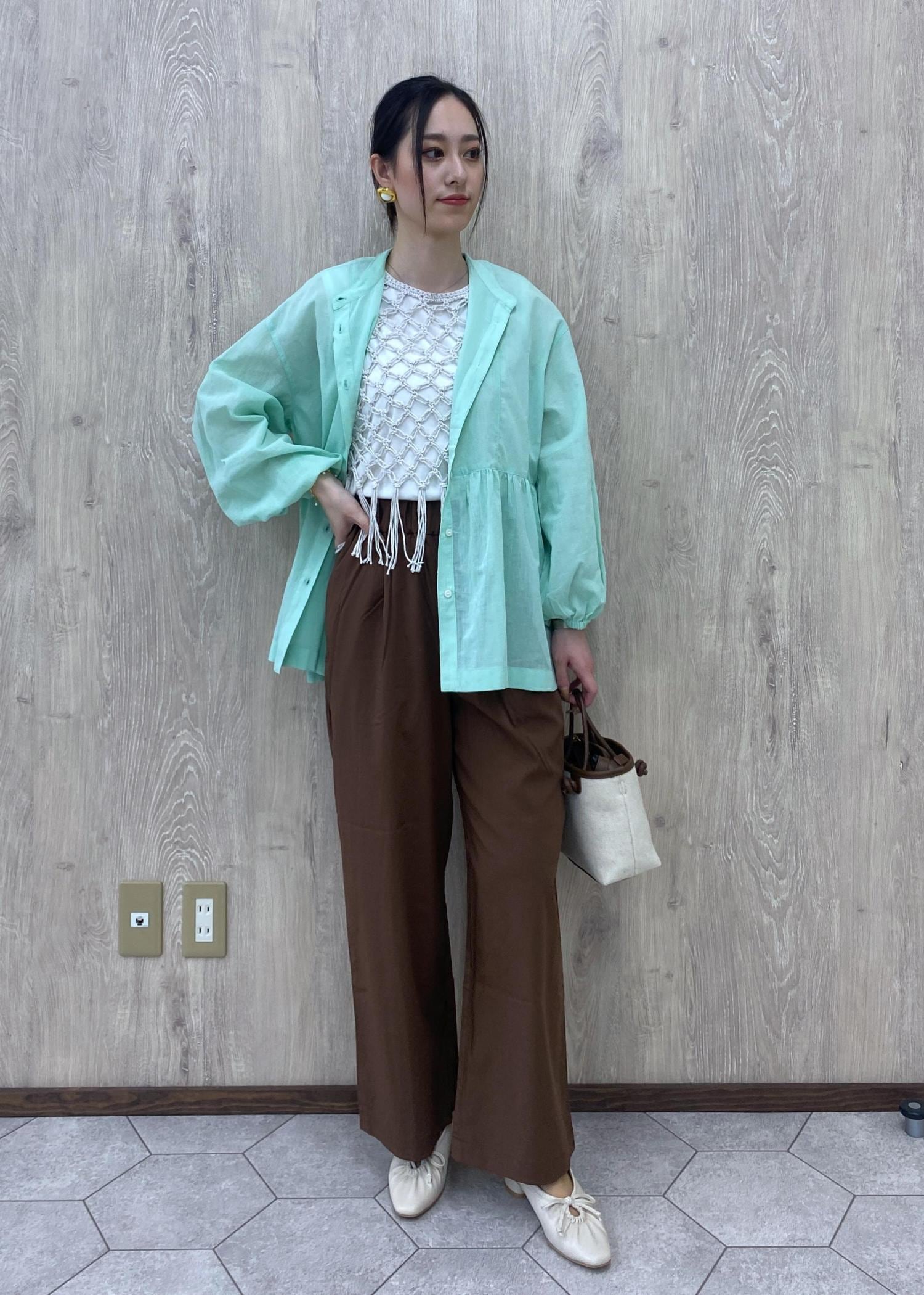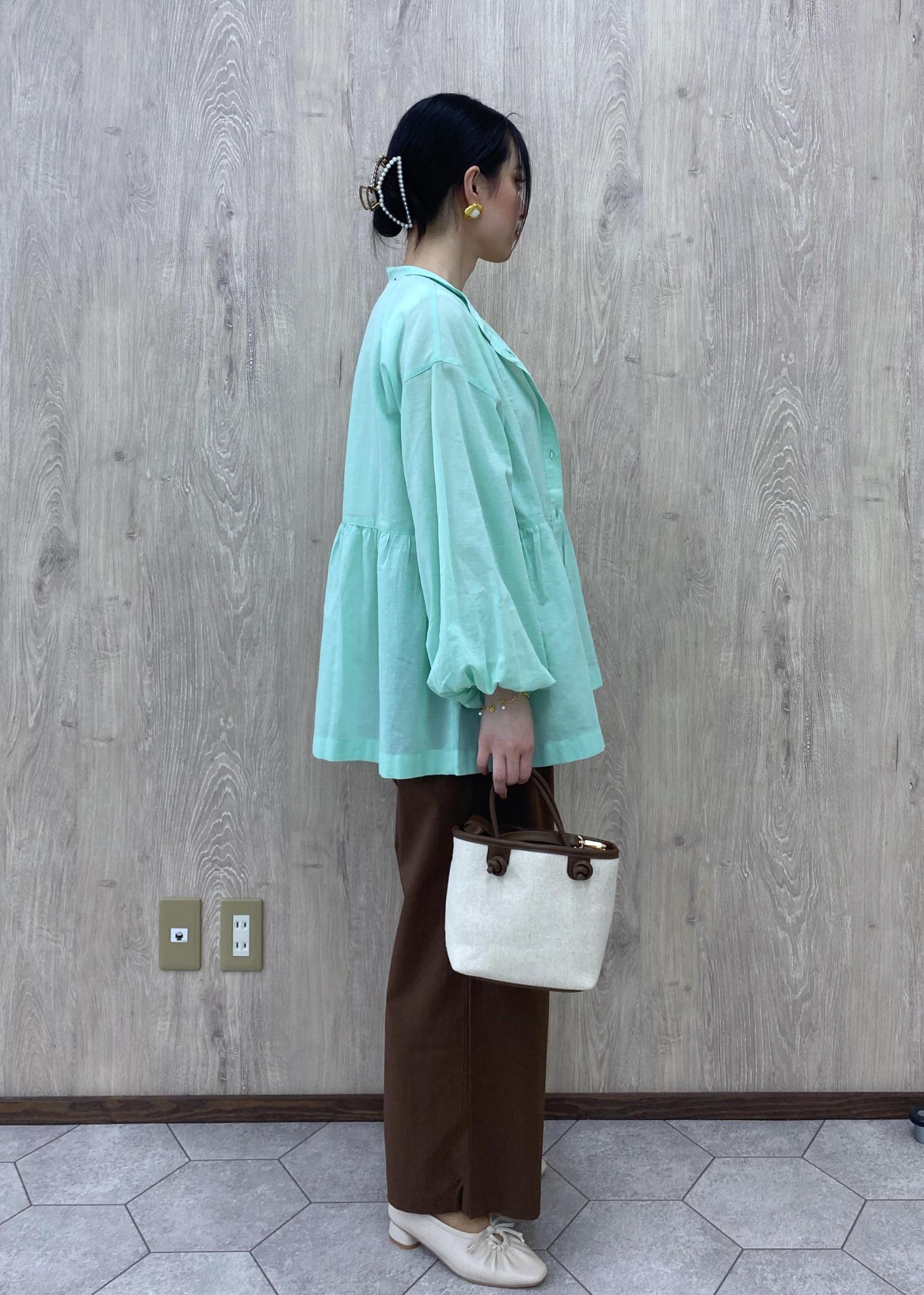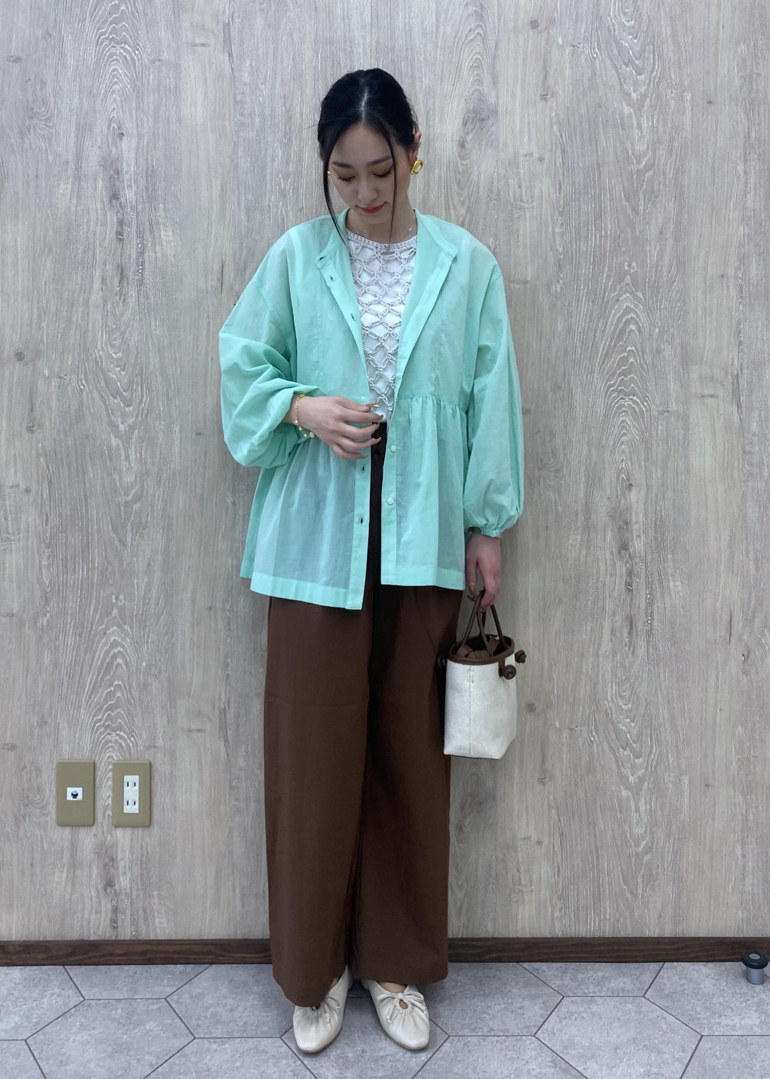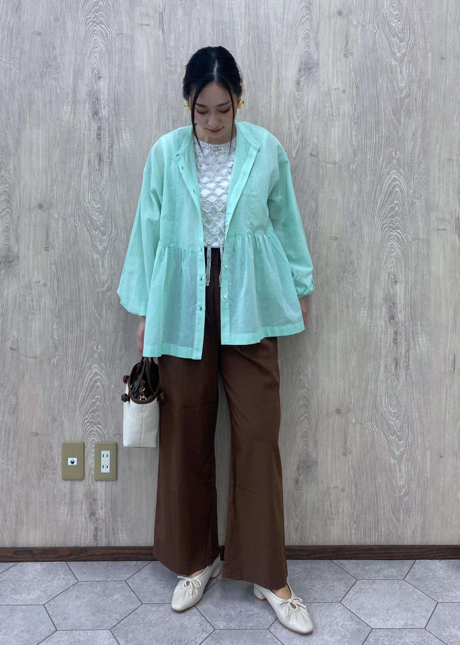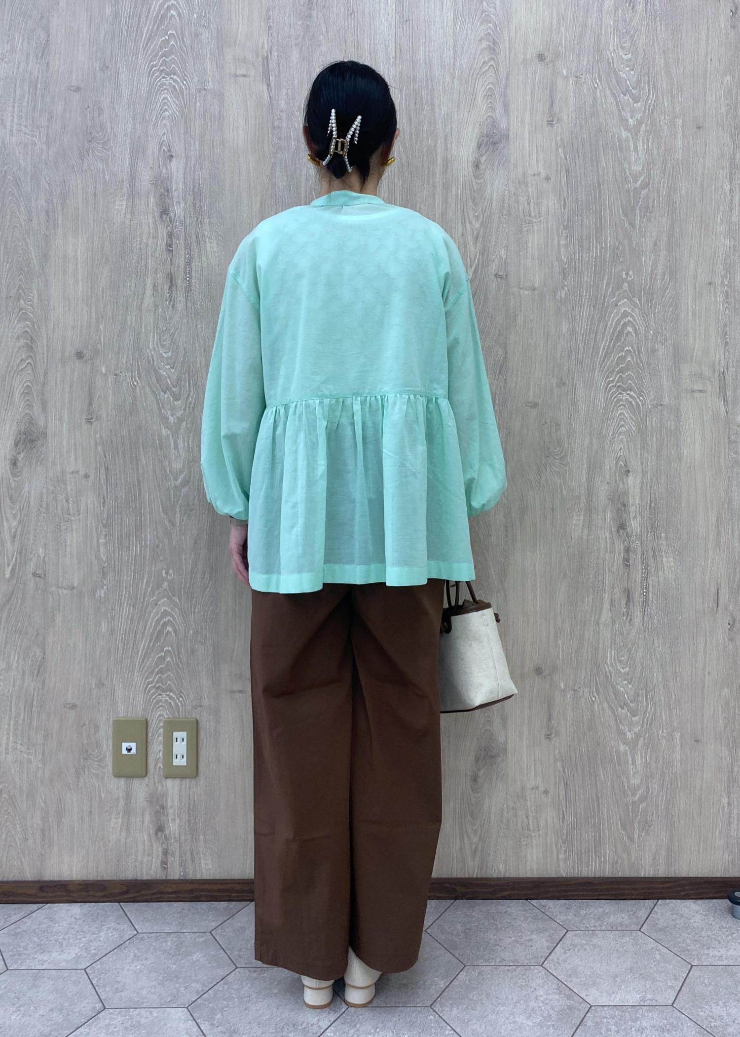 アウトレットROPÉ PICNIC【接触冷感・通気性】お着軽シャツシリーズ/綿ボイルペプラムシャツライトグリーン / 36¥2,396レビュー肌離れが良くサラッとした生地感です。