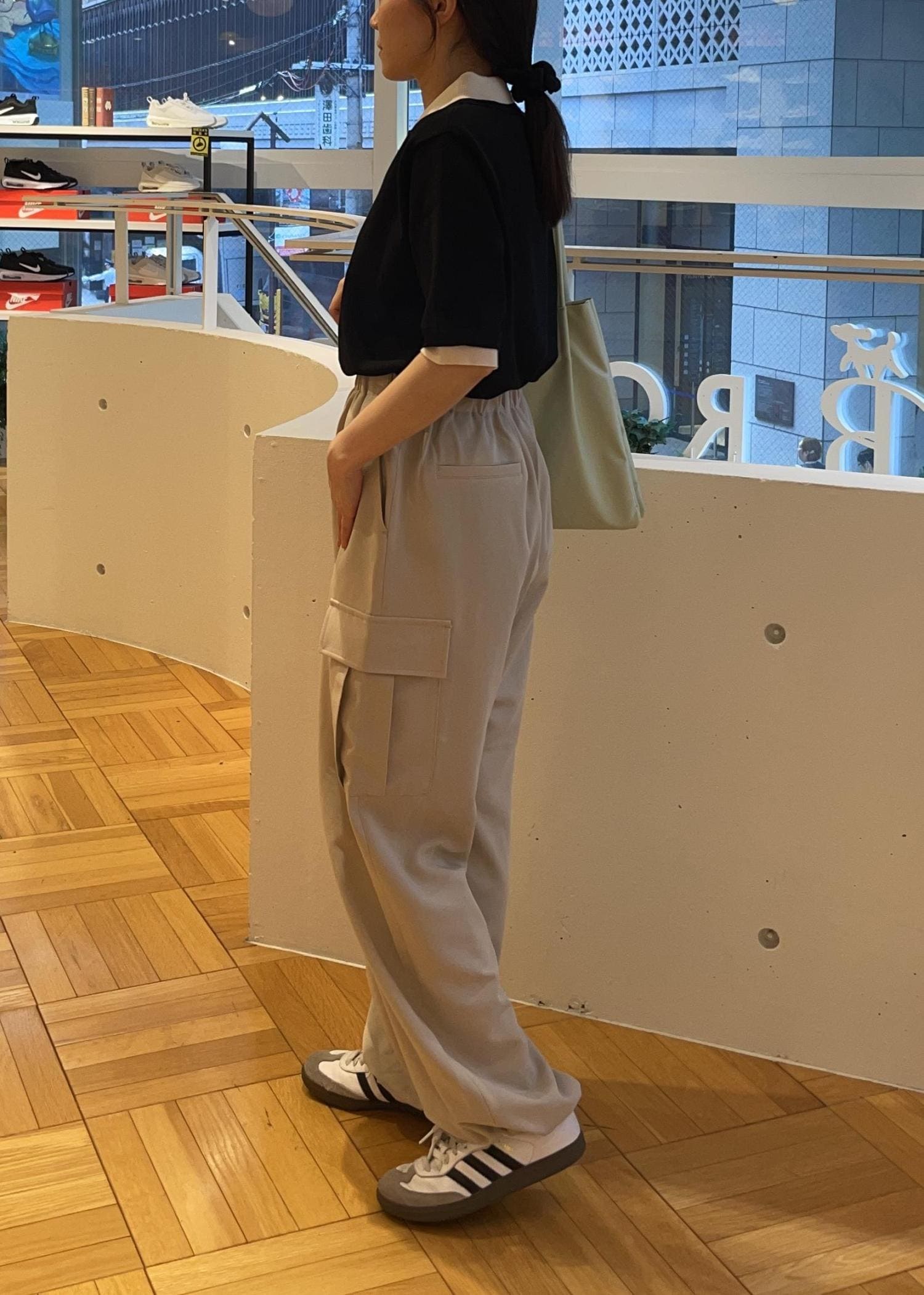ウエストはゴムで、裾も調節できるので大きめサイズを選んでも大丈夫です。 -