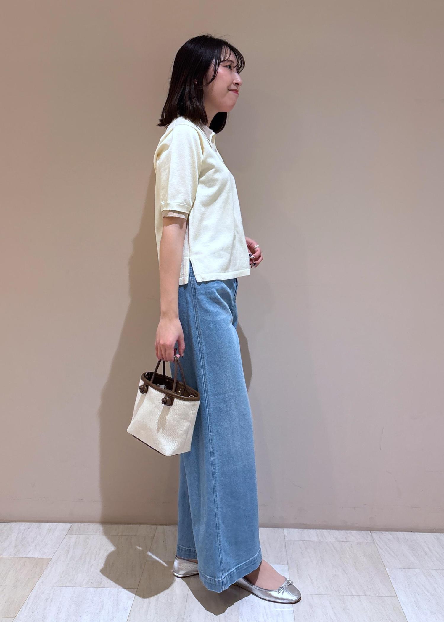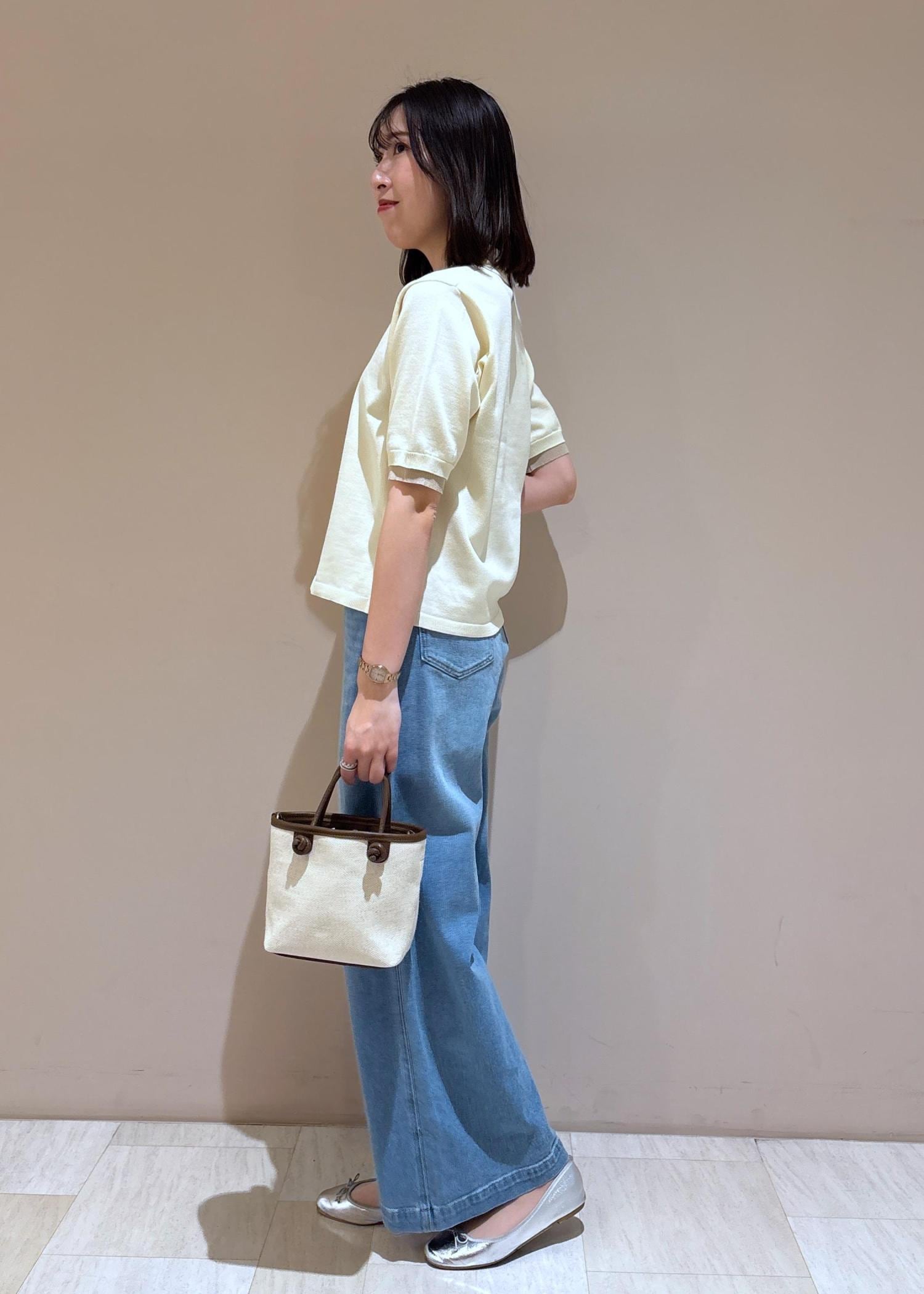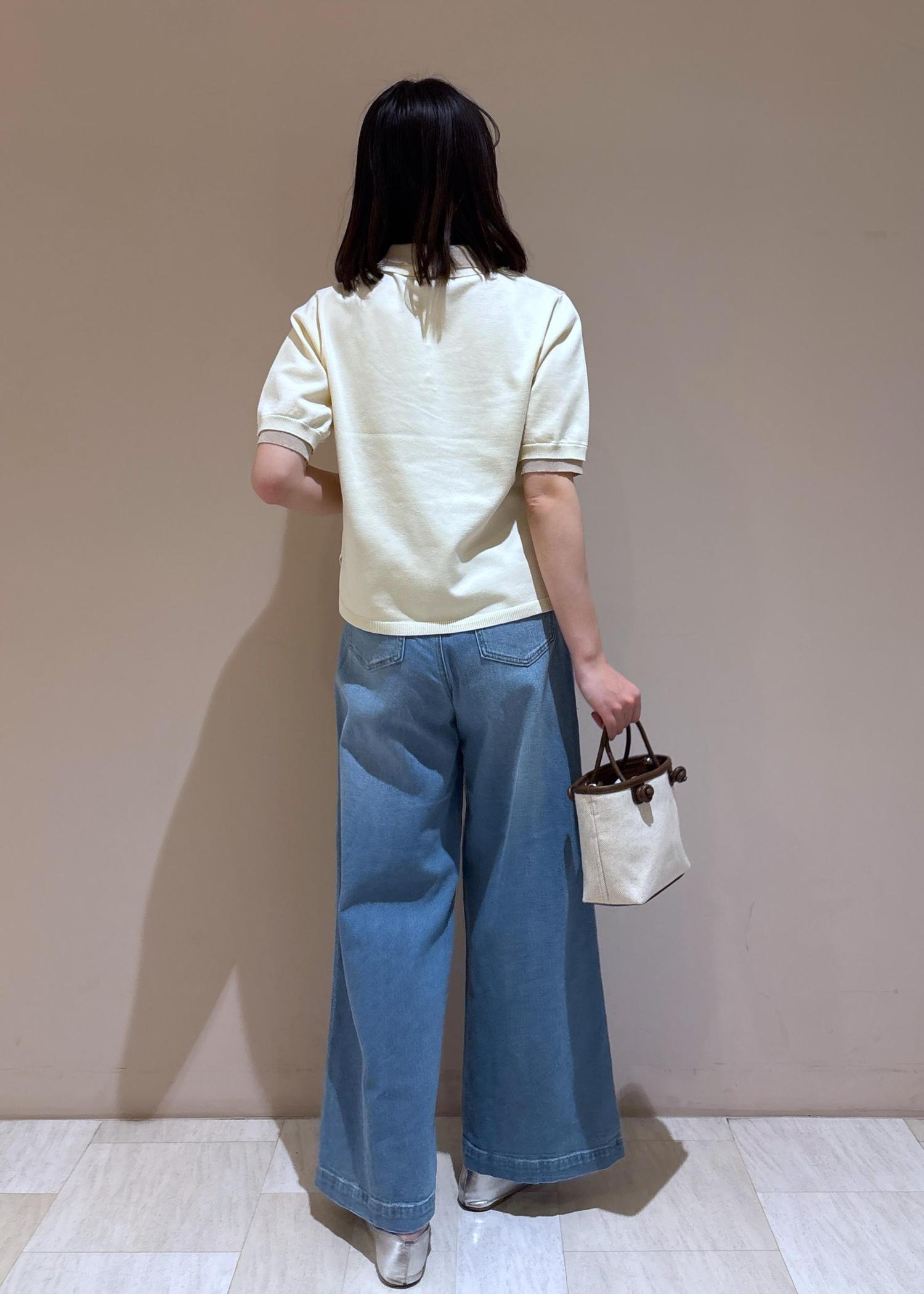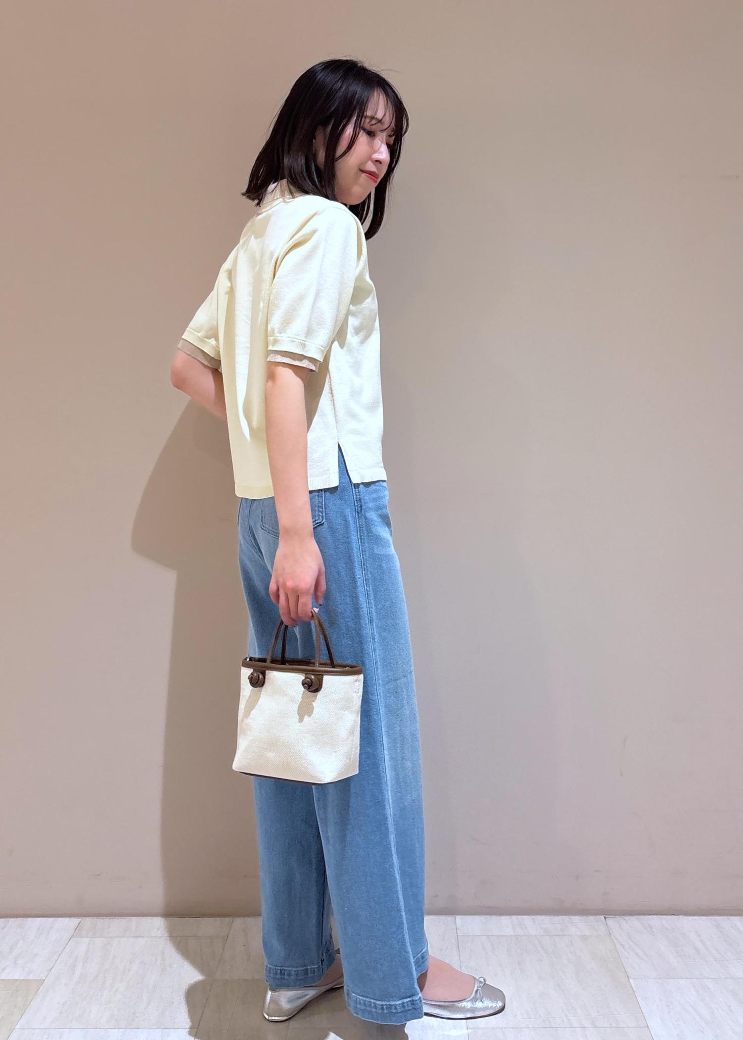 1枚着でも様になるレイヤード風のトップスにデニムワイドパンツを合わせてみました。