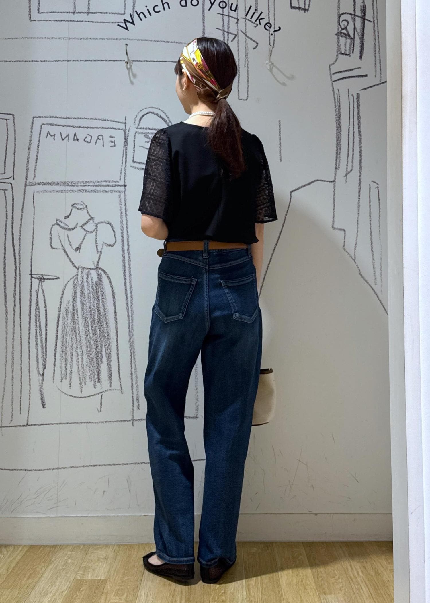 足のラインを拾わず美脚に見せてくれます。ゆるっとカッコいい雰囲気なのであえてトップスは甘さのあるアイテムで合わせてもバランスがいいです。柔らかい生地で動き易さも申し分なしです♪ウエストの補正効果があるので自然とヒップ周りも綺麗に見えます!