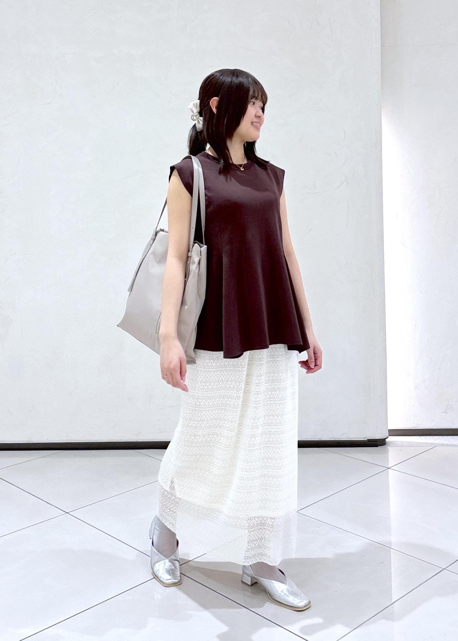 小物でシルバーを取り入れて、少し落ち着いたイメージにしました!