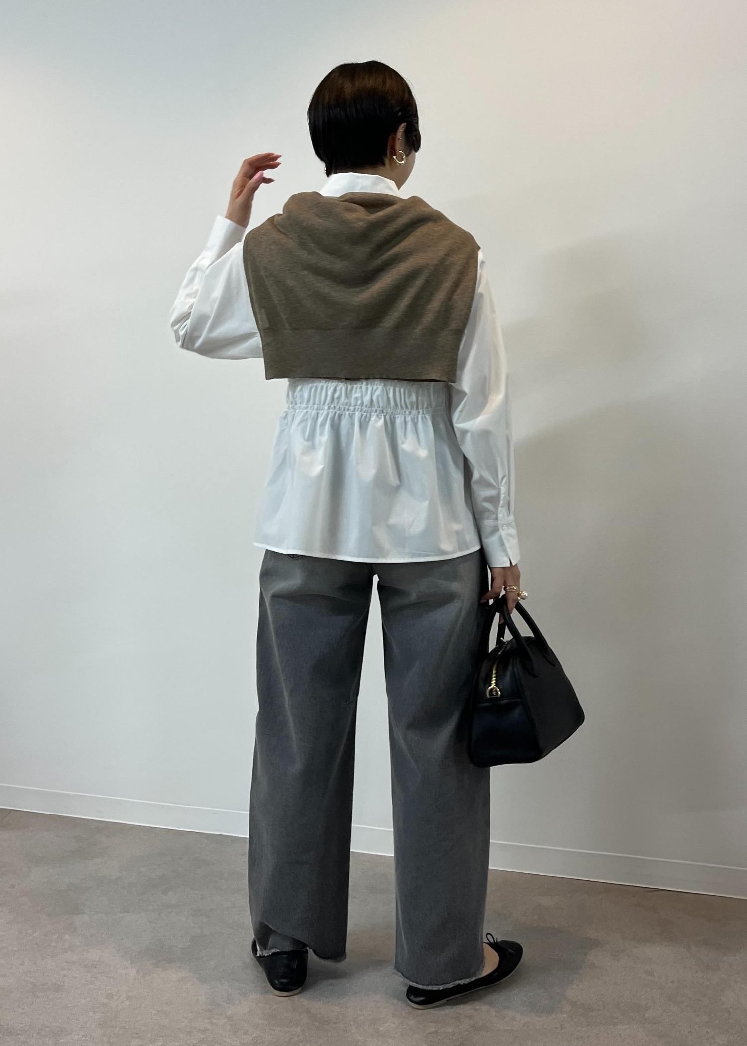 袖口と裾がリブ素材になっていて、袖は裾を捲っても長時間落ちる事が無いのでストレスフリーでお召し頂けます。