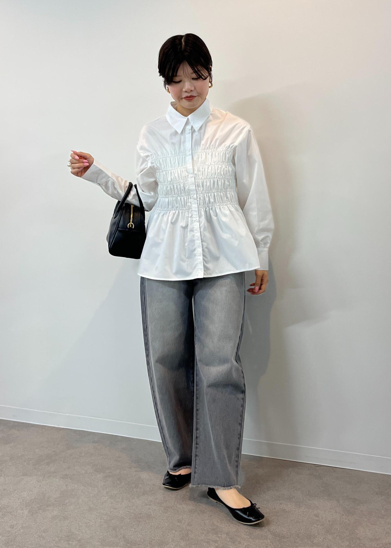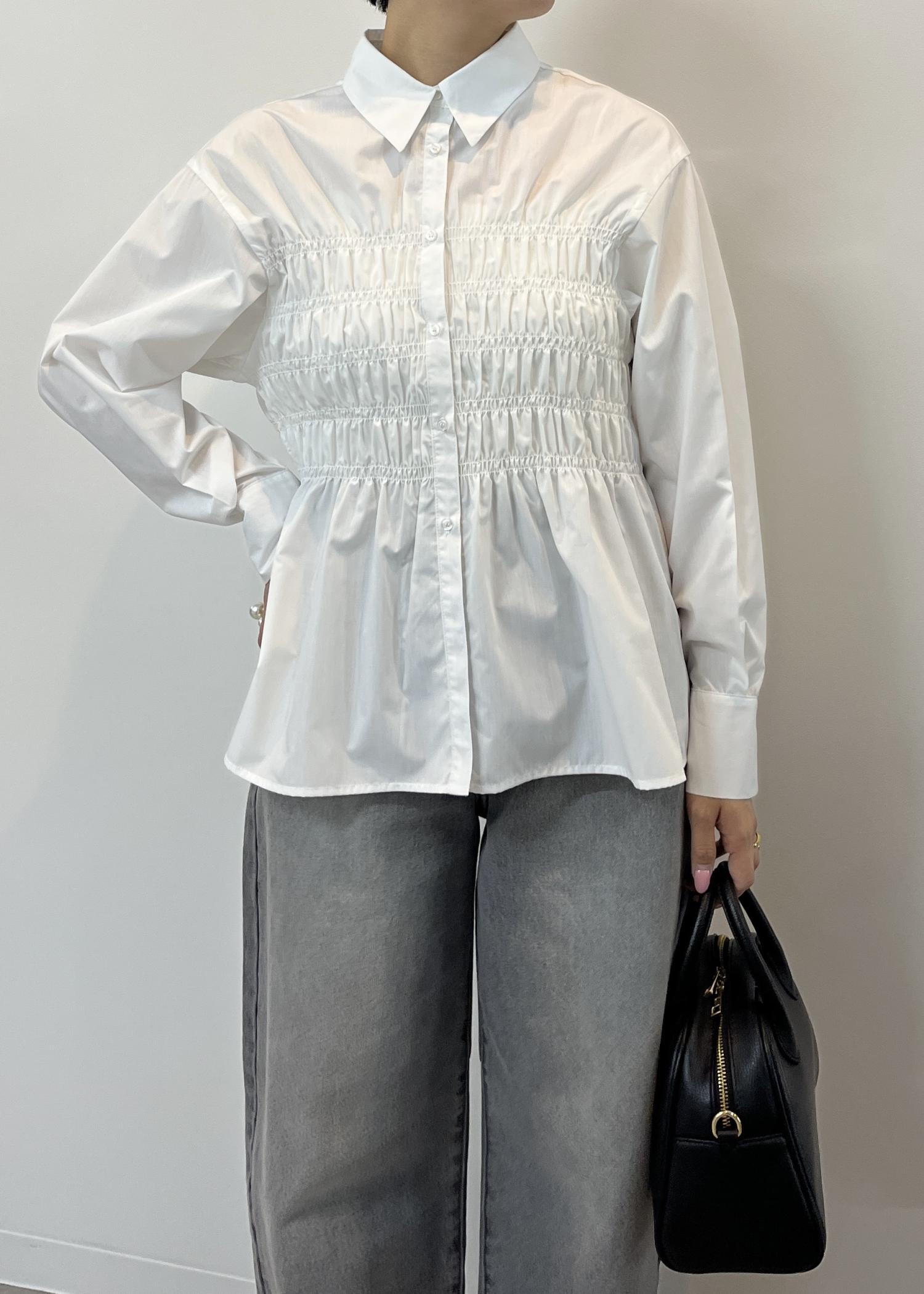 ROPÉ PICNIC【WEB限定】【emur/エミュール】シャーリングシャツオフホワイト / 38¥6,996レビュー体のラインを拾わないややゆとりのあるシルエット。