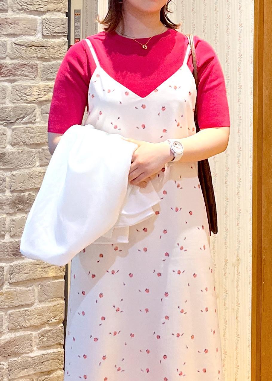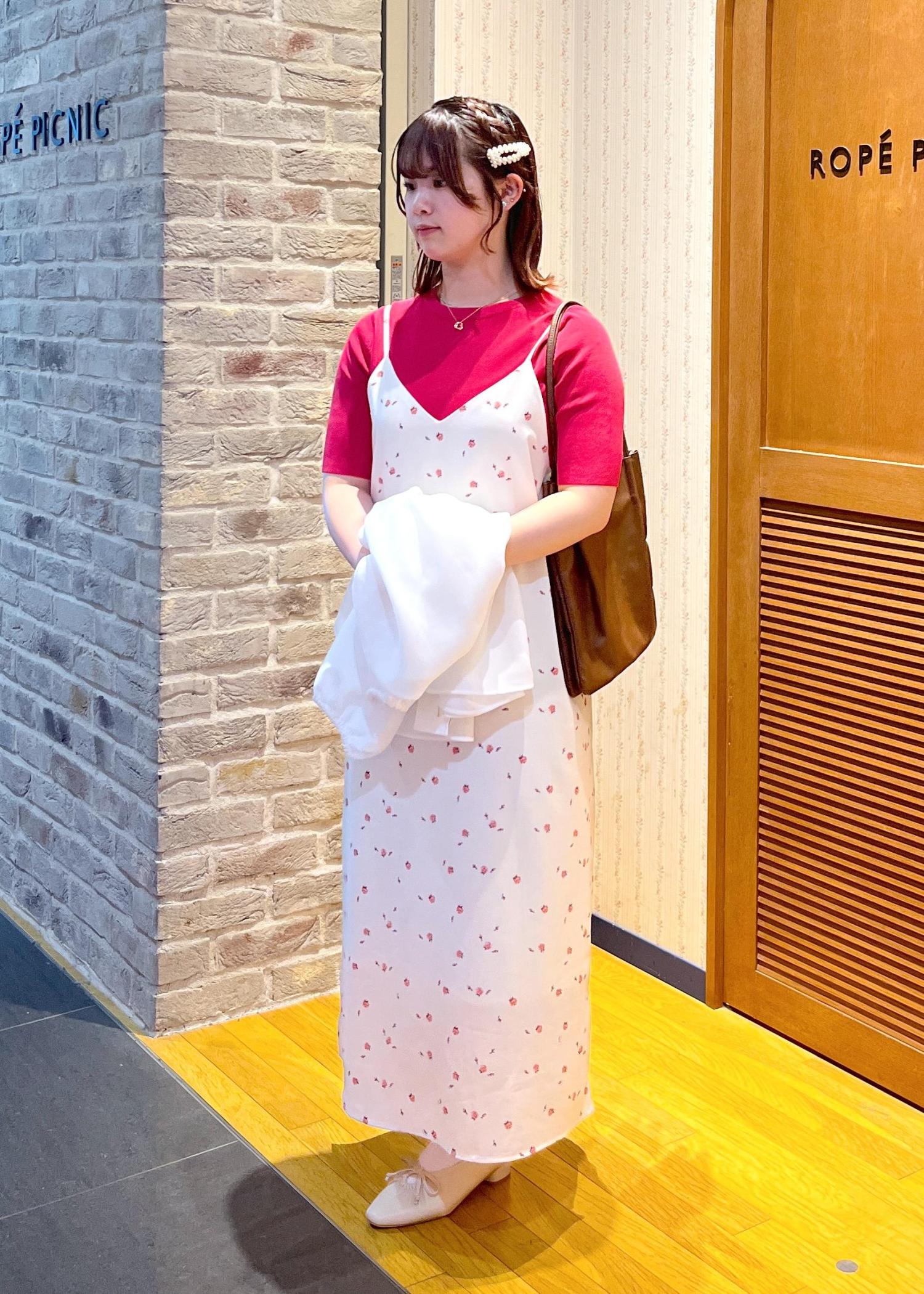広がりすぎないシルエットなので体のラインをカバーしてくれるキャミワンピです!
