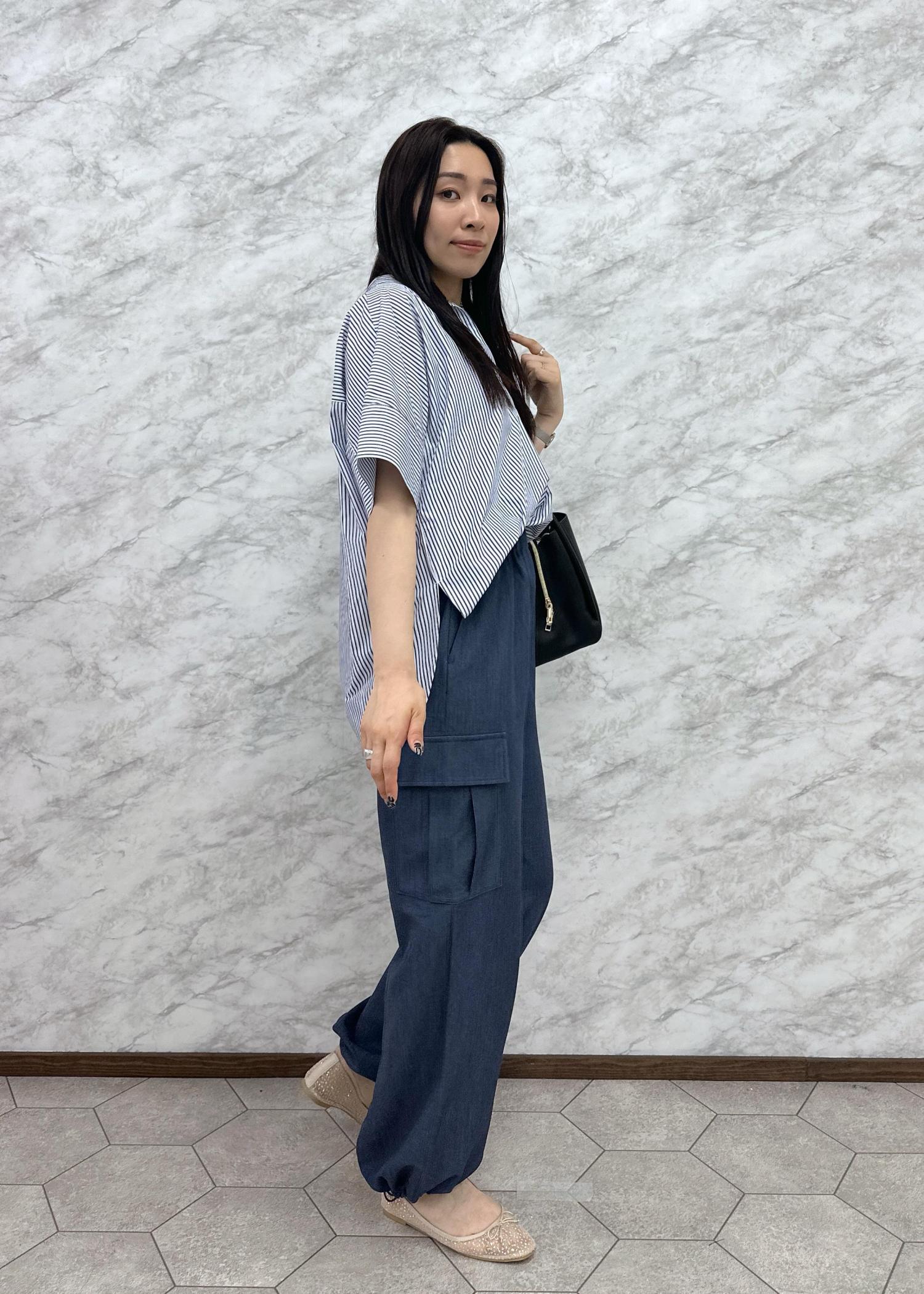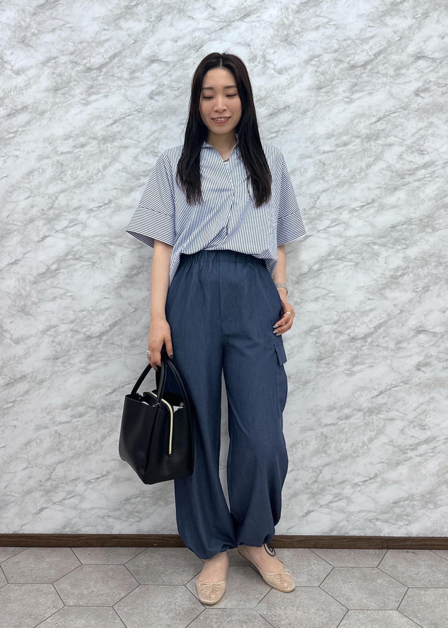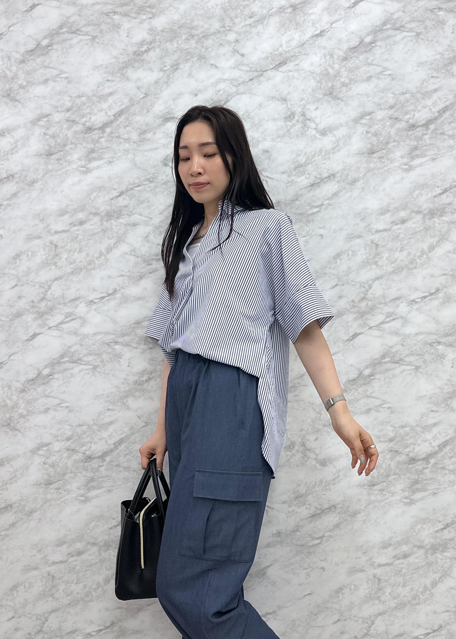 ゆったりとしたリラックス感のあるスキッパーシャツとカーゴパンツを合わせました。