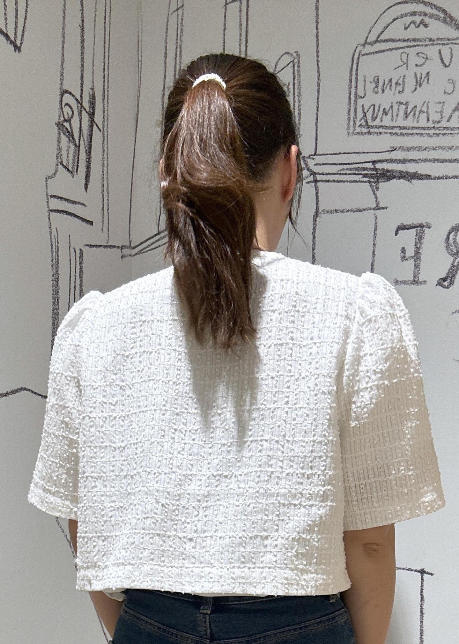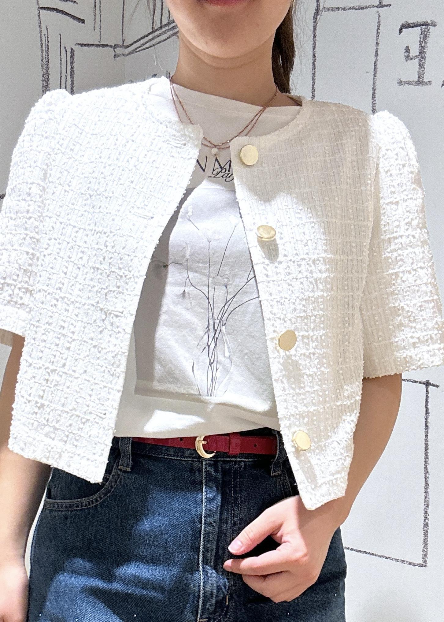 きれいめスタイルにも合わせやすいツイード素材です。 -
