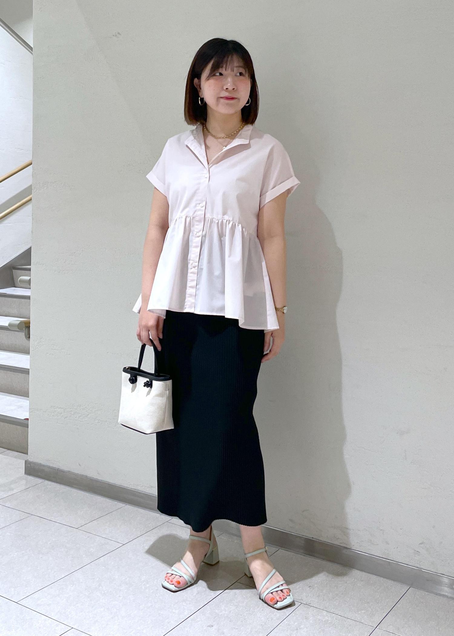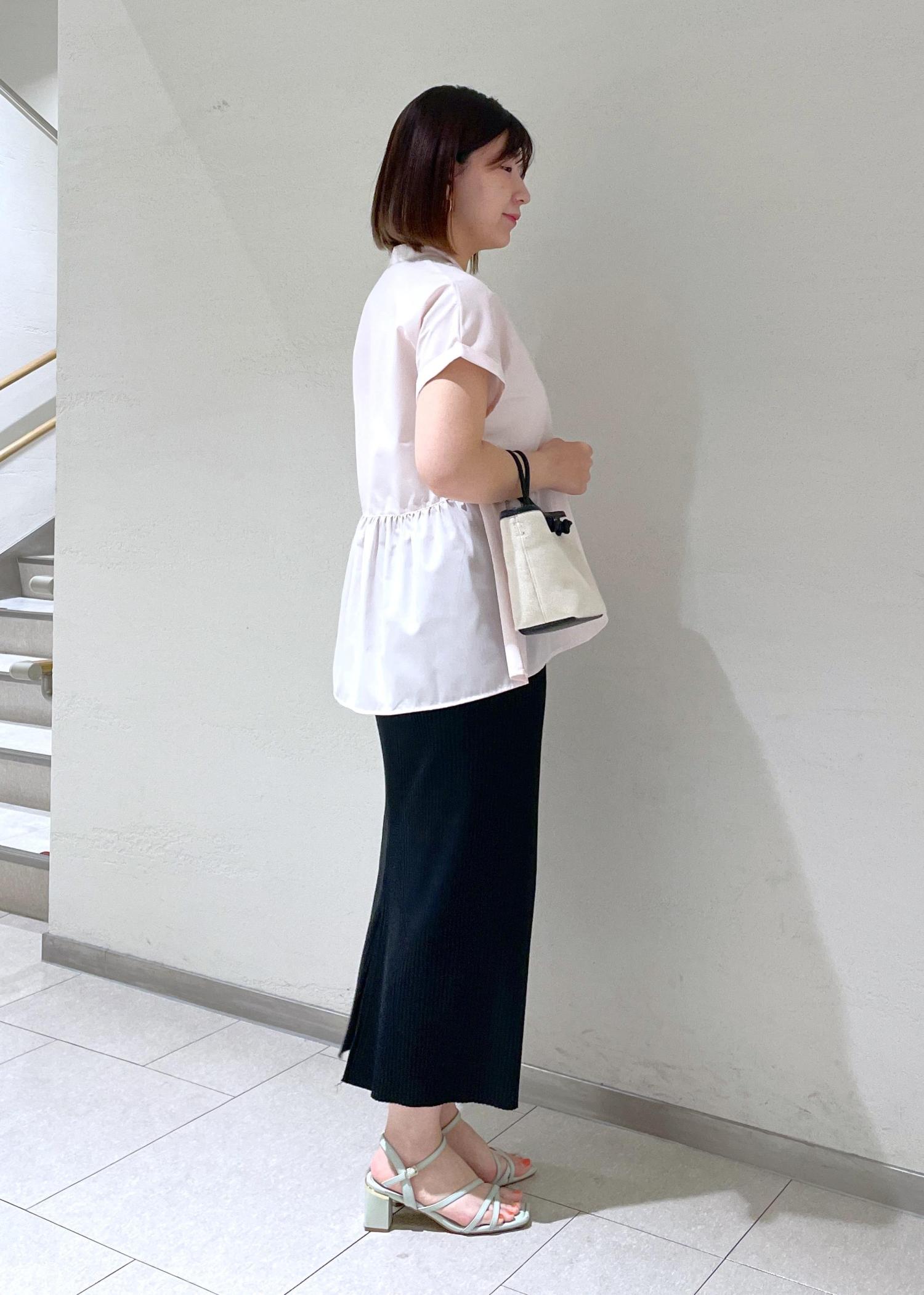 肌が明るめなので淡色だと顔周りがぼやっと見えてしまうので、Vネックにしてネックレスをつけたり、今回はおろしてますがアップヘアにしてもスッキリさせてあげるとバランスがとれます。