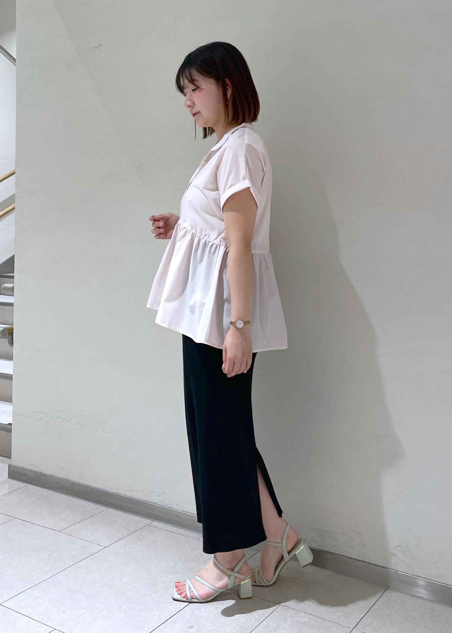 トップスは柔らかいピンクカラーにしてカチッとしすぎない印象にしました!
