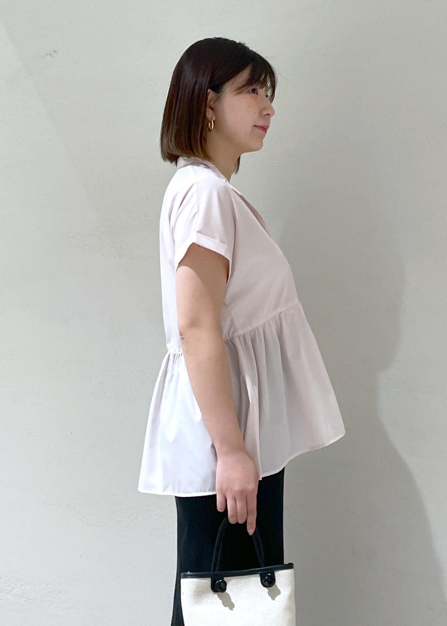 ROPÉ PICNIC【UV対応・防シワ】フレンチペプラムシャツピンク / 38¥3,993レビューハリのある生地感です。