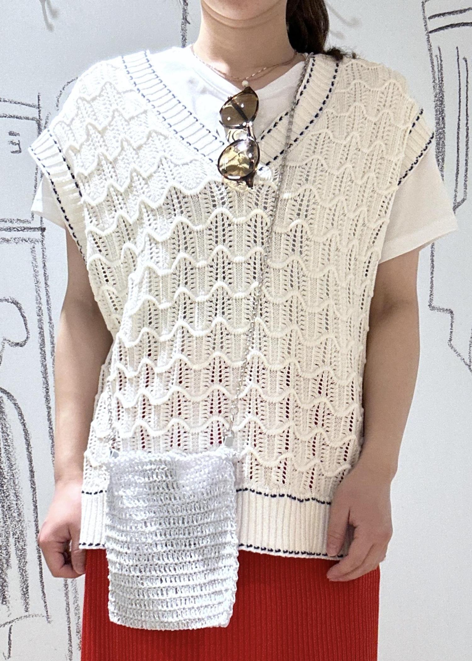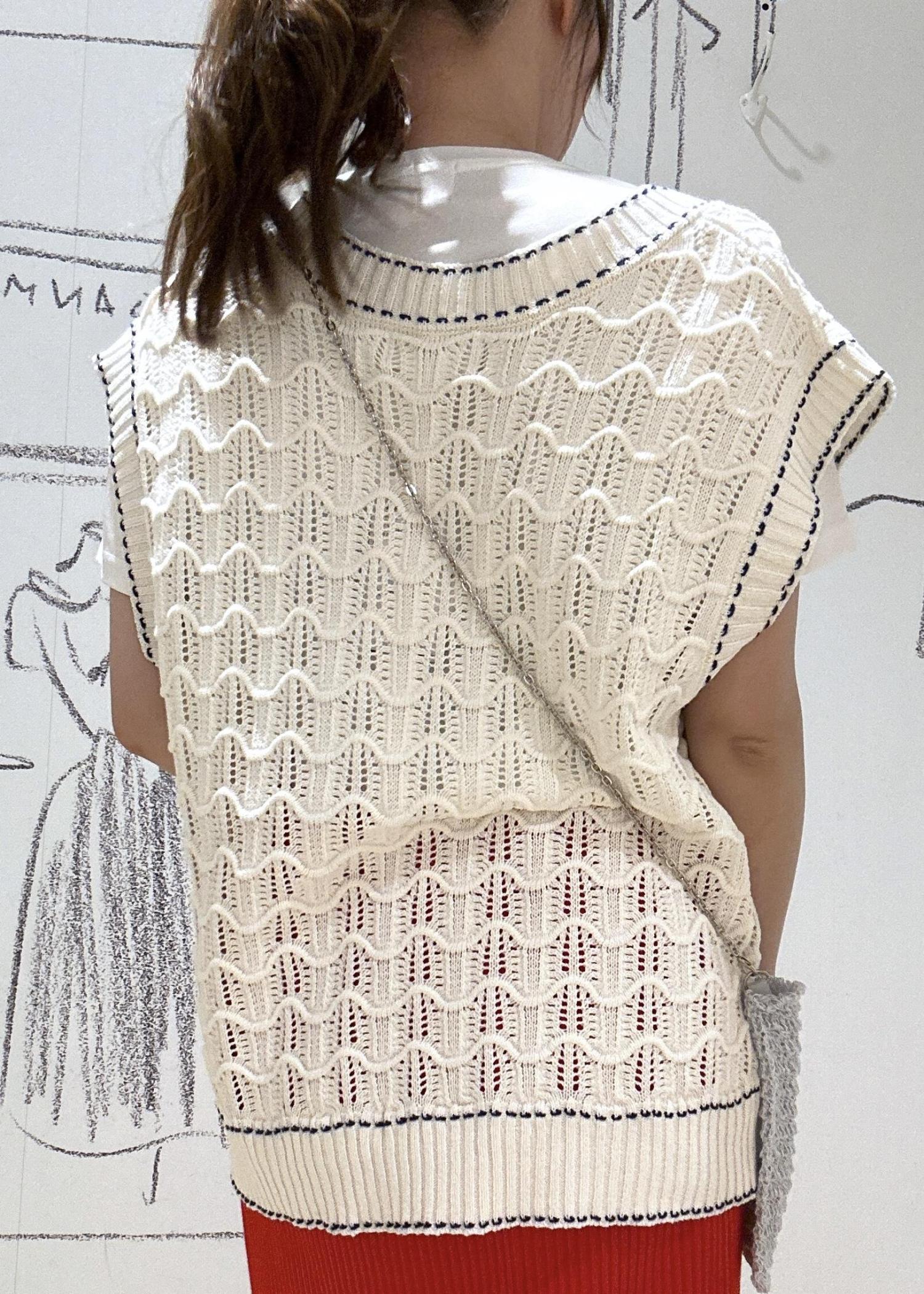 配色ステッチ透かし編みニットベスト