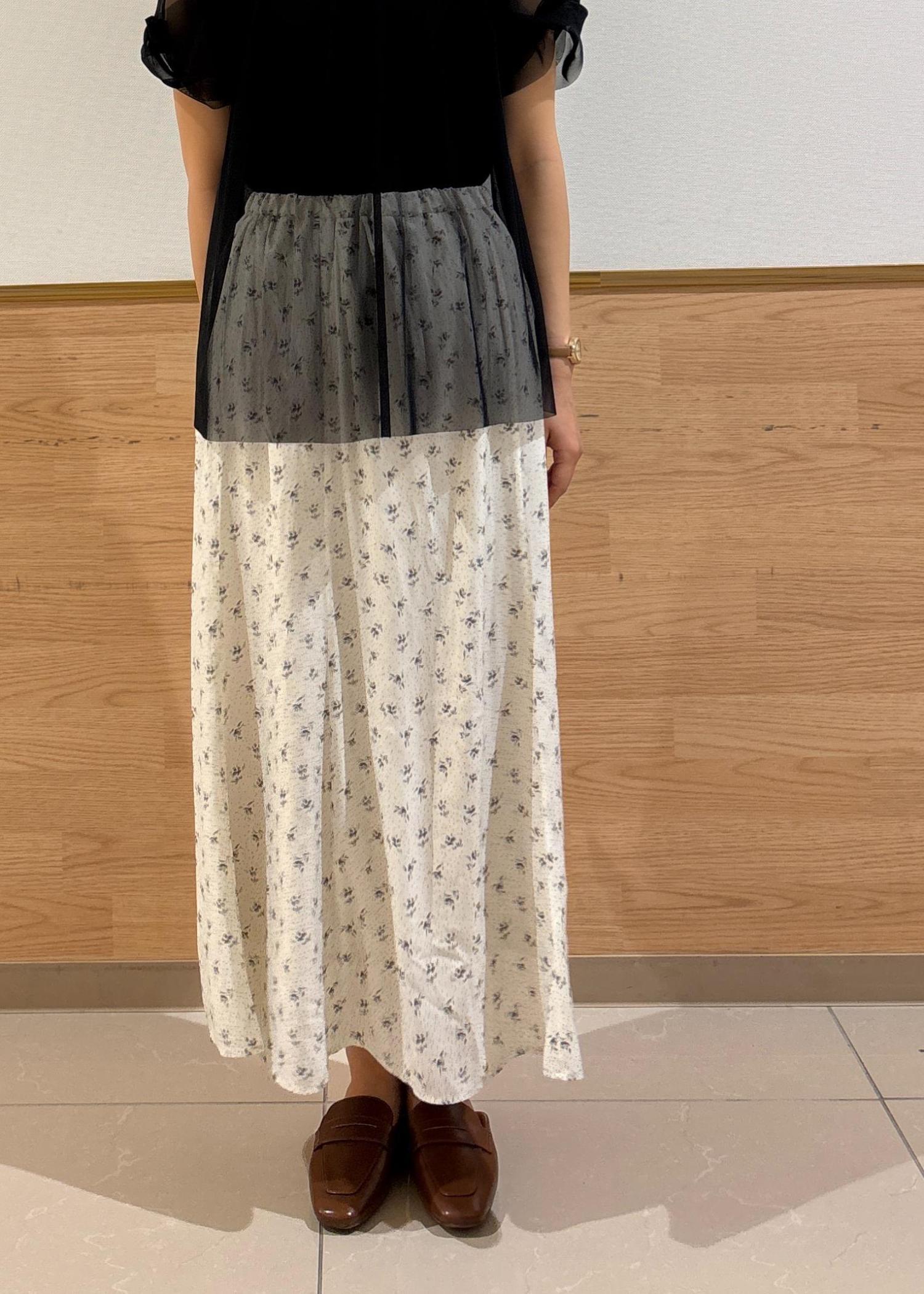 チュール×小花柄スカート