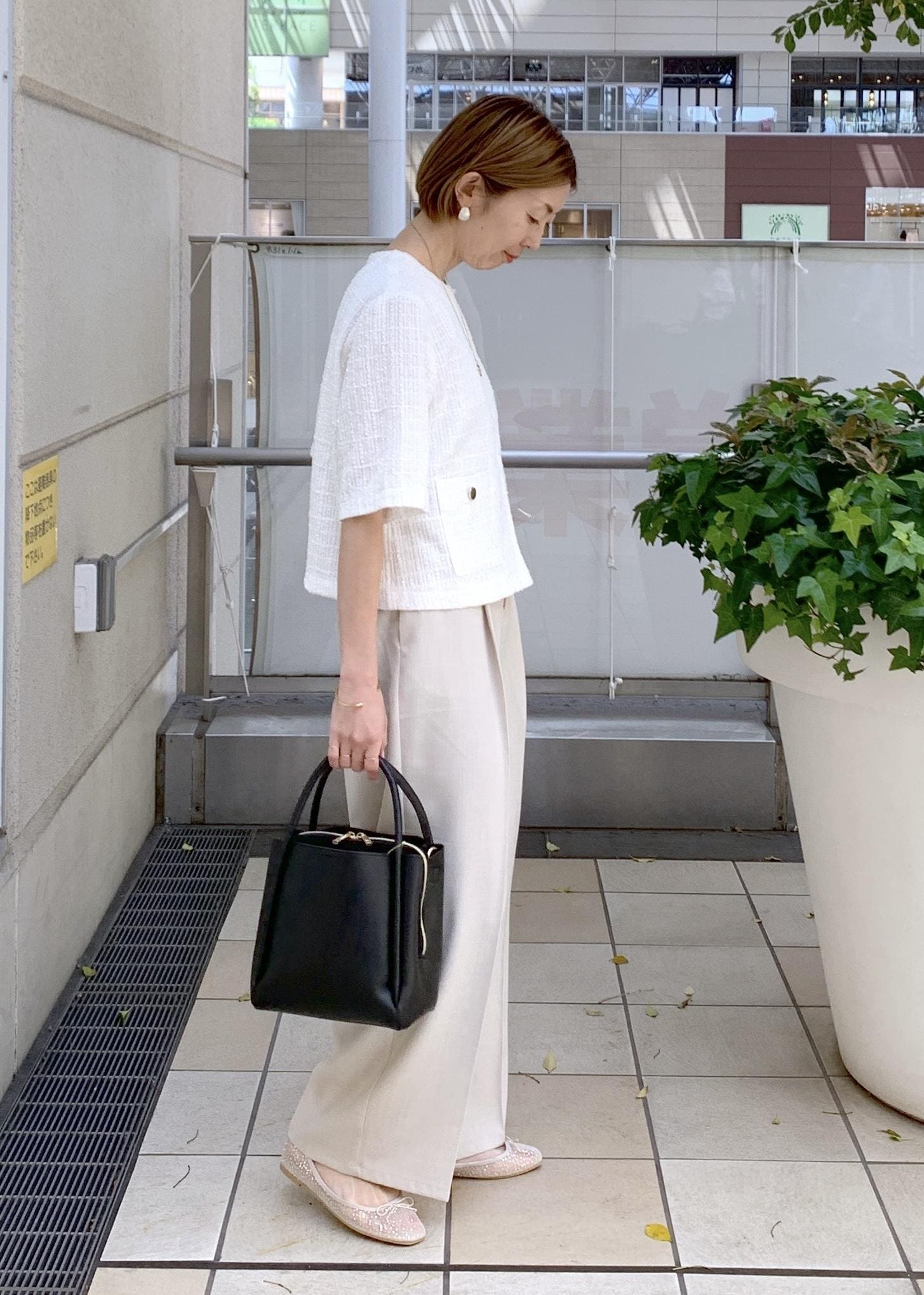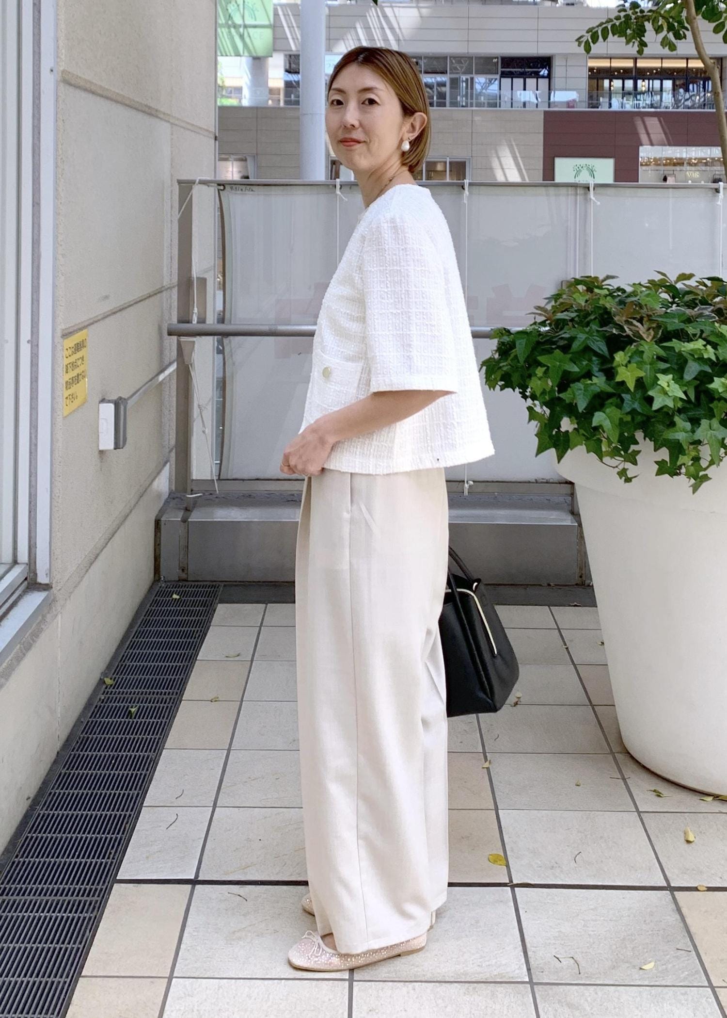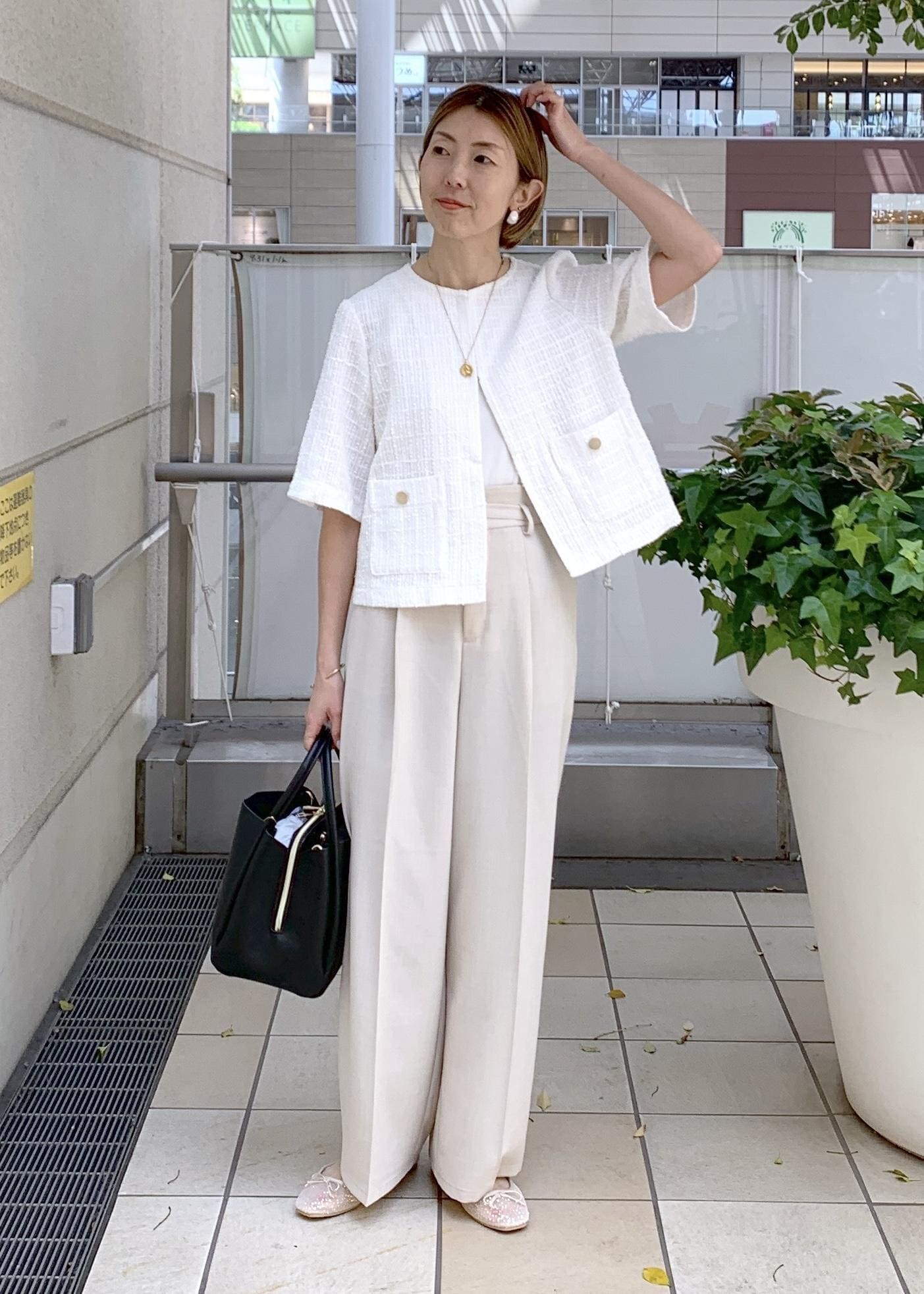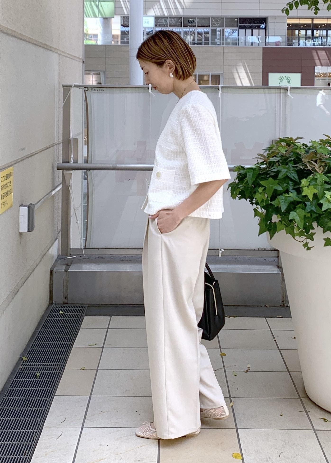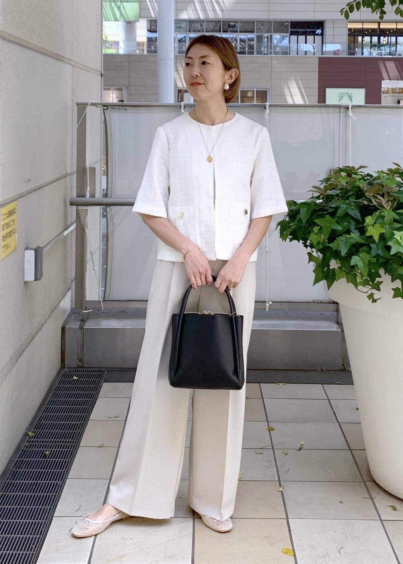 ジャケットライクなサマーツイードジャケットをワントーンで合わせて涼しげな印象に…