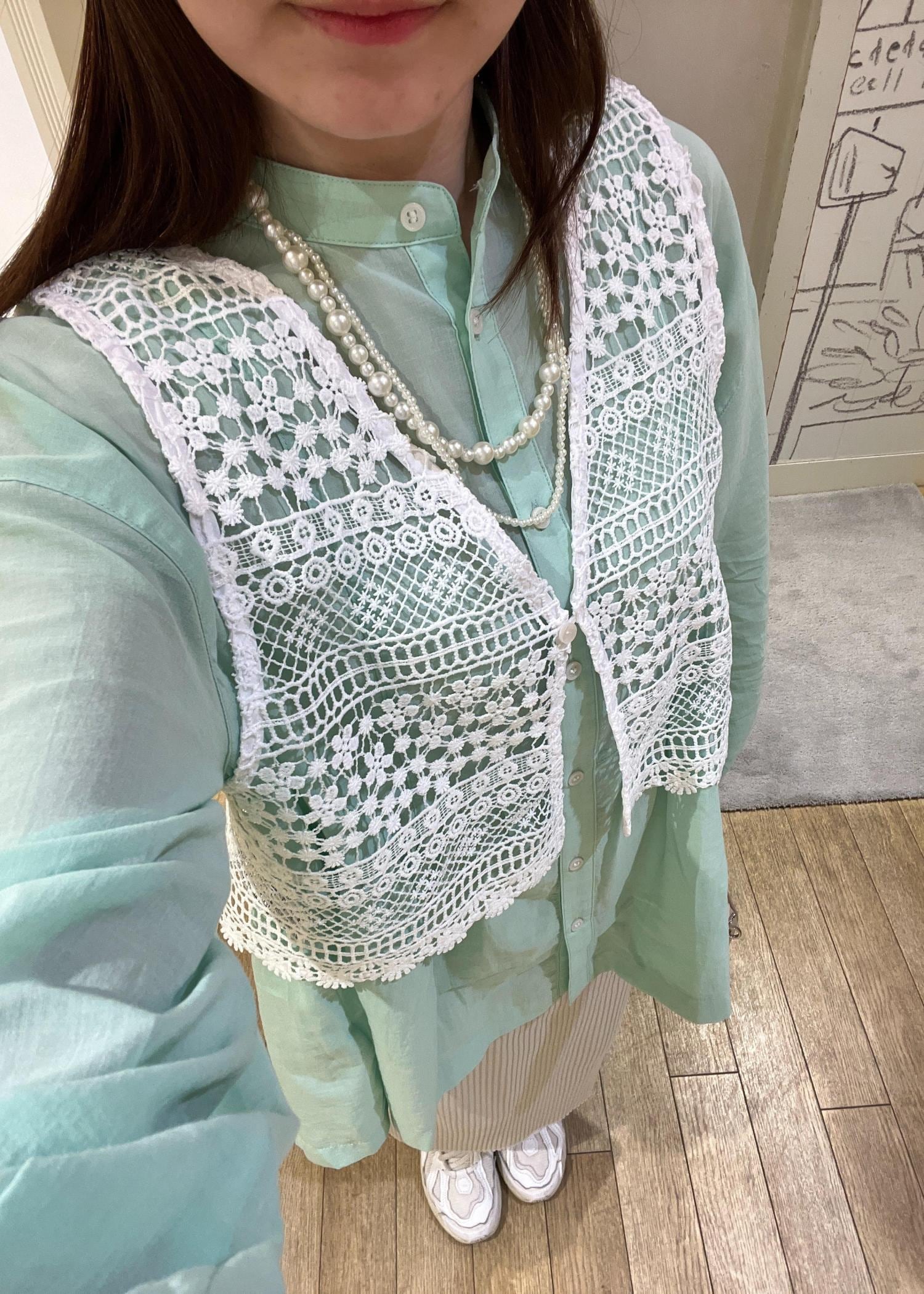 ROPÉ PICNICフロントボタンレースジレベスト/リンクコーデホワイト / F¥3,498レビュー短めの丈感の商品です。