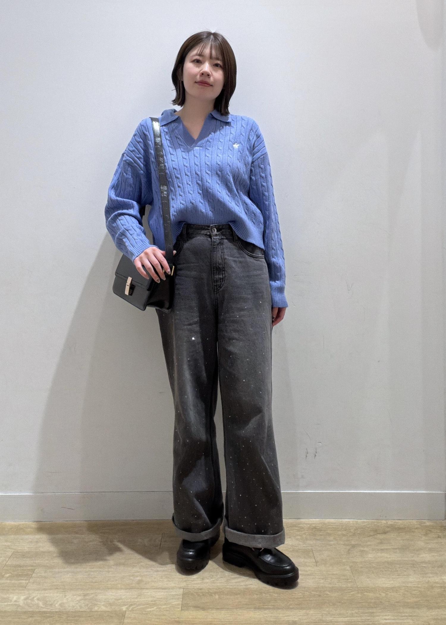 短めの丈なので、ワイドパンツ系と合わせてもバランスよく見えます。 -